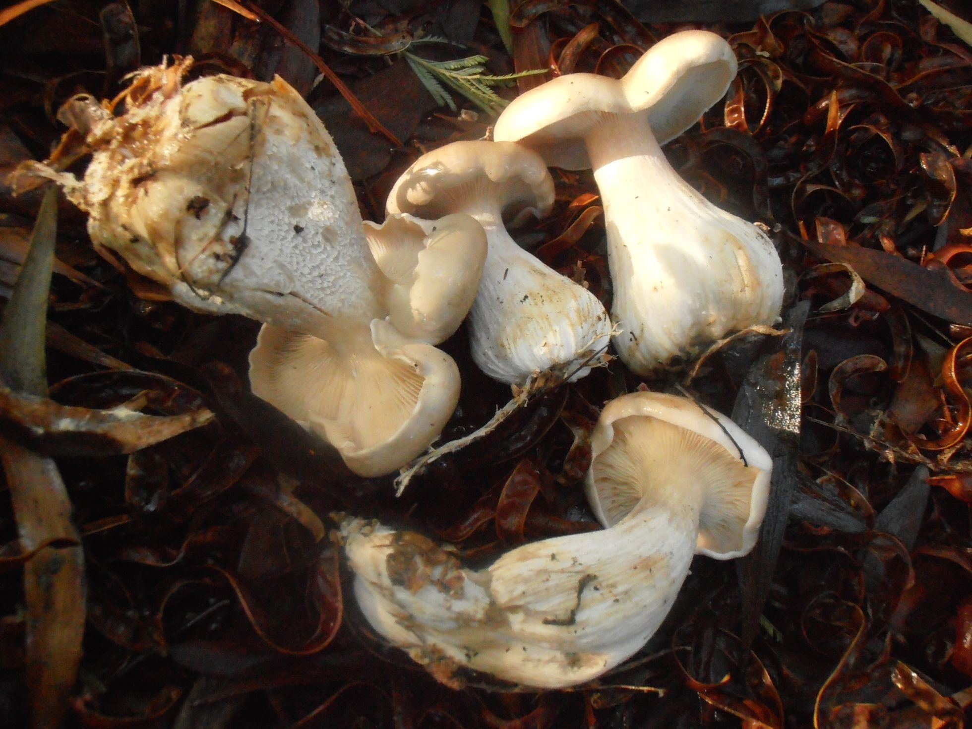 Hola a tod@s, esta mañana he encontrado estas C. nebularis tan distintas a la especie tipo. El sombrero es muy involucionado, el pie es grueso en la base adelgazandose hacia arriba y el hábitat es de Acacia melanoxylon ( acacia negra ). Podría tratarse de una variedad de C. nebularis ó de otra especie que crece en este hábitat tan poco frecuente?. Que opináis?
