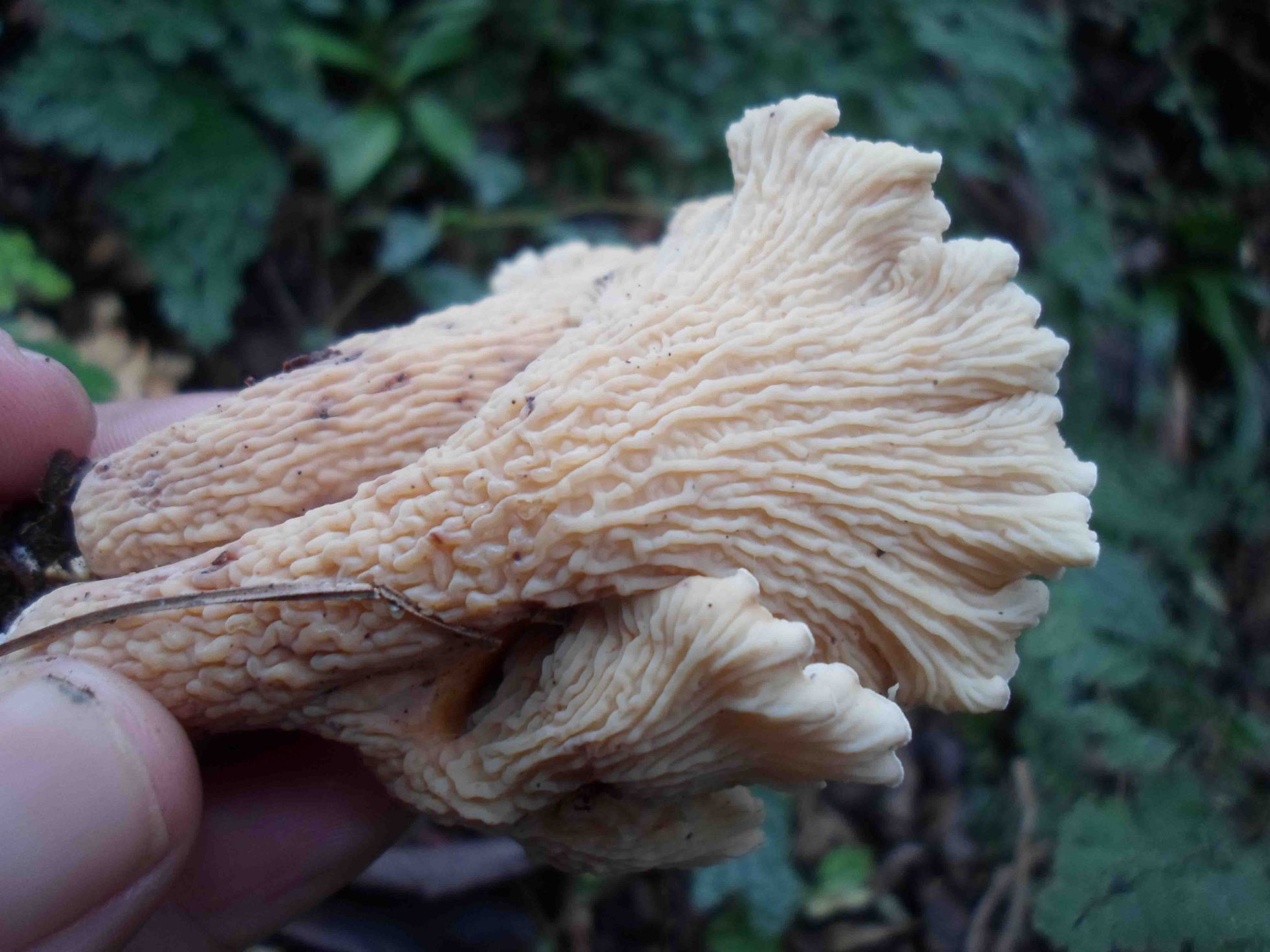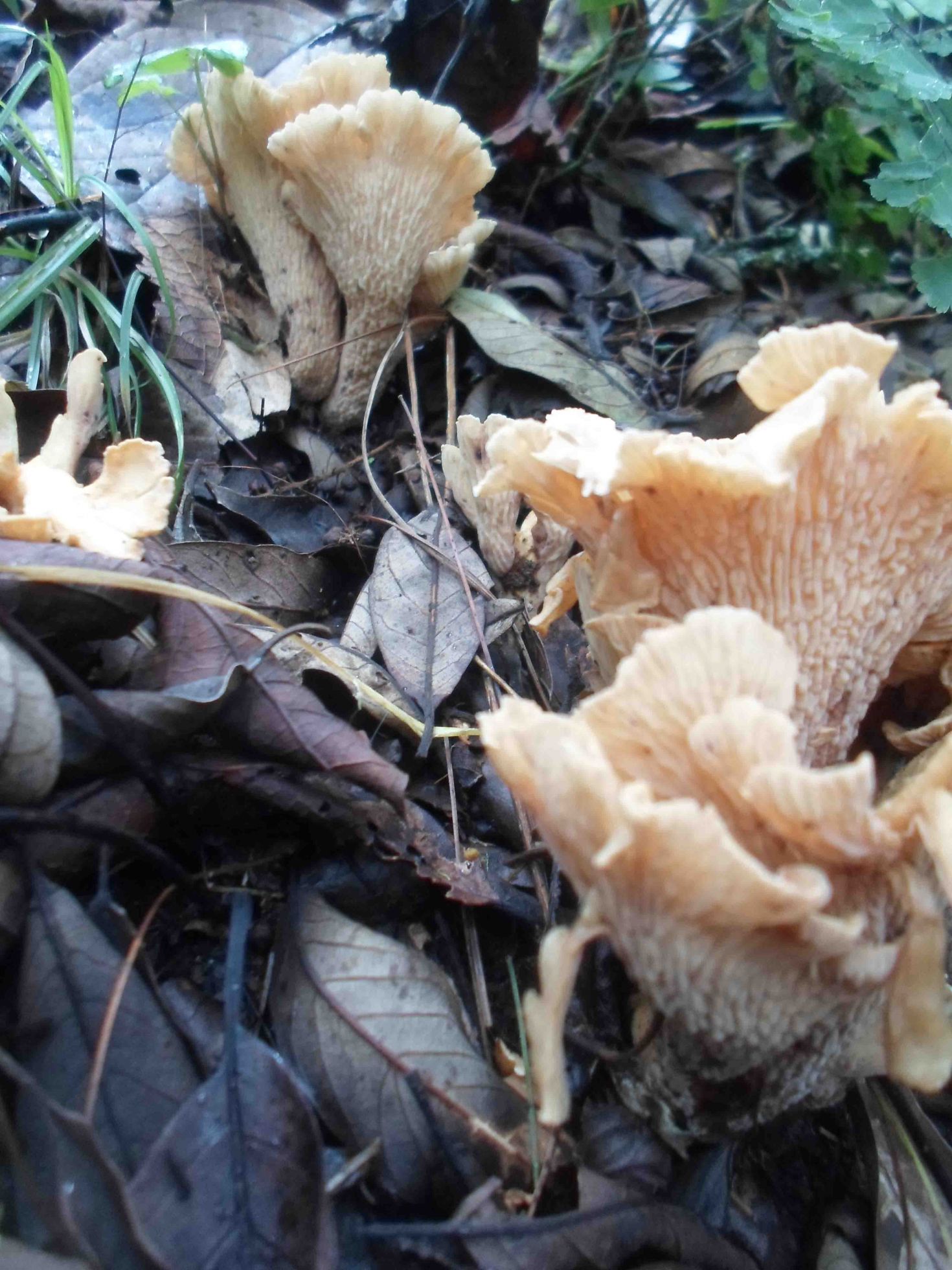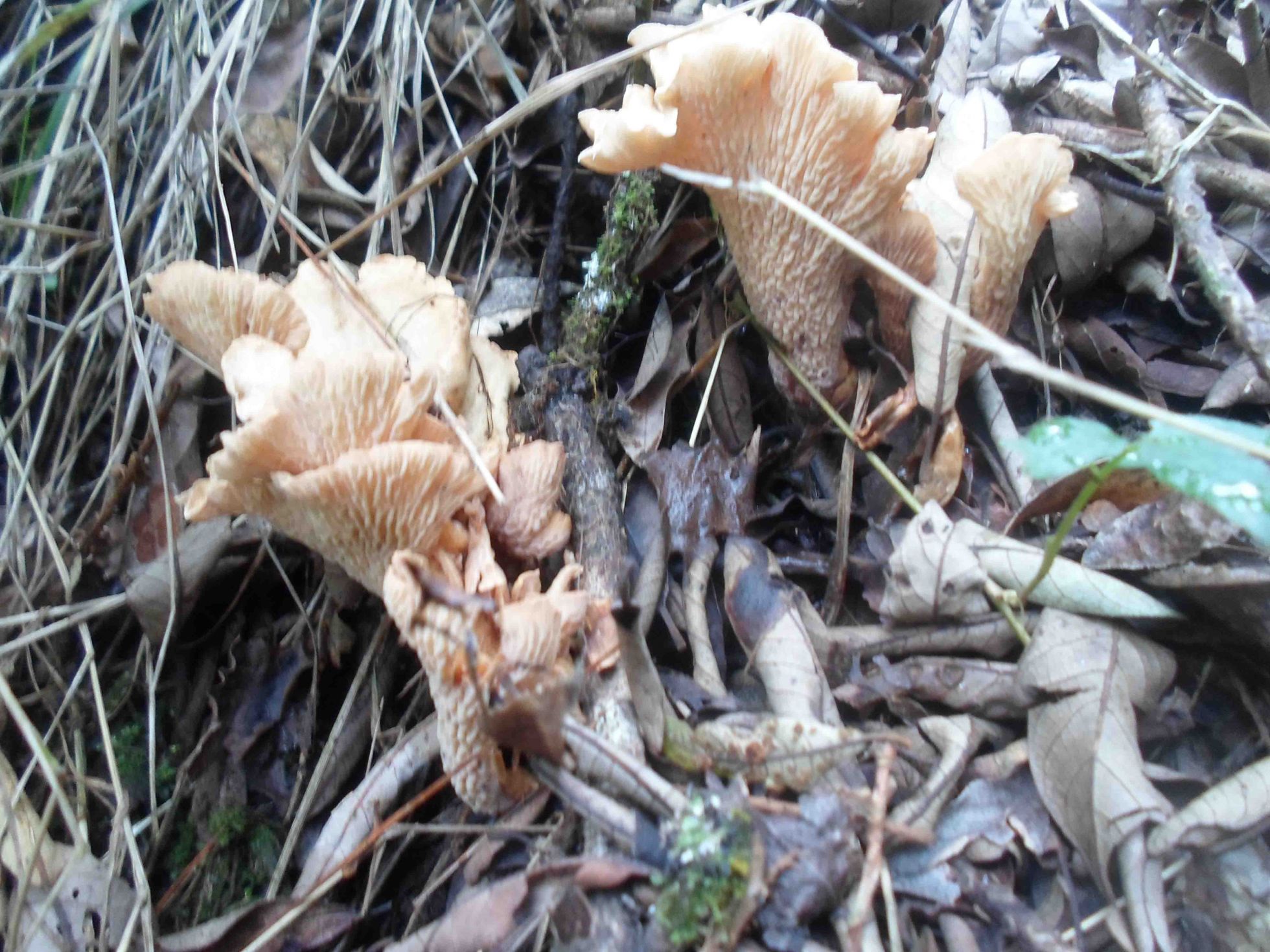 Esta primer seta era la mas abundante, nunca la había visto pero intuyo es un cantharellus, aunque no tiene el típico color amarillo de los cantharellus que brotan donde yo vivo.