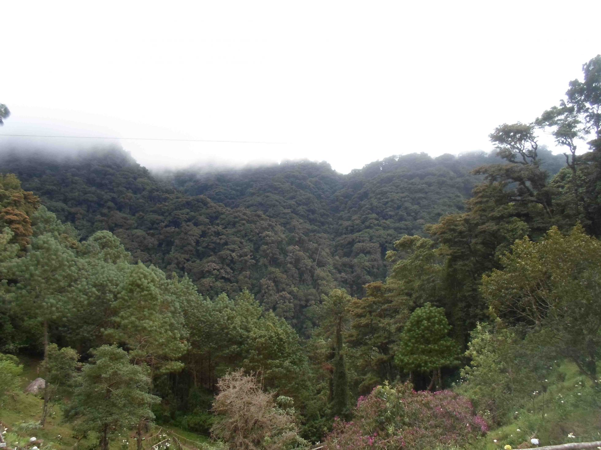 Respecto al bosque es un lugar espectacular. El parque por el hecho de ser privado no es exageradamente grande si bien se pueden hacer caminatas de 4 kilómetros, aunque yo solo hice la caminata corta porque también habia que reunirnos los que fuimos a ese lugar y compartir juntos. En las fotos pareciera estuviera cerca esa región mas alla de los pinos, donde se ve espeso el bosque, al parecer bosque de quercus. Ese bosque ya no forma parte de la reserva privada pero es mas espectacular que esta, en el sentido que se aprecia un bosque totalmente espeso, intacto. Hice unos acercamientos con mi cámara y aunque no son tan buenos, los comparto