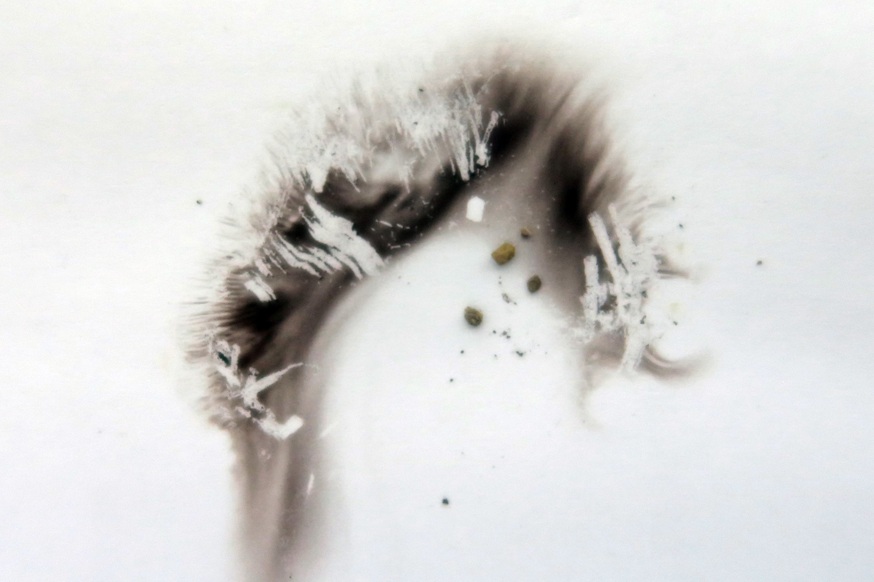 En estos momentos creo que tanto Javi como yo estábamos equivocados.Ya solo por el color de la esporada, principalmente la de sobre fondo blanco, tenemos que referenciarnos a que tiene que tratarse de una Psathyrella, es que no se me ocurre nada más , dentro de las Psathyrella, por el detalle del pié fasciculado y por el hábitat (ya que me la encontré en un parque) encaja bastante con Psathyrella multipedata. Es aquí donde empiezan a encajar las piezas del puzle, tanto el olor , sabor , etc.