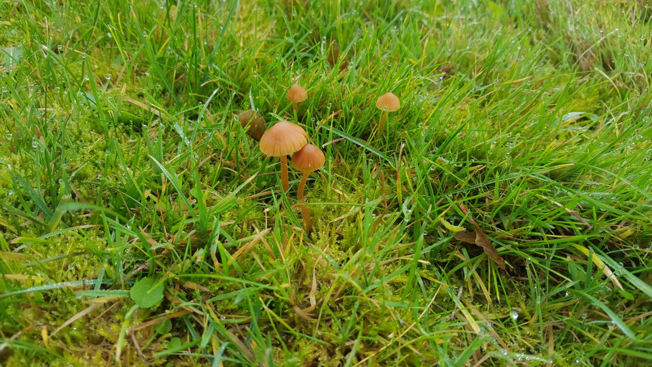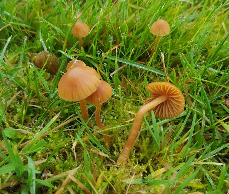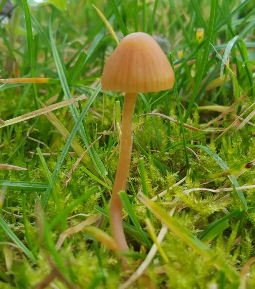Hola Roberto, muy bonítas imágenes, casi sin duda de una Galerina muscícola, y la Galerina laevis que propone Pedro es una muy buena y probable opción. Si te llevaras unos ejemplares y comprobaras el color de la esporada, saldrías de dudas y por lo menos el género podrías confirmarlo, esporada blanca para el Hygrocybe, marrón para la Galerina.