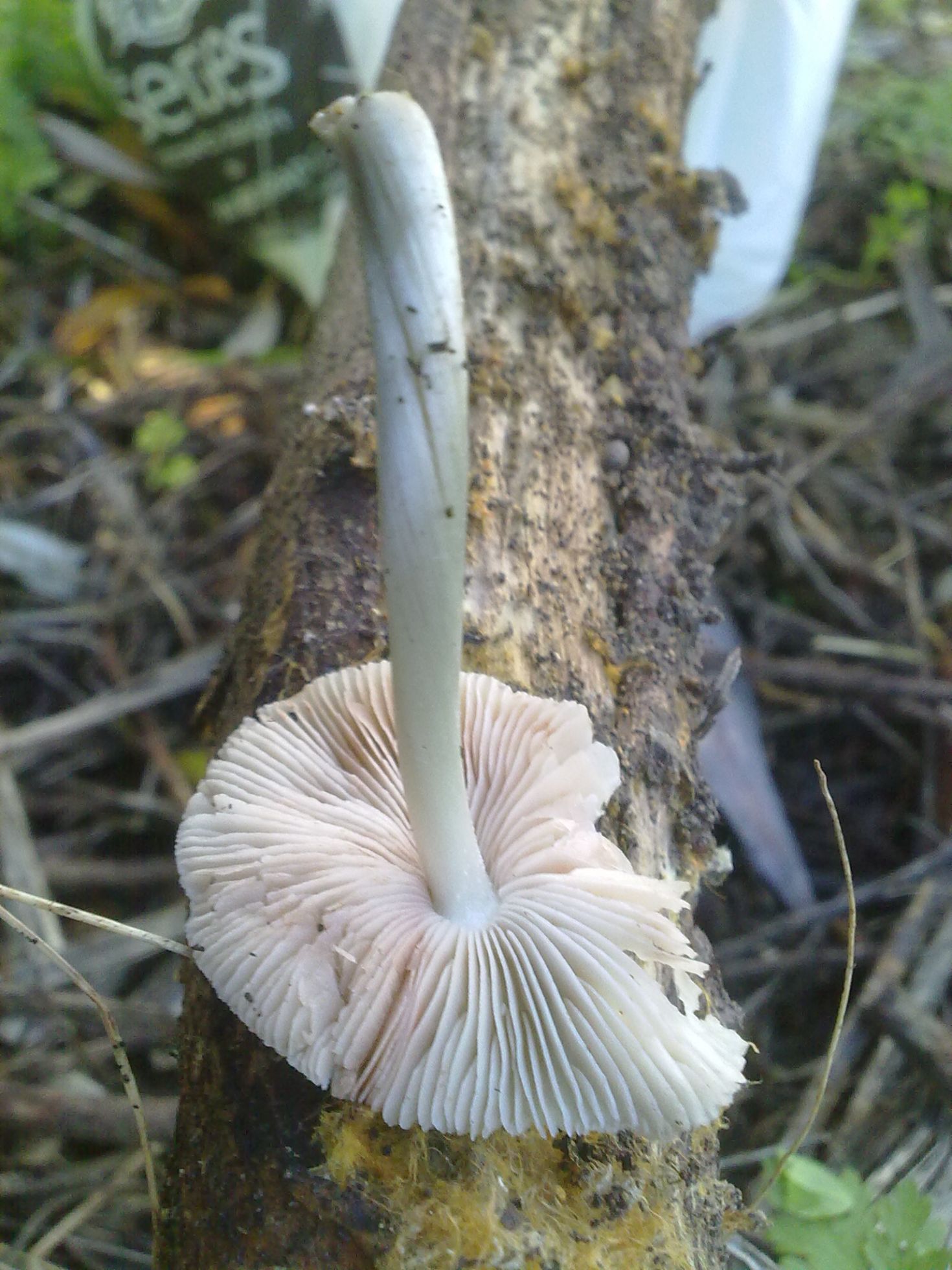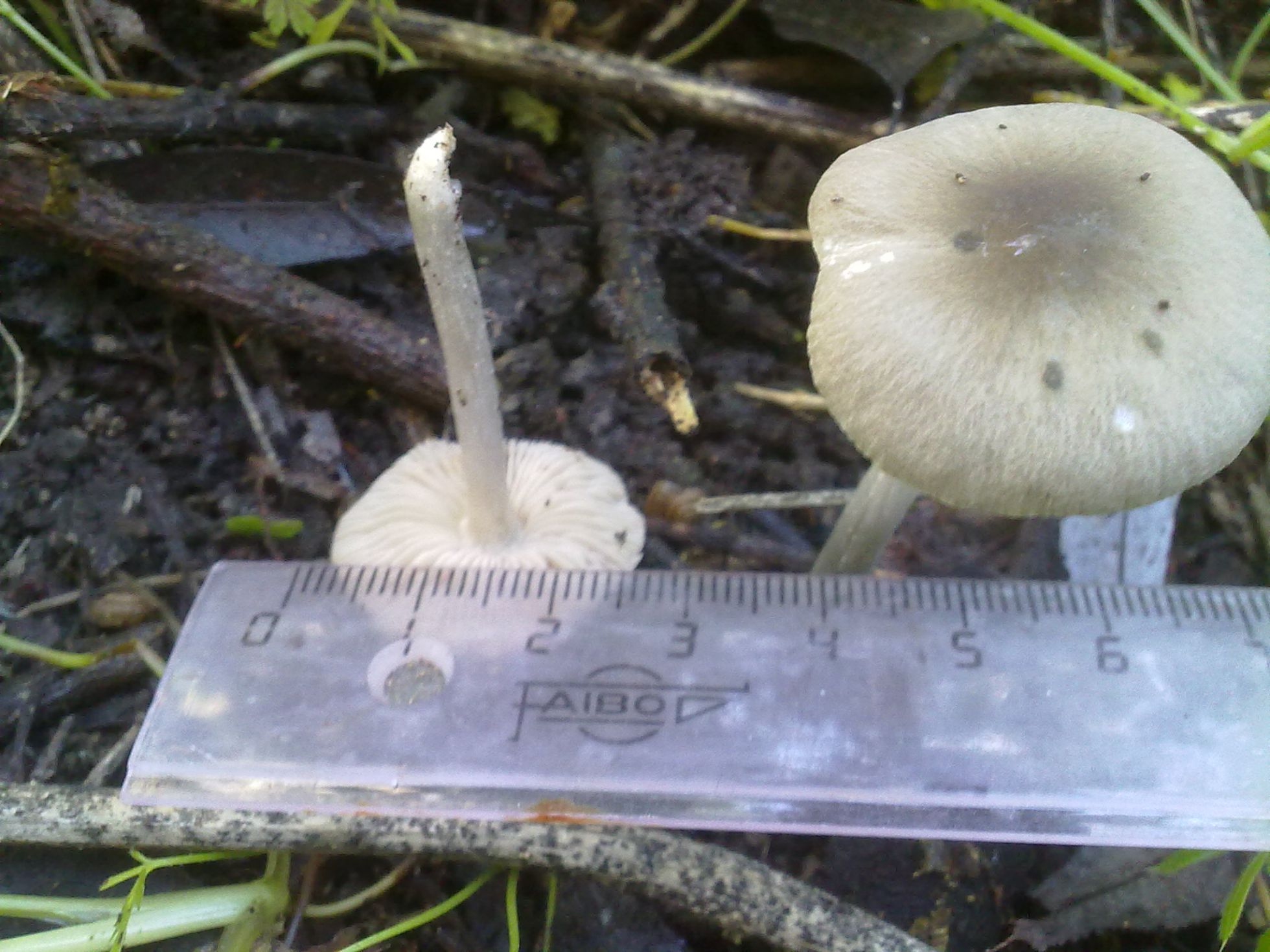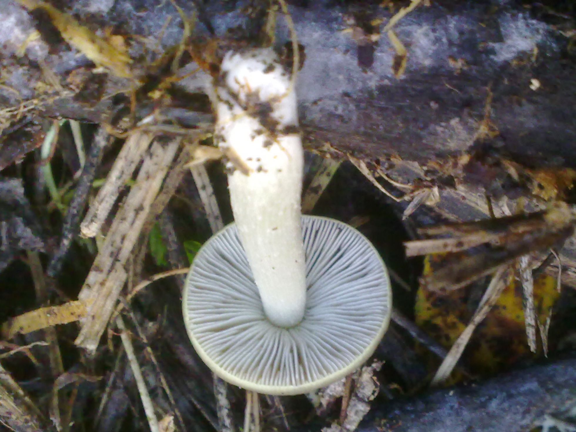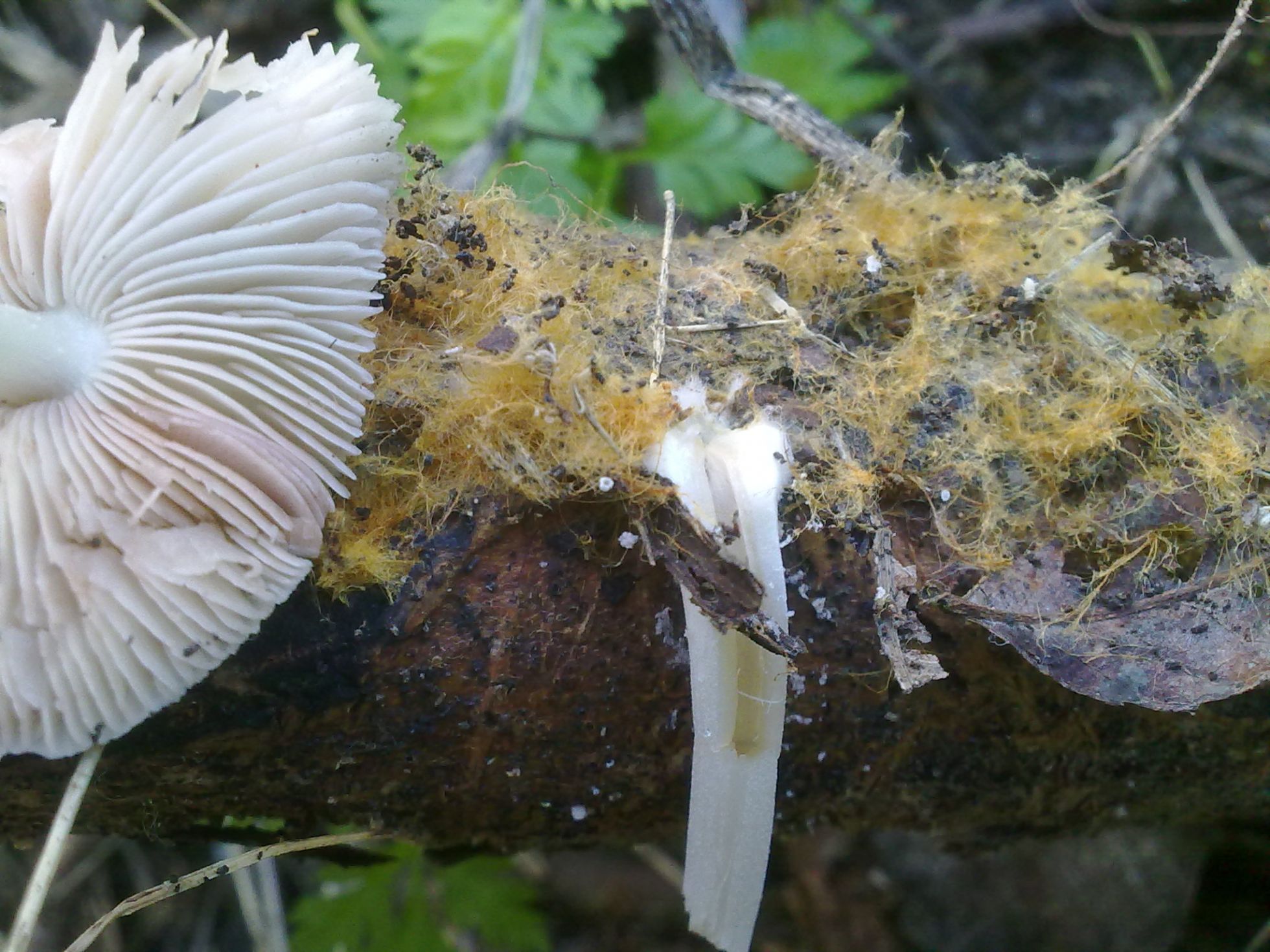 Crecían a partir de pequeños restos de maderas en el suelo, creo que de Saslix fragilis y con bastante humedad. El color de la cotícula eradesde el verdoso al pardo y que en algunos ejemplares el color era mas acentuado cuanto mas al centro del sombrero y de entre 2,5 a 5 cms, algo rugosa, seca y mate. El pié era hueco, largo, recto de color blanco/verde, pero en una de estas setas en su base estaba compuesta con una buena cantidad de micelios como el Ozonium del Coprinus domesticus algo que me parece atípico en este género. El olor y el sabor era el típico fúngico.