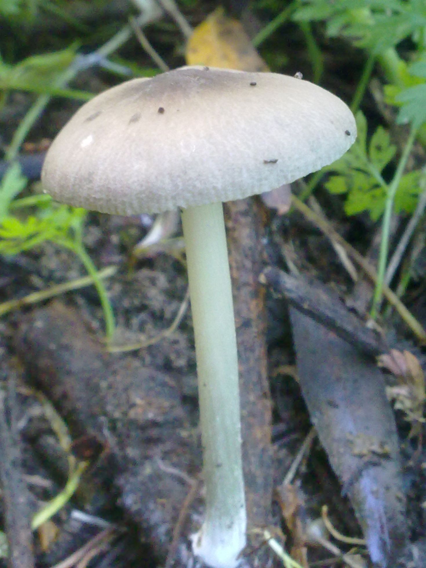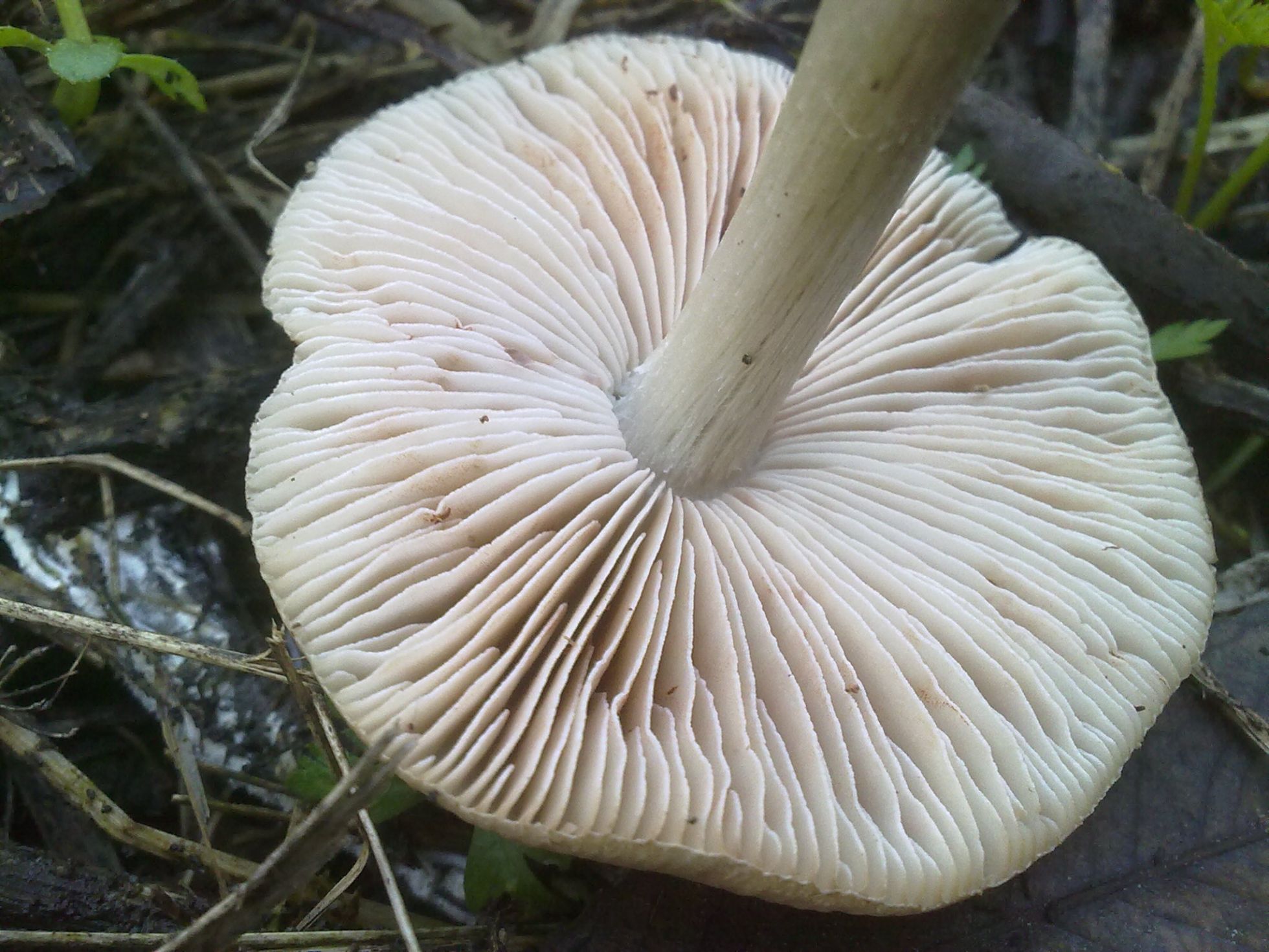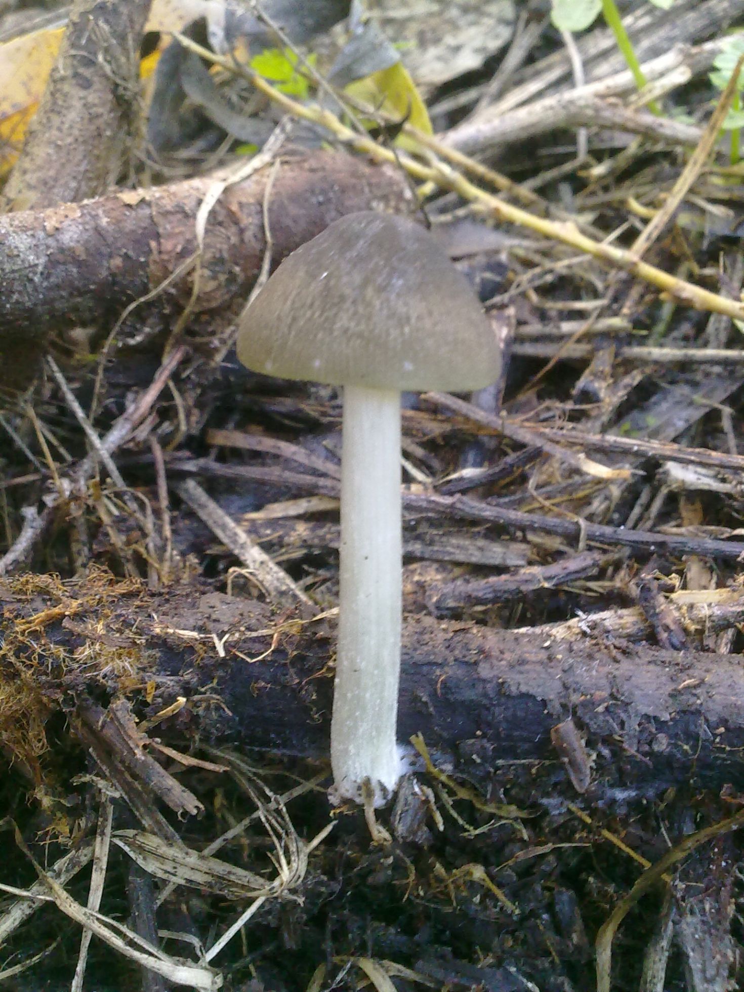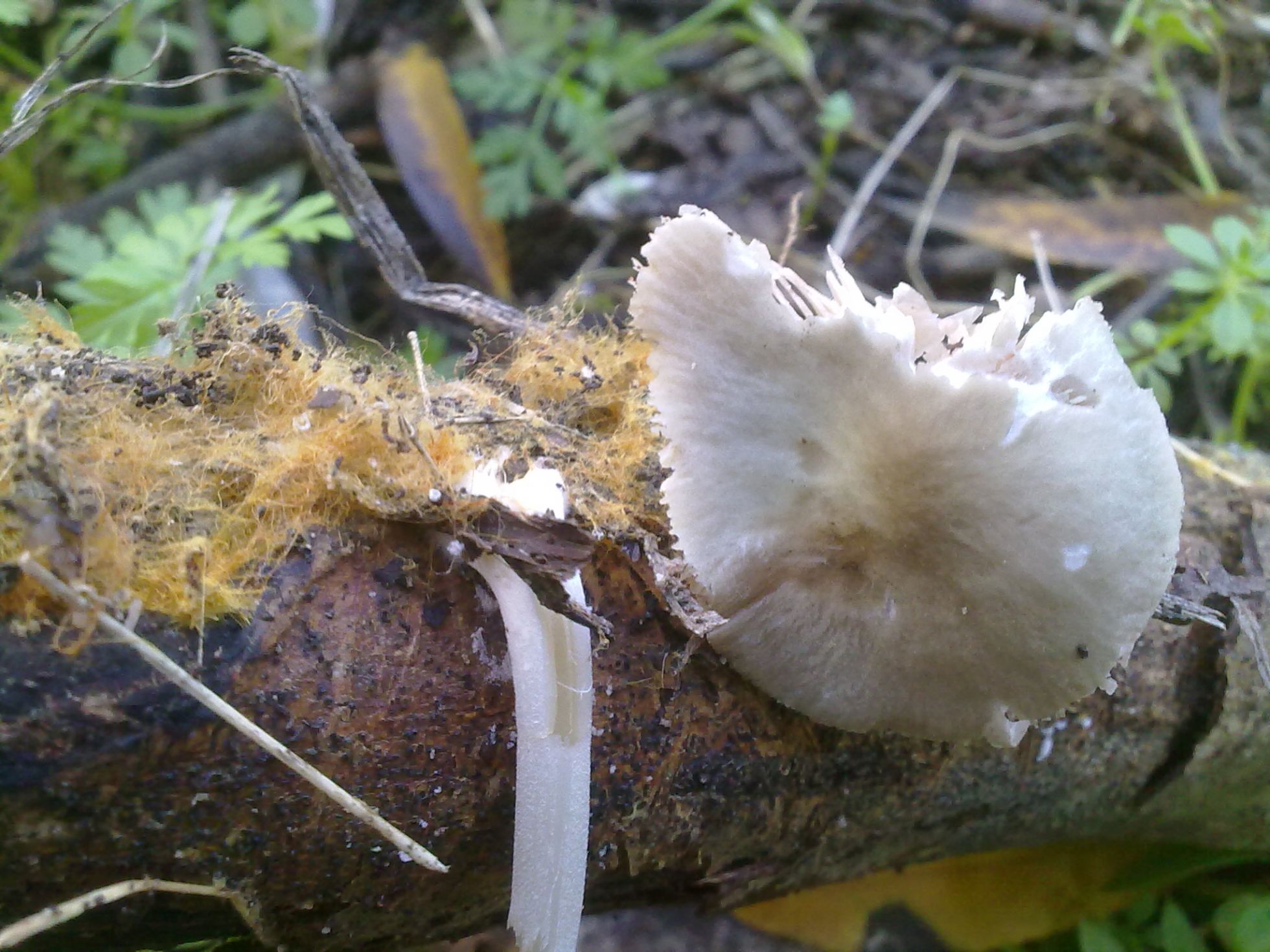 Crecían a partir de pequeños restos de maderas en el suelo, creo que de Saslix fragilis y con bastante humedad. El color de la cotícula eradesde el verdoso al pardo y que en algunos ejemplares el color era mas acentuado cuanto mas al centro del sombrero y de entre 2,5 a 5 cms, algo rugosa, seca y mate. El pié era hueco, largo, recto de color blanco/verde, pero en una de estas setas en su base estaba compuesta con una buena cantidad de micelios como el Ozonium del Coprinus domesticus algo que me parece atípico en este género. El olor y el sabor era el típico fúngico.