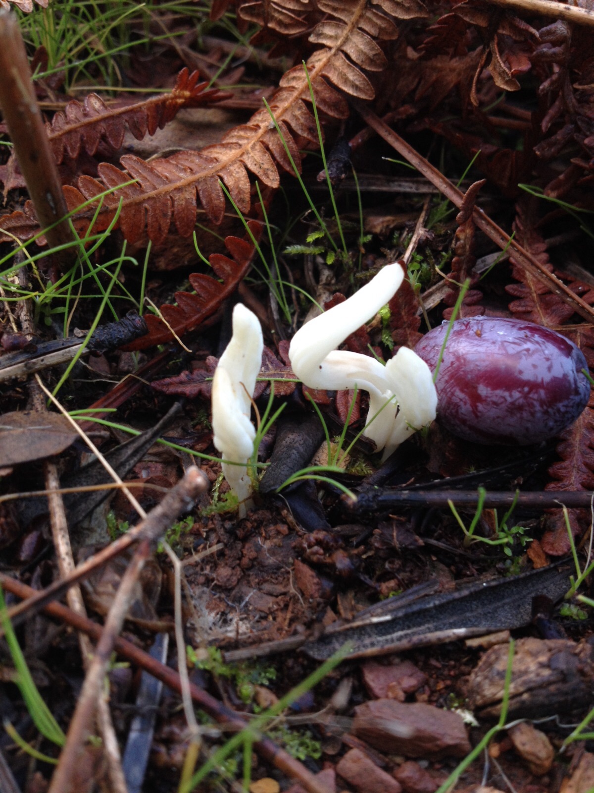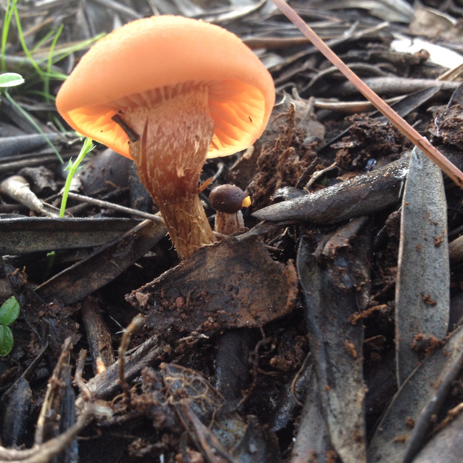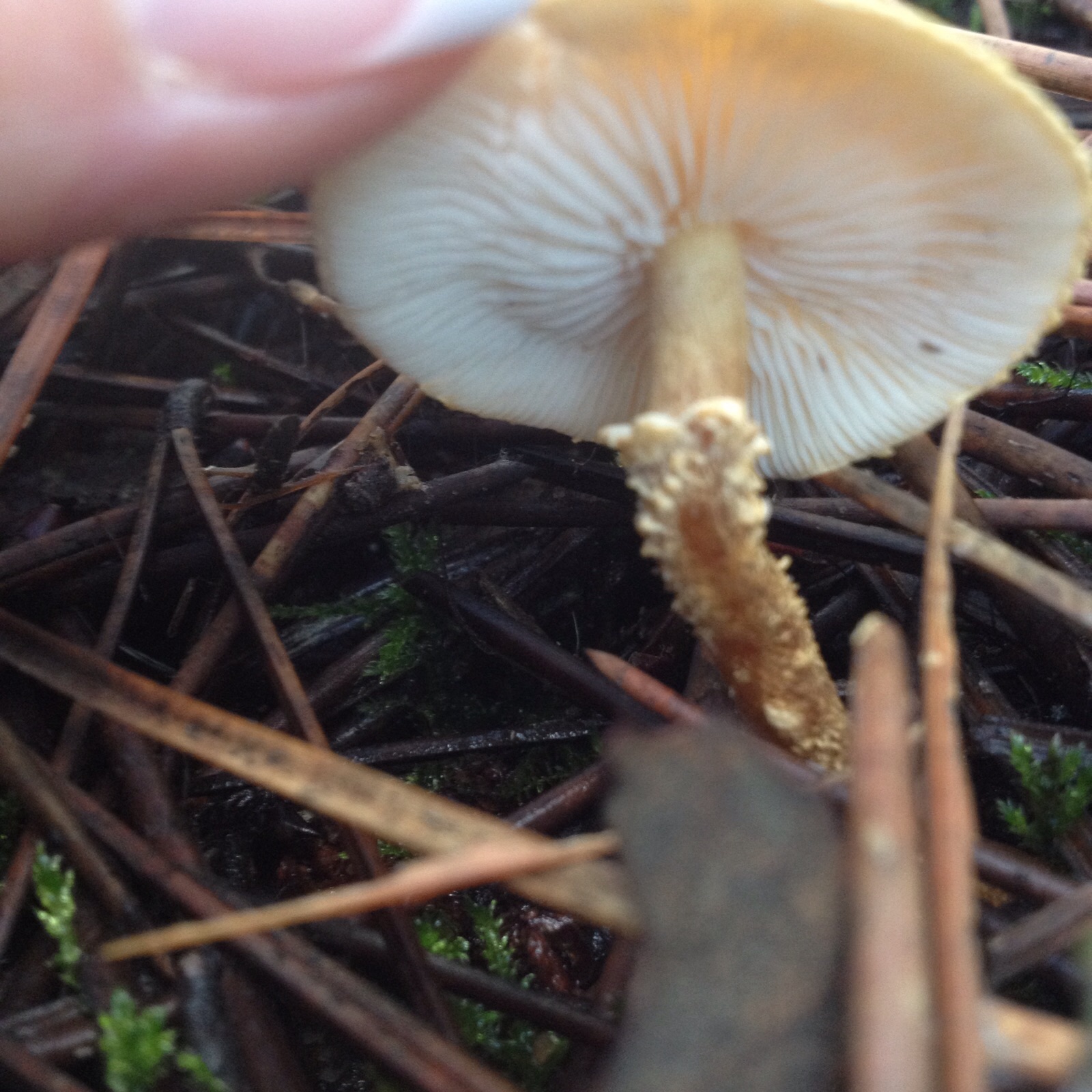 Hola buenas tardes, he sacado estas fotos en un encinar con algunos alcornoques, la blanca q parece un gusano, no sé siquiera si es un hongo o un brote de una planta y la amarilla parece un boletal. La blanca con bultitos en el pie y la naranja miden unos 4 cm de sombrero y unos 5 cm de pie. Gracias un saludo.