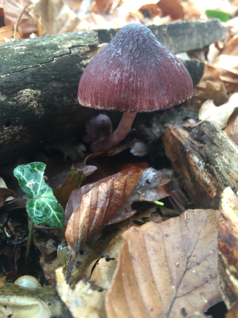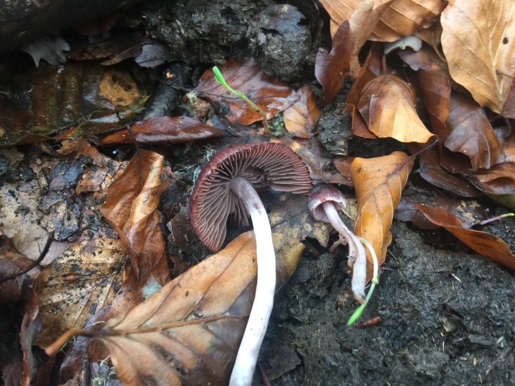 En bosque de hayas a 570 msnm, naciendo de una rama cortada de haya.Parece una Mycena?