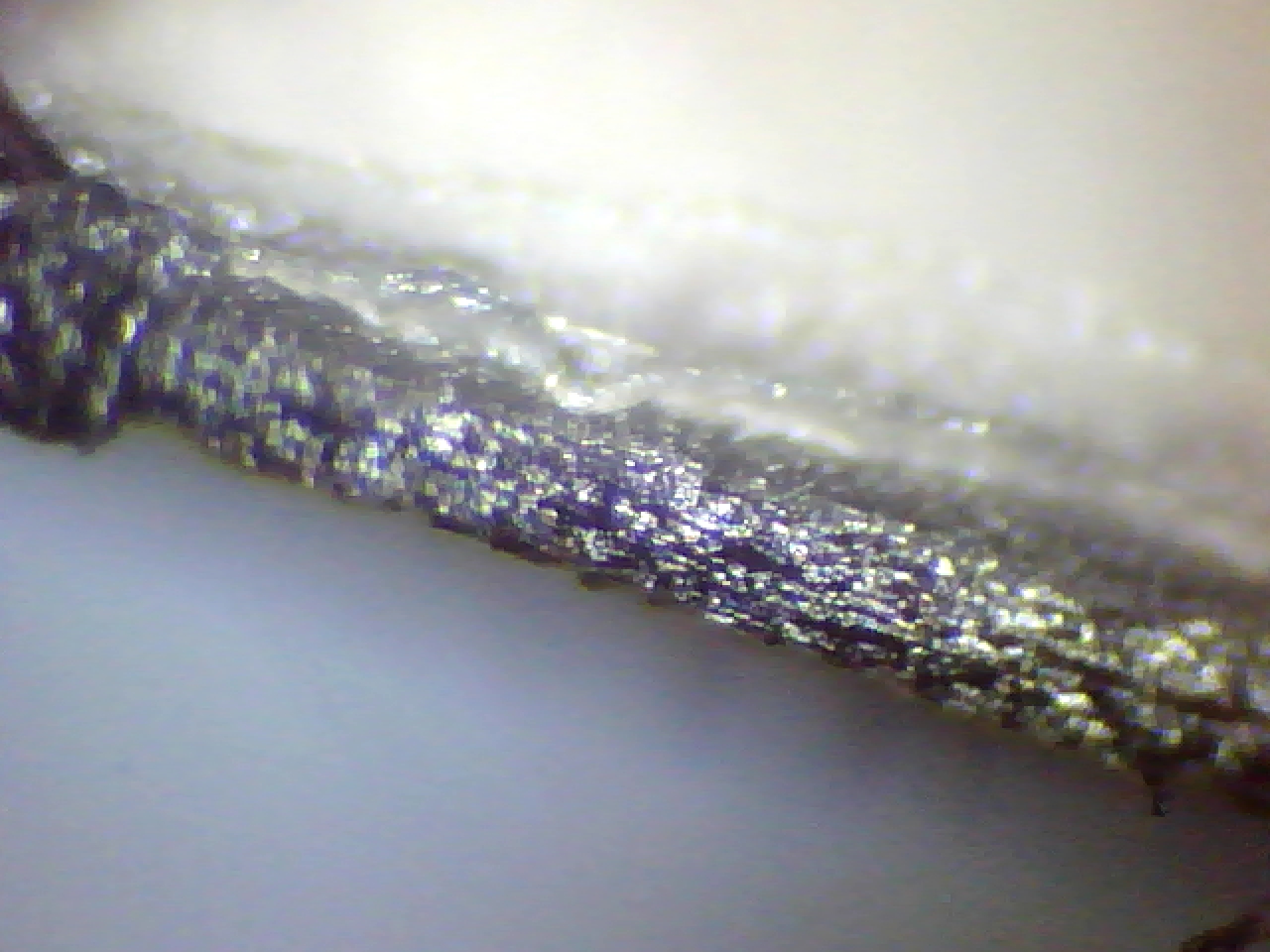 Esta sorprendente imagen muestra de una manera muy exagerada su arista laminar observada al microscopio a 50x con luz de incidencia