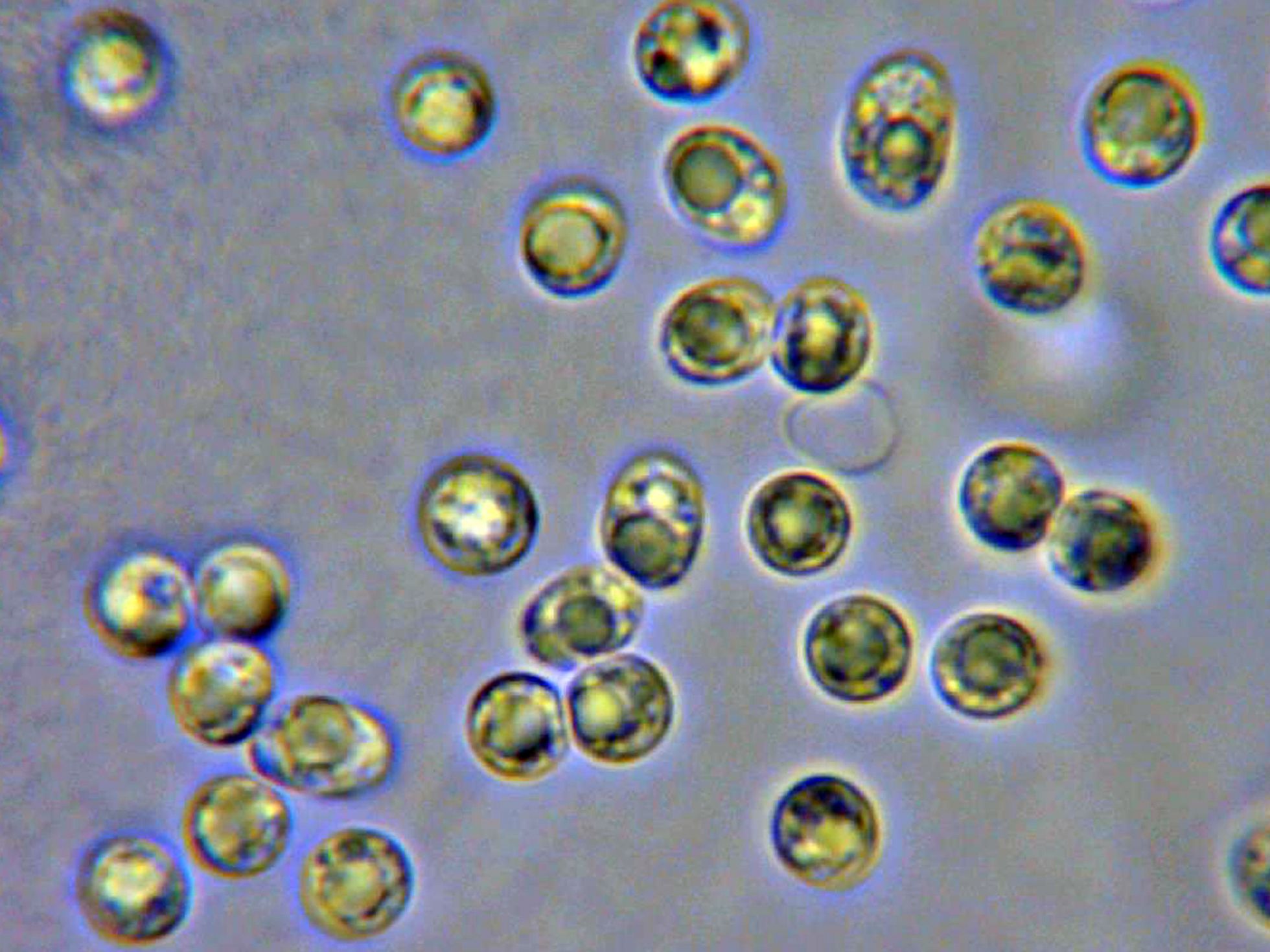 Las esporas de la primera fotografía parecen estar en continuo movimiento, lo que vemos no es la medida real, es como si a una elipse la miráramos por los vértices.