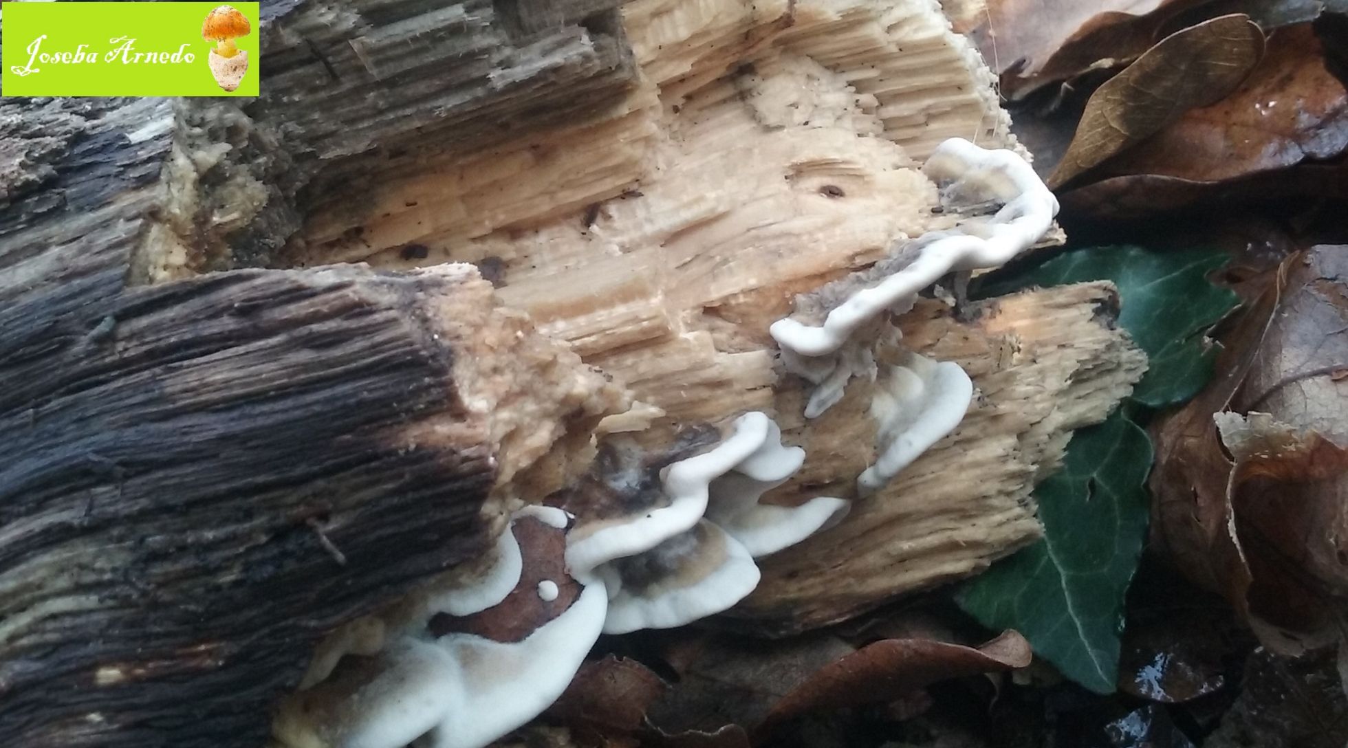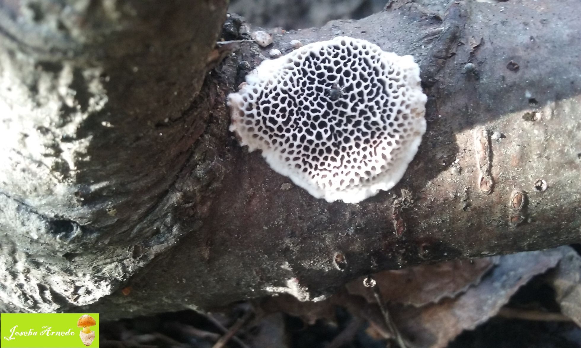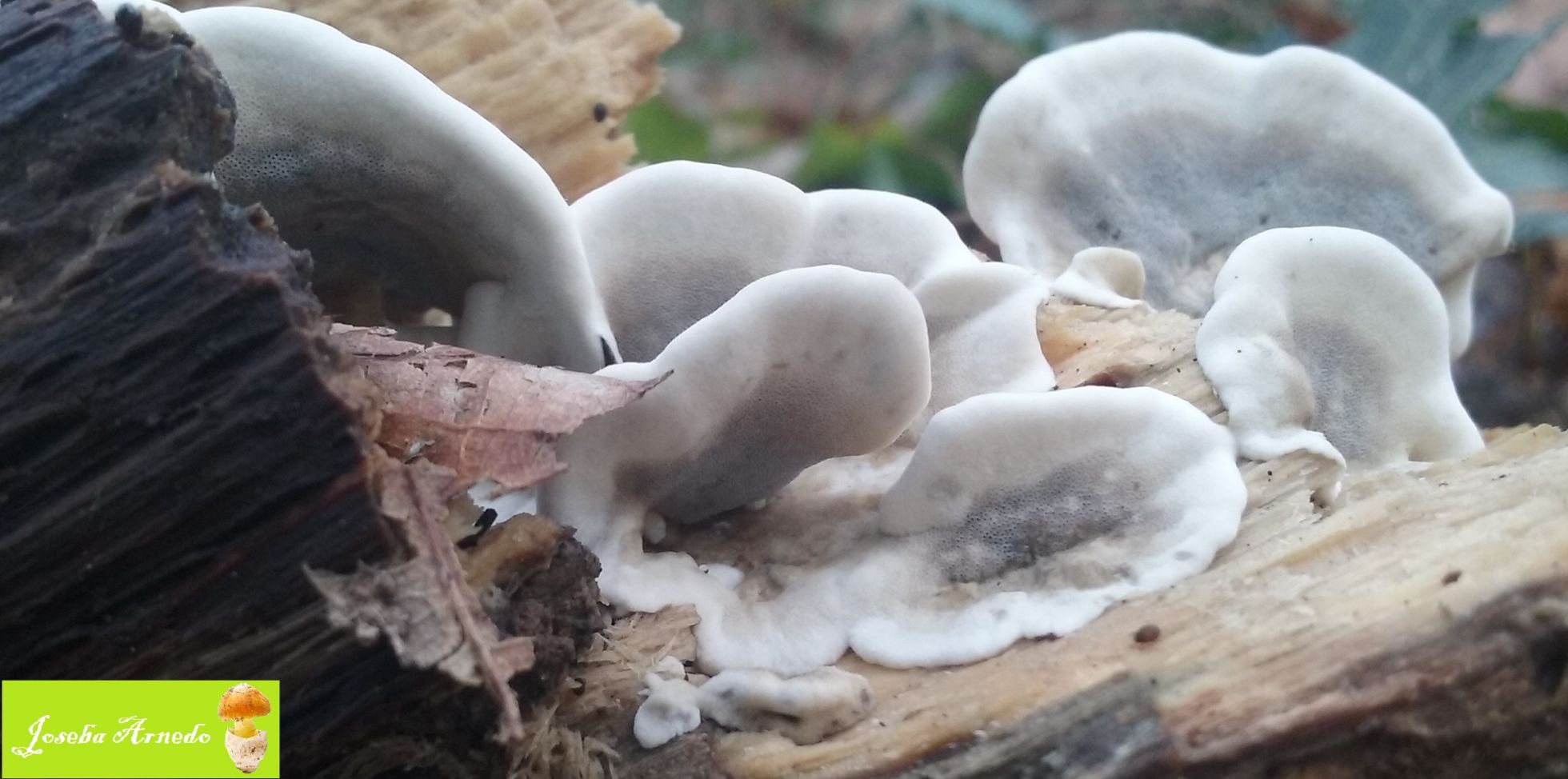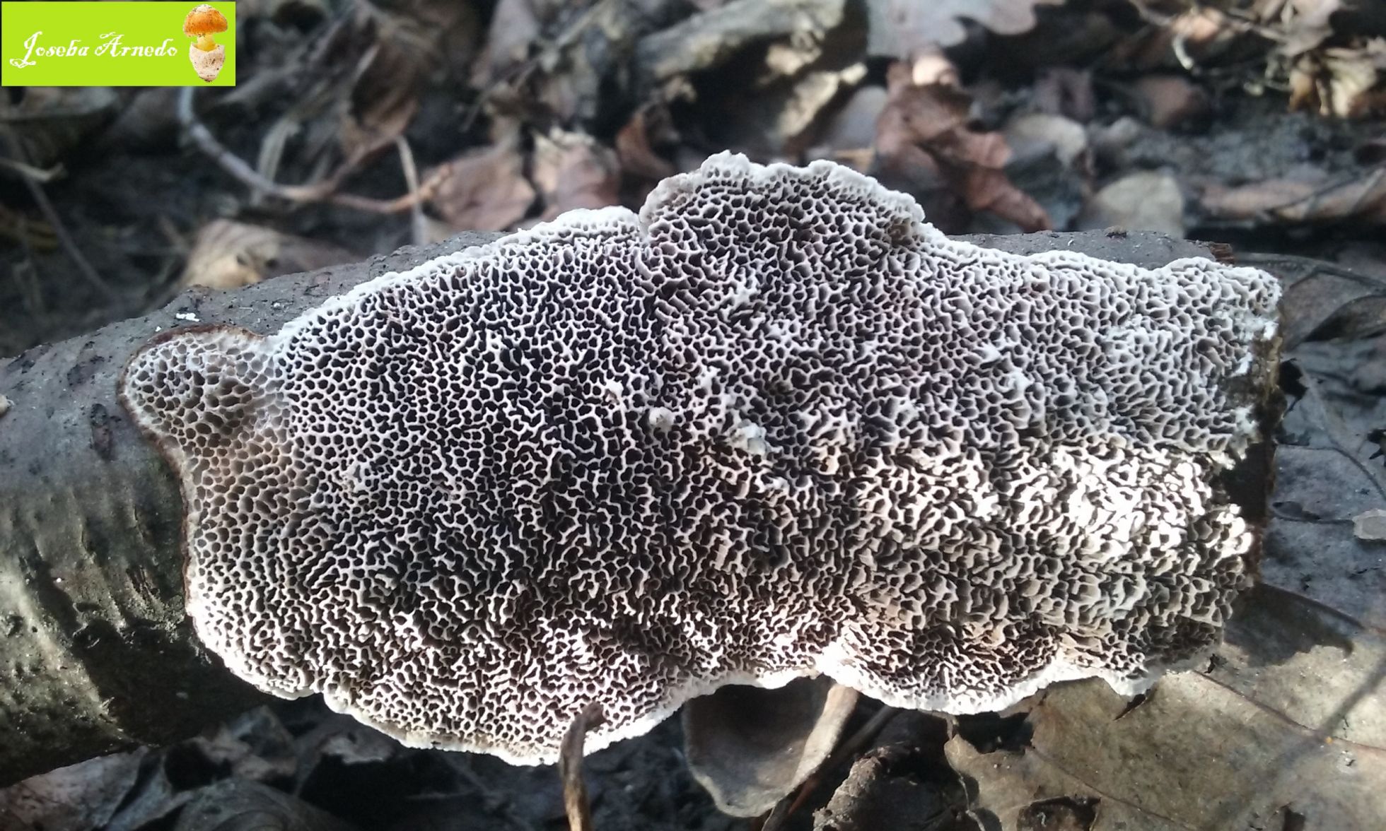 Esta tambien crecia sobre una vieja rama de roble. El himenio tenia unos pequeños poros y un colorido grisaceo que se vuelve blanco en el borde.