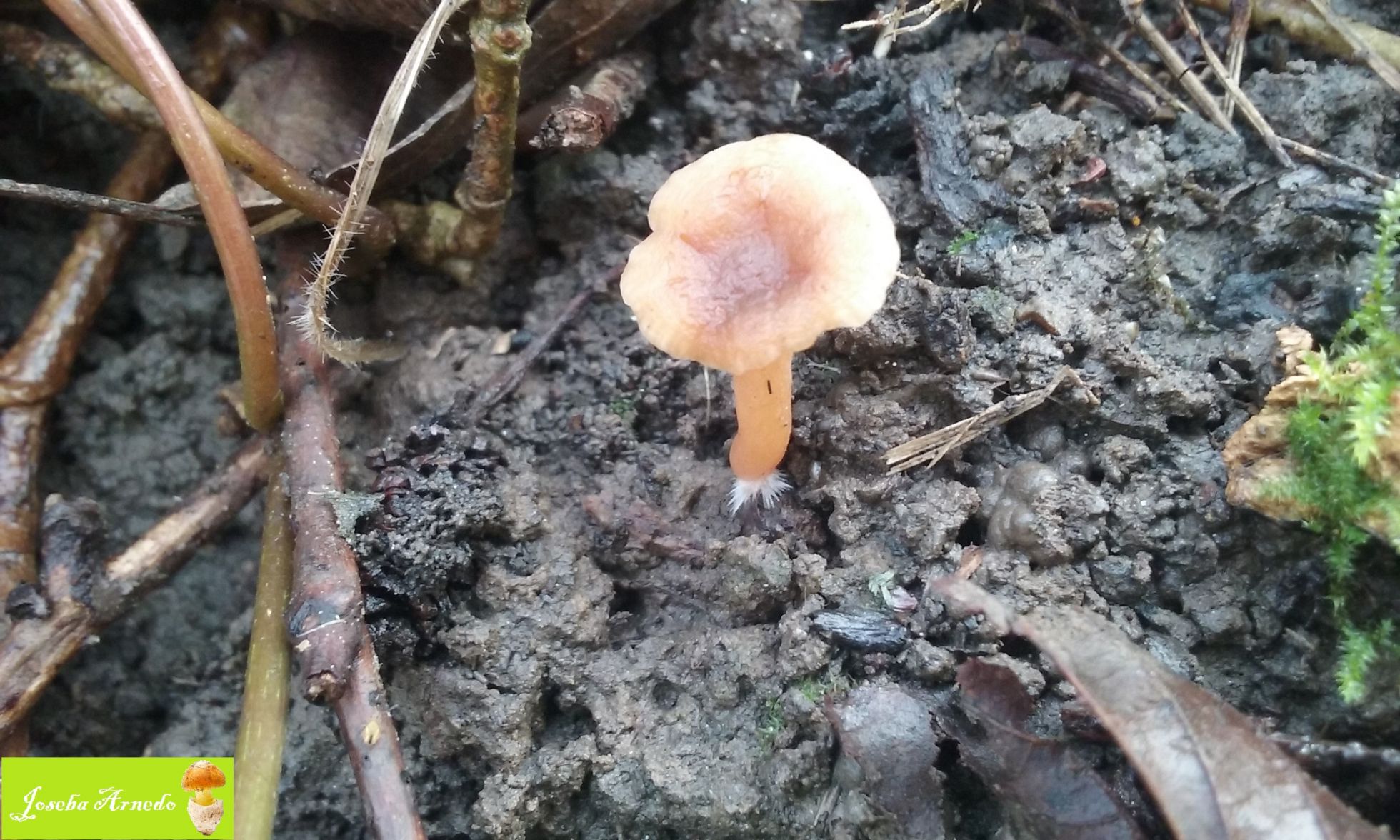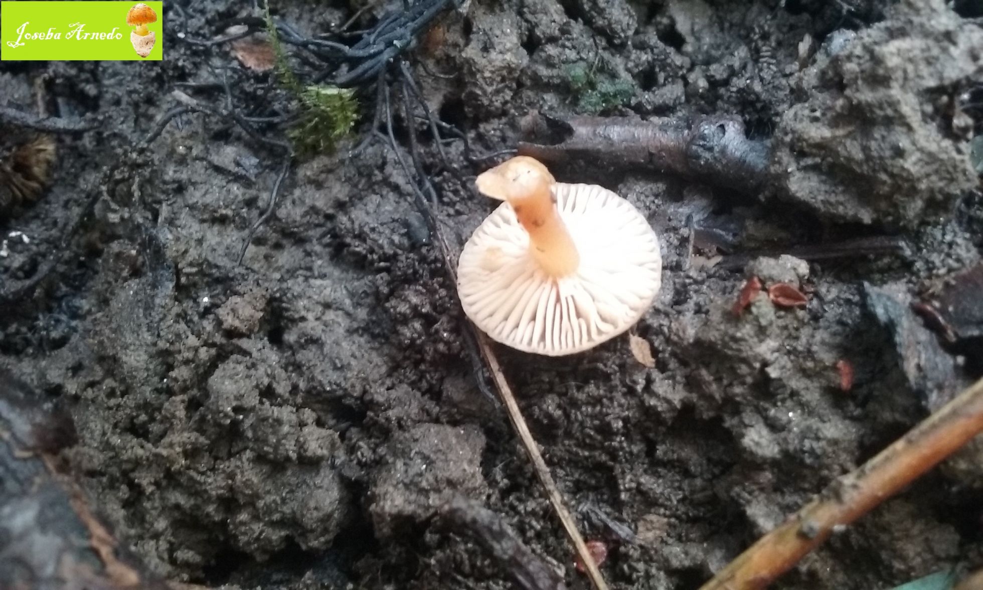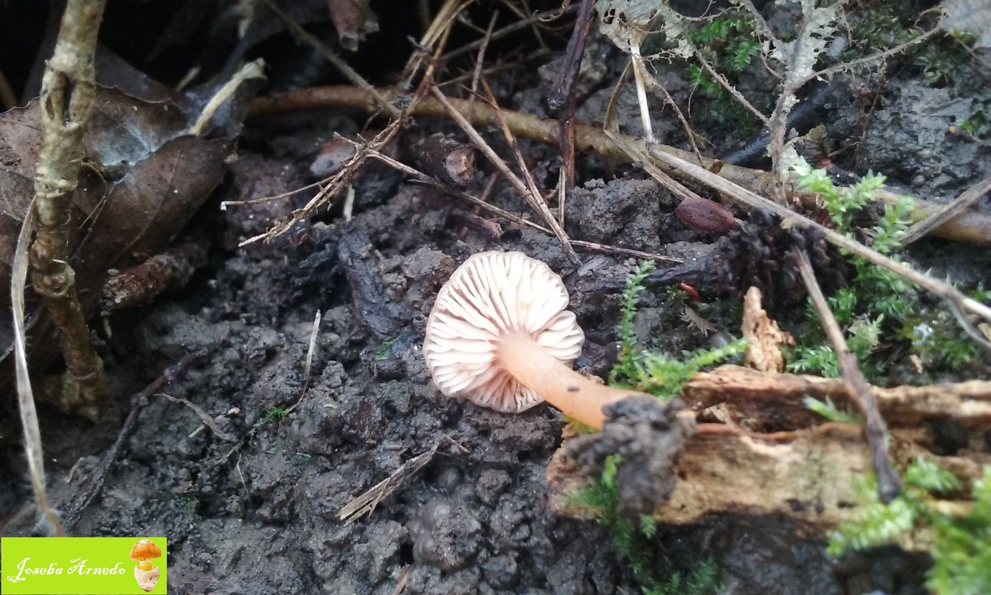 Y por ultimo esta pequeña especie que no llegaria ni a un centimetro. Crecia sobre suelo humifero de bosque de ribera bajo robles y alisos. Las laminas eran completamente blancas y adnatas o ligerisimamente decurrentes. Me tiene muy despistado y no se ni por genero buscar.