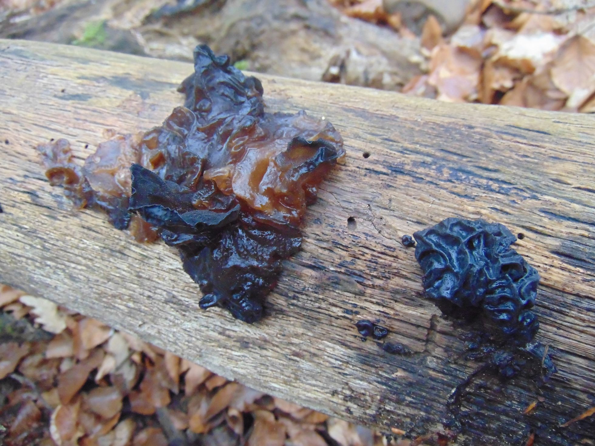 Hola Ernesto, con la primera de acuerdo con nuestro amigo Javier, Exidia thuretiana, la segunda con todos mis respetos al maestro, no me parece Tremella foliacea, ya que esta sus cuerpos fructíferos tienes una forma más de coral o coliflor. Se me parece mas a Exidia glandulosa, aunque en este caso hay varias especies muy parecidas.