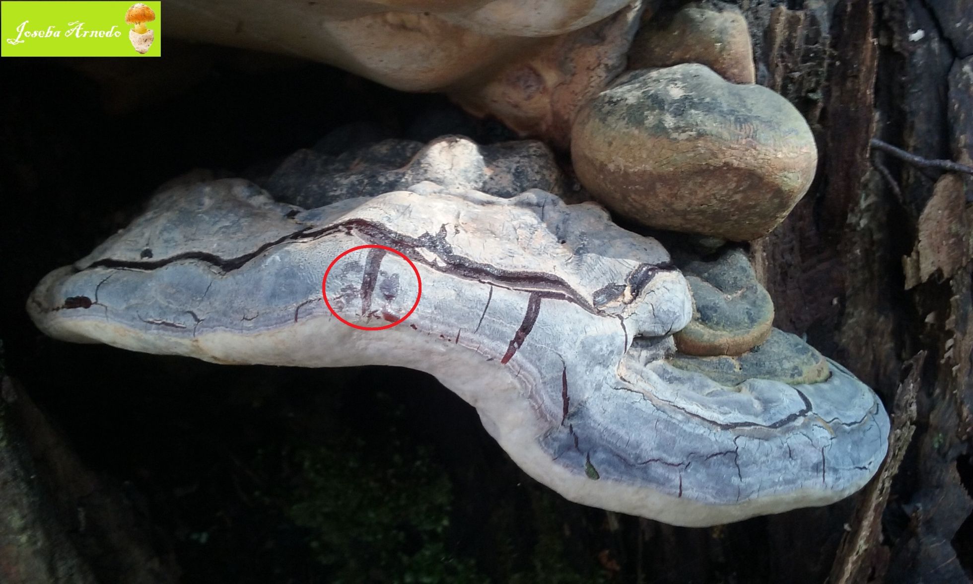 Txelu, aparte de Ganoderma pfeifferi tambien presenta esa especie de costra resinosa Ganoderma resinaceum y Fomitopsis pinicola.