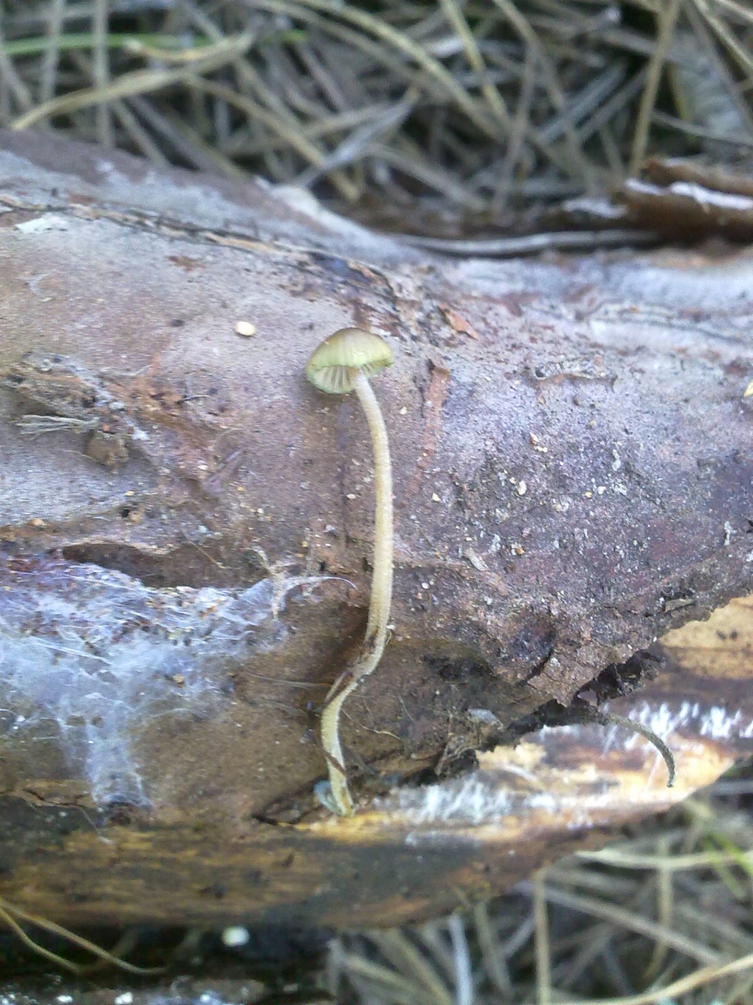 El sombrero no superaba el centímetro y era de color olivaceo, pero si afinamos bien la vista, parece que el margen es de color verde azulado. El pié era largo delgado y apenas podía sostenerse en pié y si de nuevo nos fijamos bien, parece ser algo escamoso.