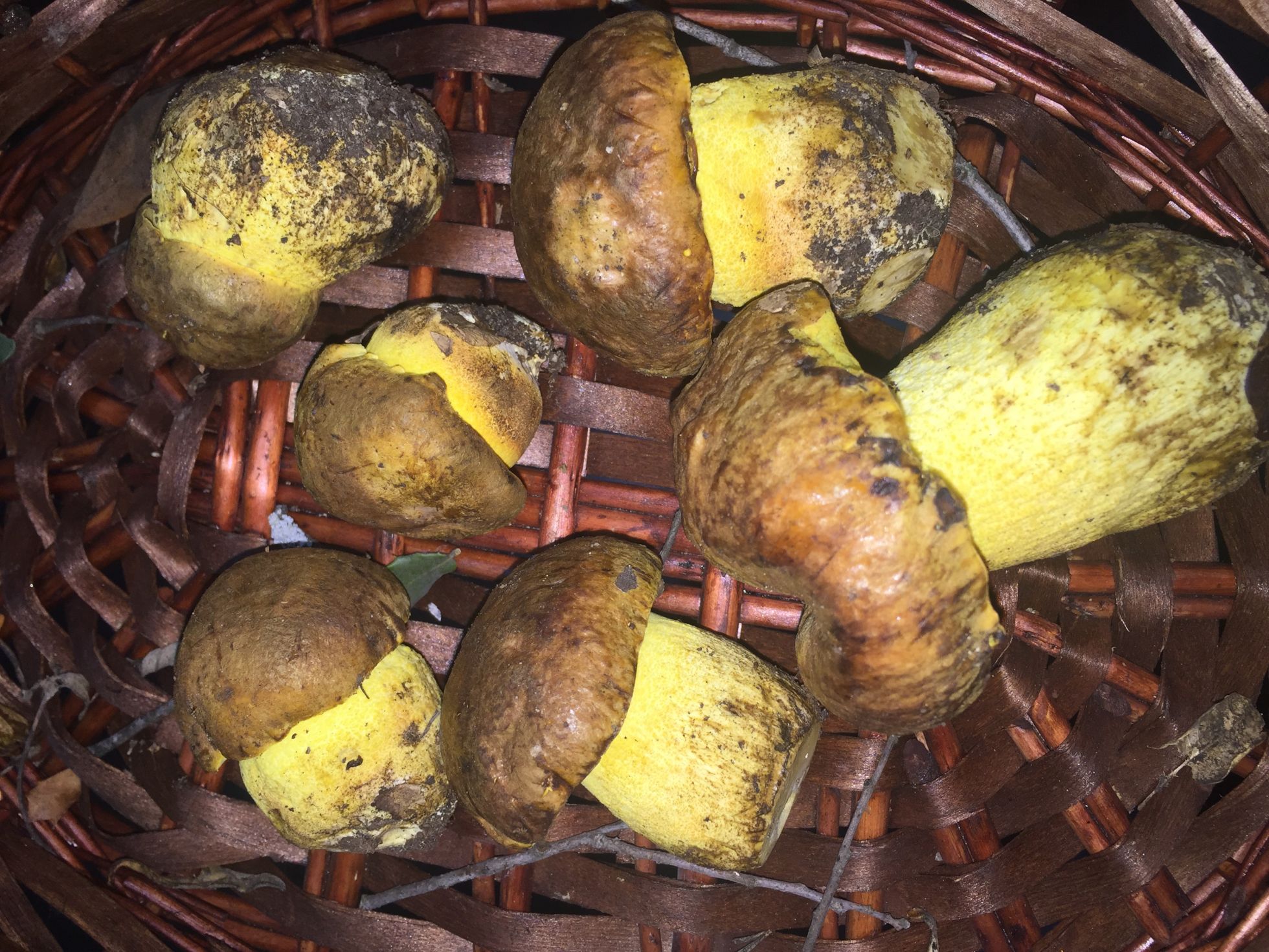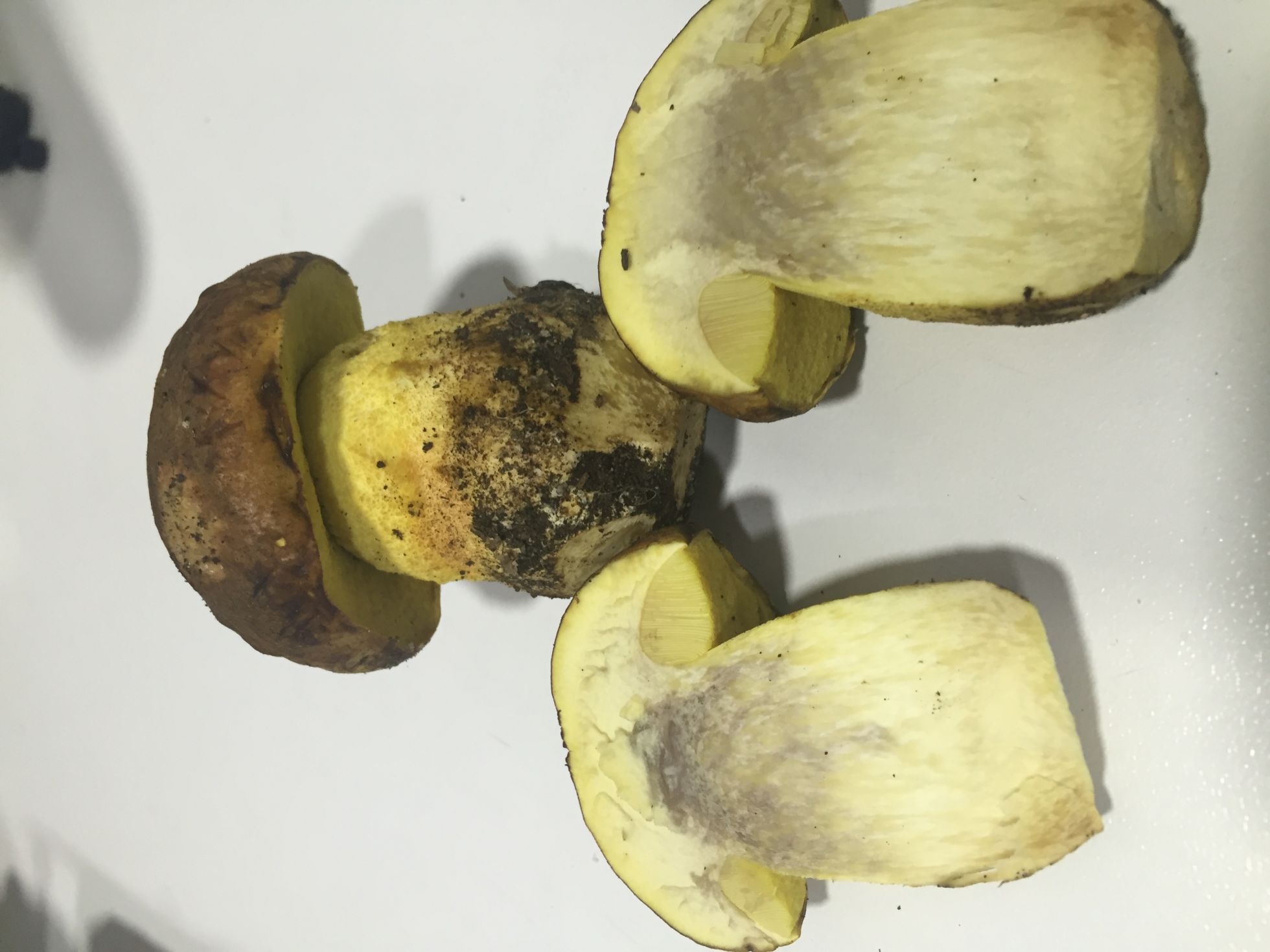 Buenas tardes, he encontrado esta tarde, lo que creo que son boletus en un bosque mixto de encina, Jara y algún alcornoque, a unos 600 m de altitud en zona entre comunidad Madrid y Toledo. Si reto marrón avellana e imenio y pie completamente amarillo. No huelen mal, realmente huele a tierra y al corte ennegrece un pelin, más bien tirando a marrón entre el sombrero y el pie. huele bien al corte, típico del olor de boletus. Puede tratarse de boletus impolitus, aunque el pie no huele a yodo ni nada parecido. De cuál se podría tratar. Muchas gracias.