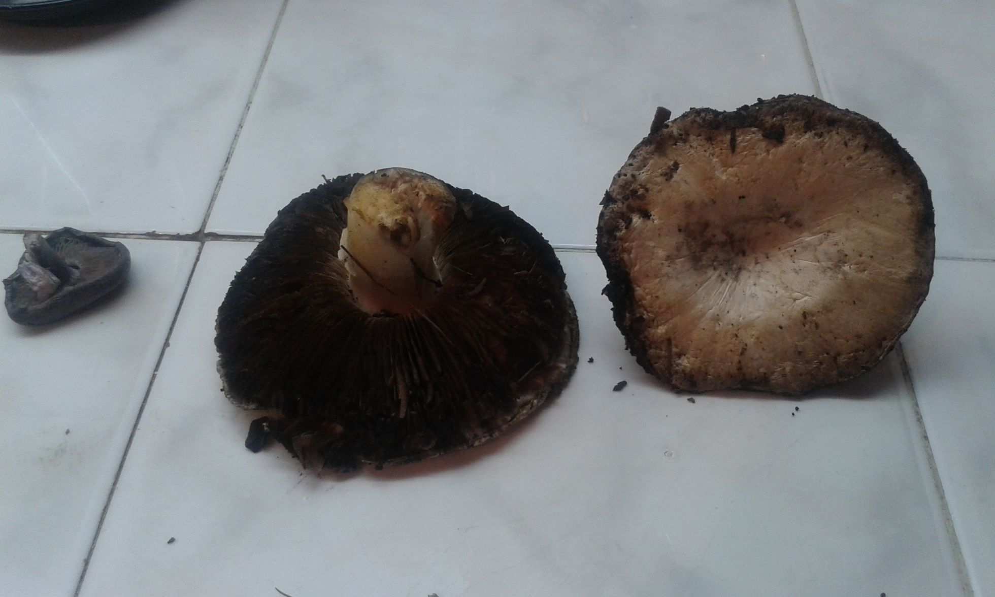 Sin ningún dato solo podemos especular, debes aportar mas fotos de cada especie, lo suyo es que sea en su hábitat natural y mostrando todas las partes de la seta, incluido un corte que deje ver el interior de la carne. Tampoco estaría de mas, que aportaras características de la propia seta como el olor, sabor, cambio de color, hábitat... etc...