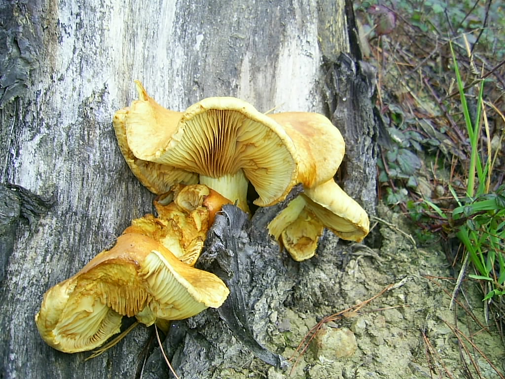Como está en un tocón de pino, pensé primero en una Armillaria mellea, al fijarme en el pie la descarté y ahora tengo la duda. Puede ser un Tricholoma viridifucatum?