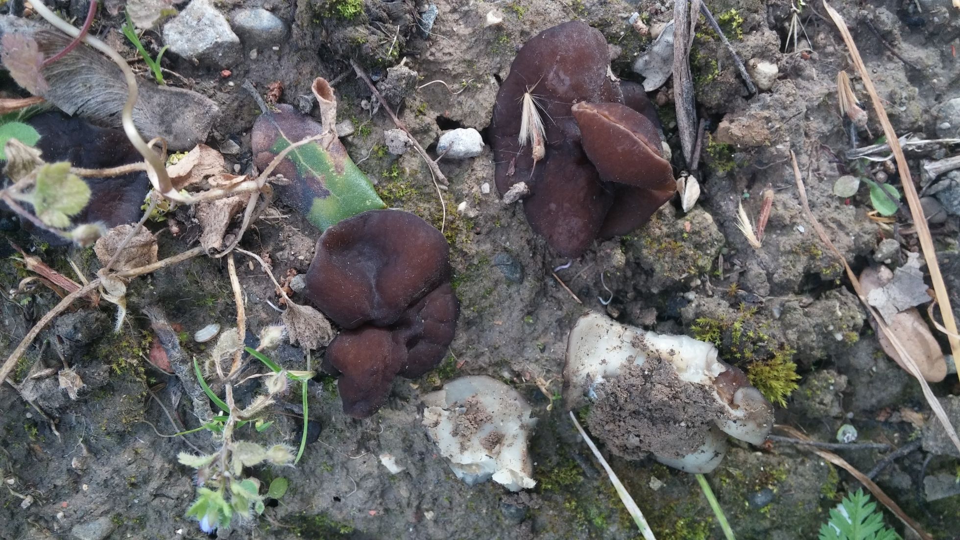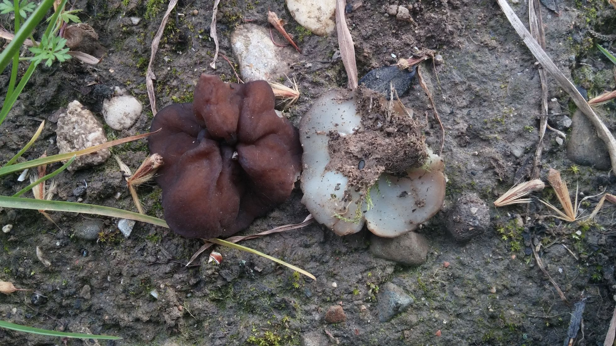 Sobre la Discina no me cuadra el habitat de la que comenta Josep ya que esa frutifica en pinares, en bosque de ribera es comun Discina parma, mira a ver si te cuadra.