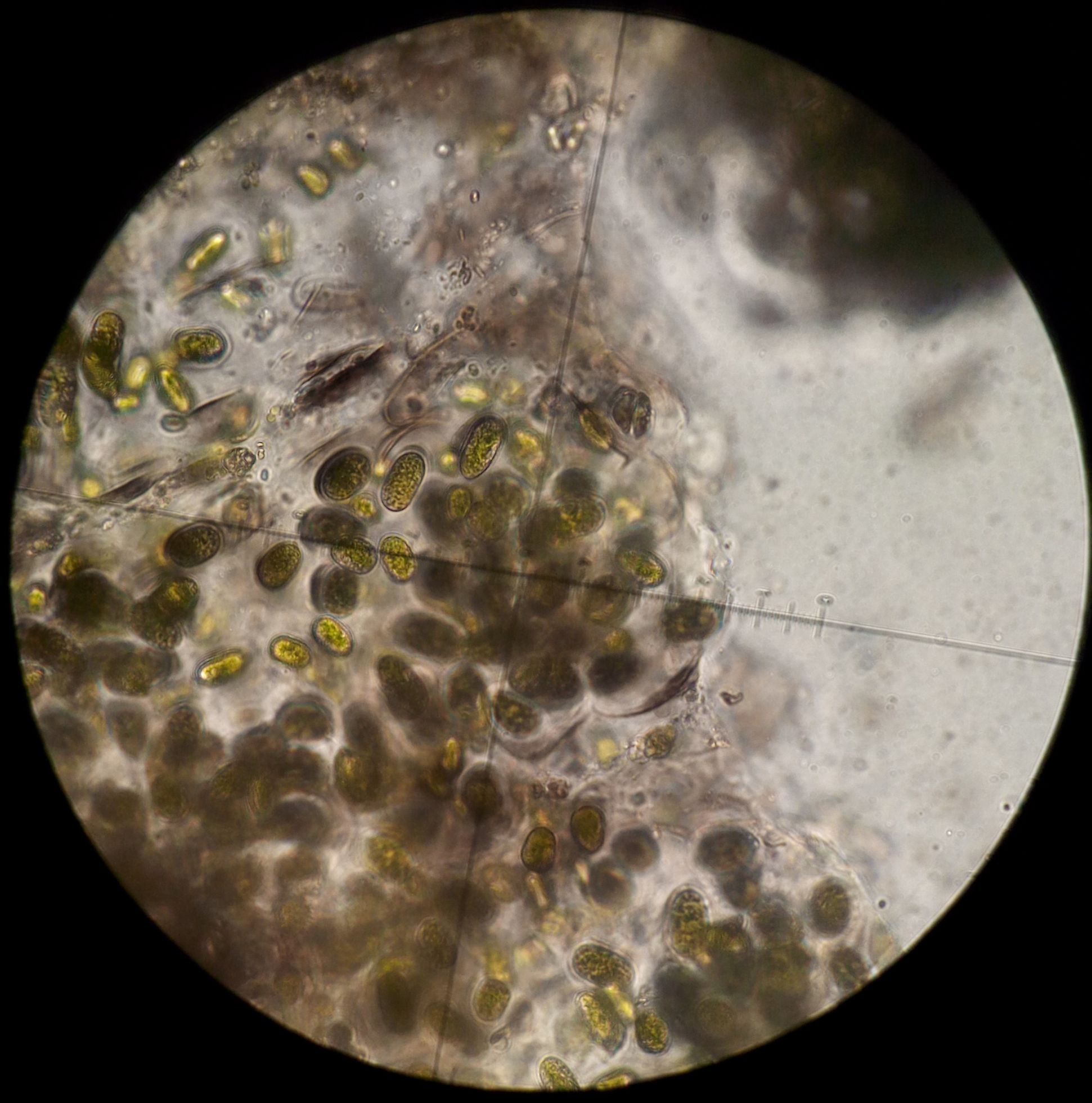 Hola Héctor, extraña especie la que nos propones, evidentemente se trata de un Mixomiceto y probablemente del orden Physarida, lo que no me cuadra es la forma entre ovalada y elíptica de sus esporas, todos los que me he encontrado hasta el momento las presentan practicamente circulares, Badhamia, Fuligo, Mucilago , etc.
