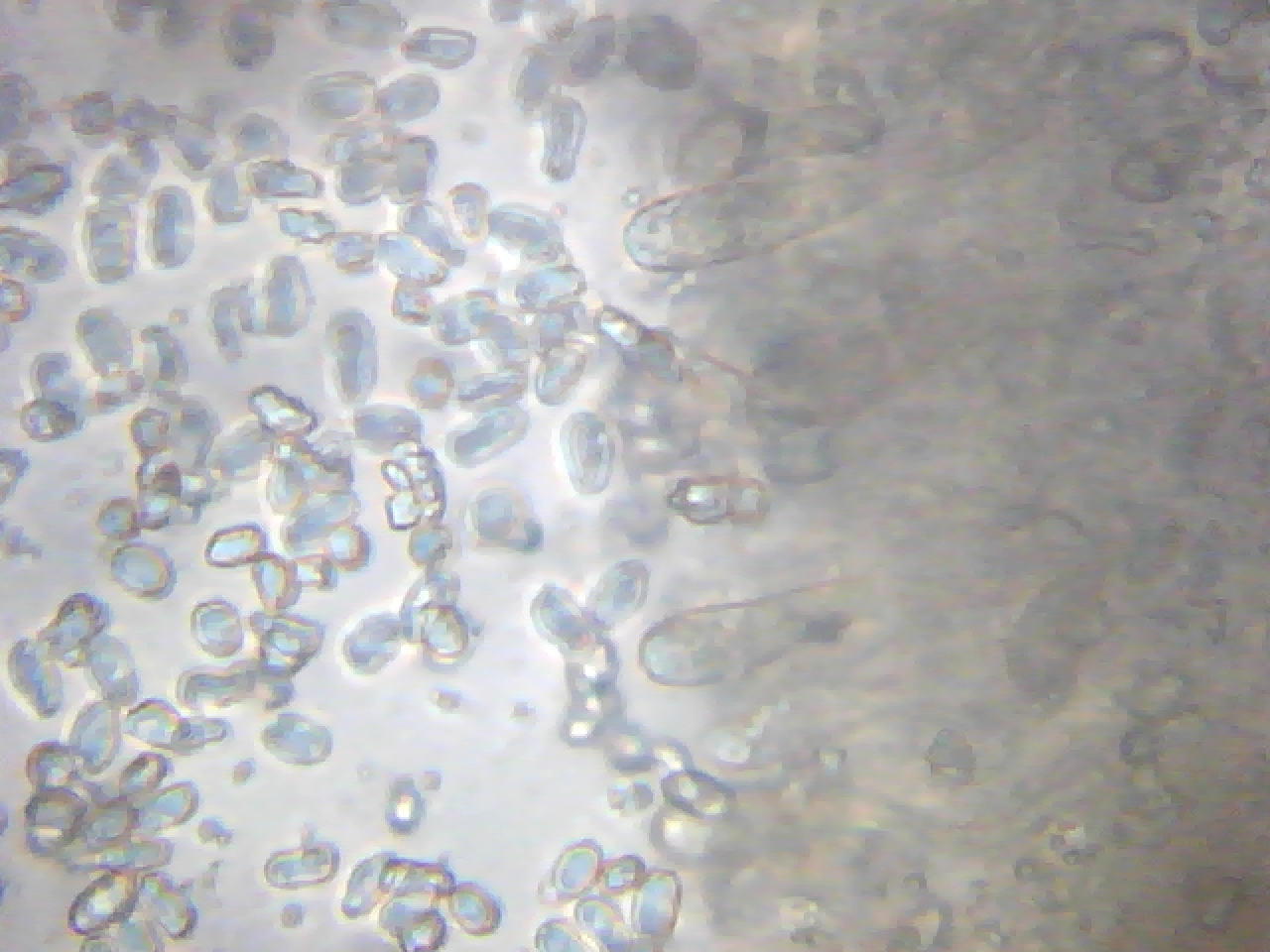 Gracias Javier, intenta medirlas, por si te sirve te dejo un enlace de un pdf. con la microscopía completa de la Amanita boudieri, el aspecto de las esporas es parecido al de tus imágenes.