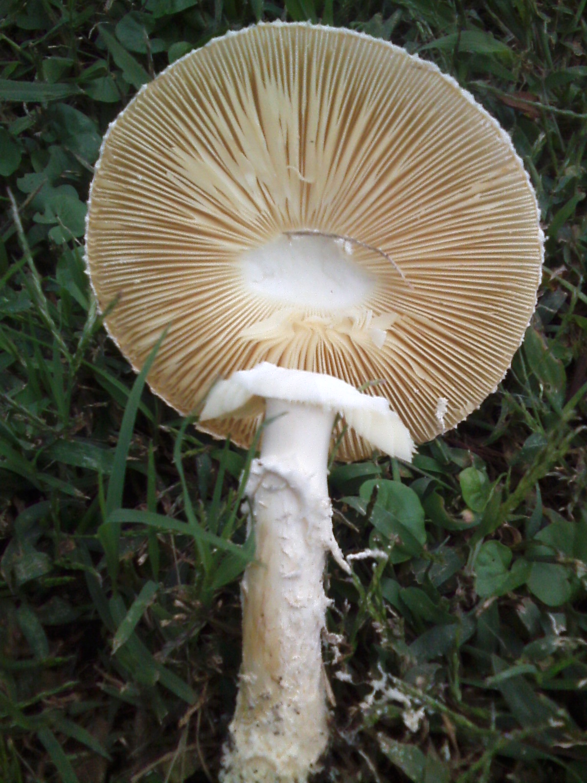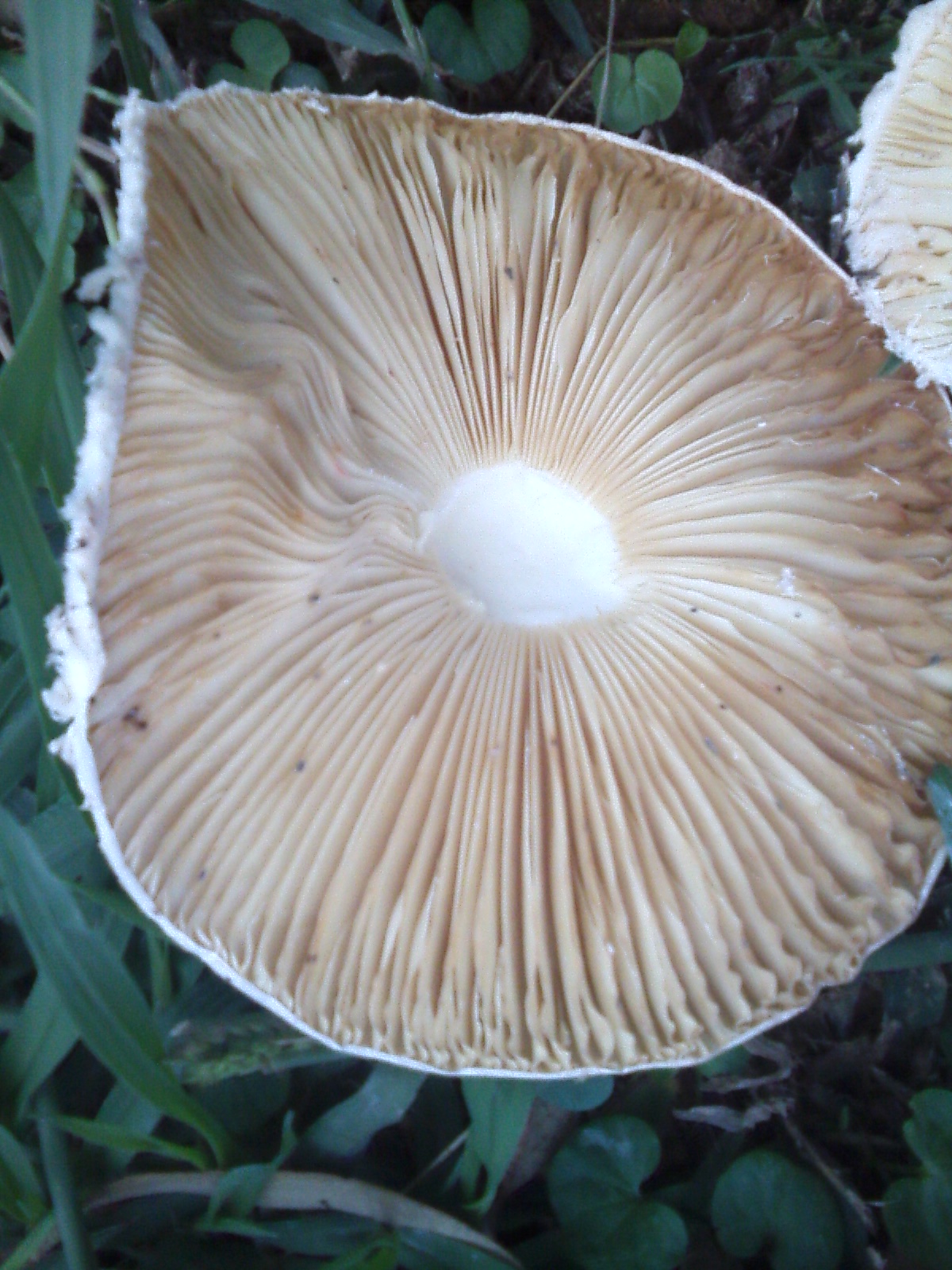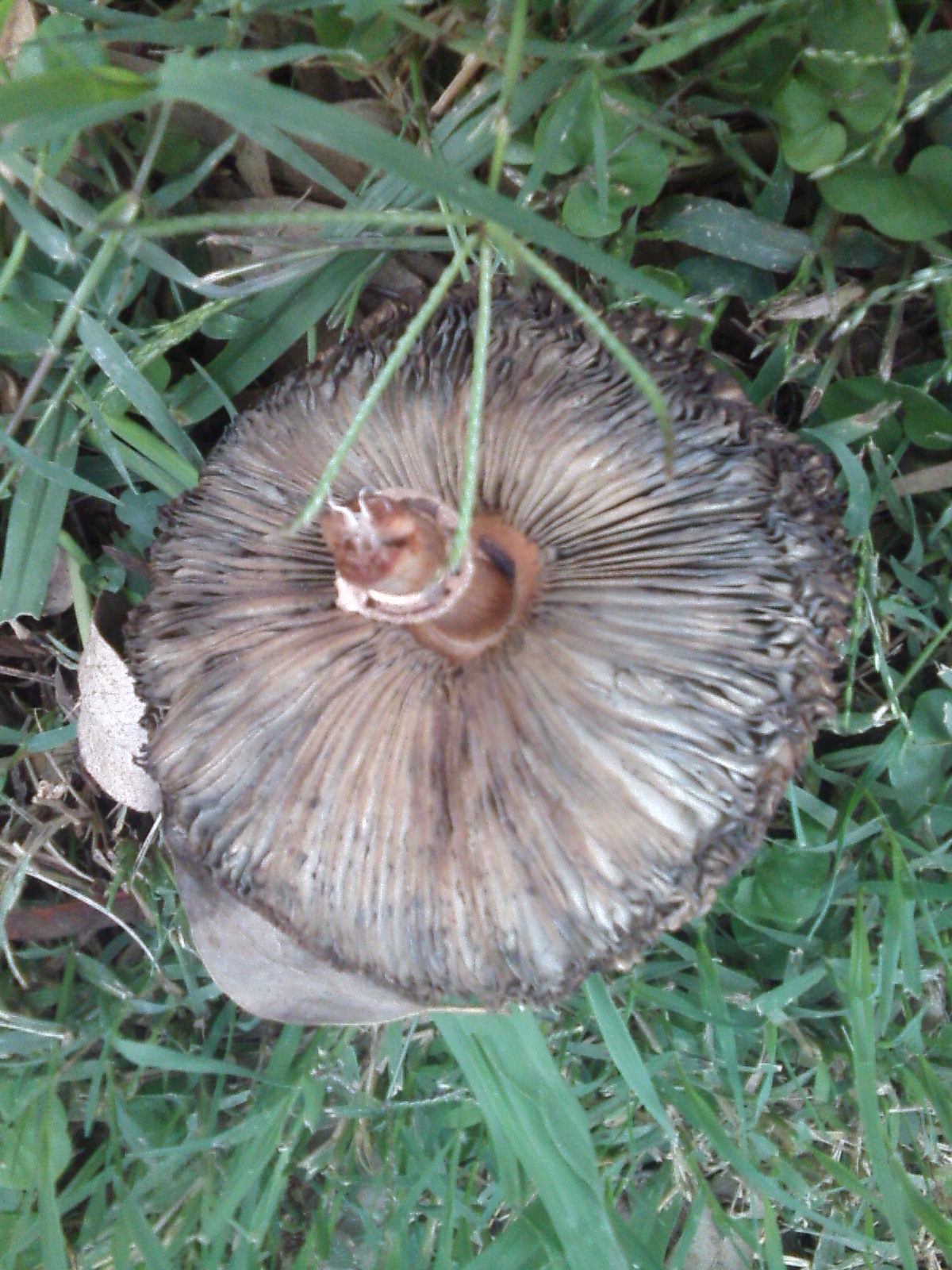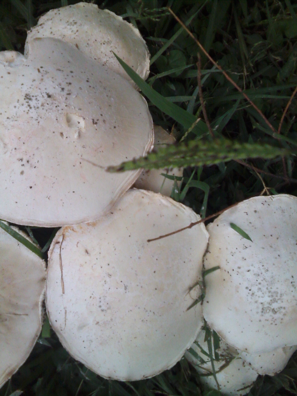 Yo apostaría por un viejo ejemplar de Chlorophyllum molybdites y un Leucoagaricus, saludos.