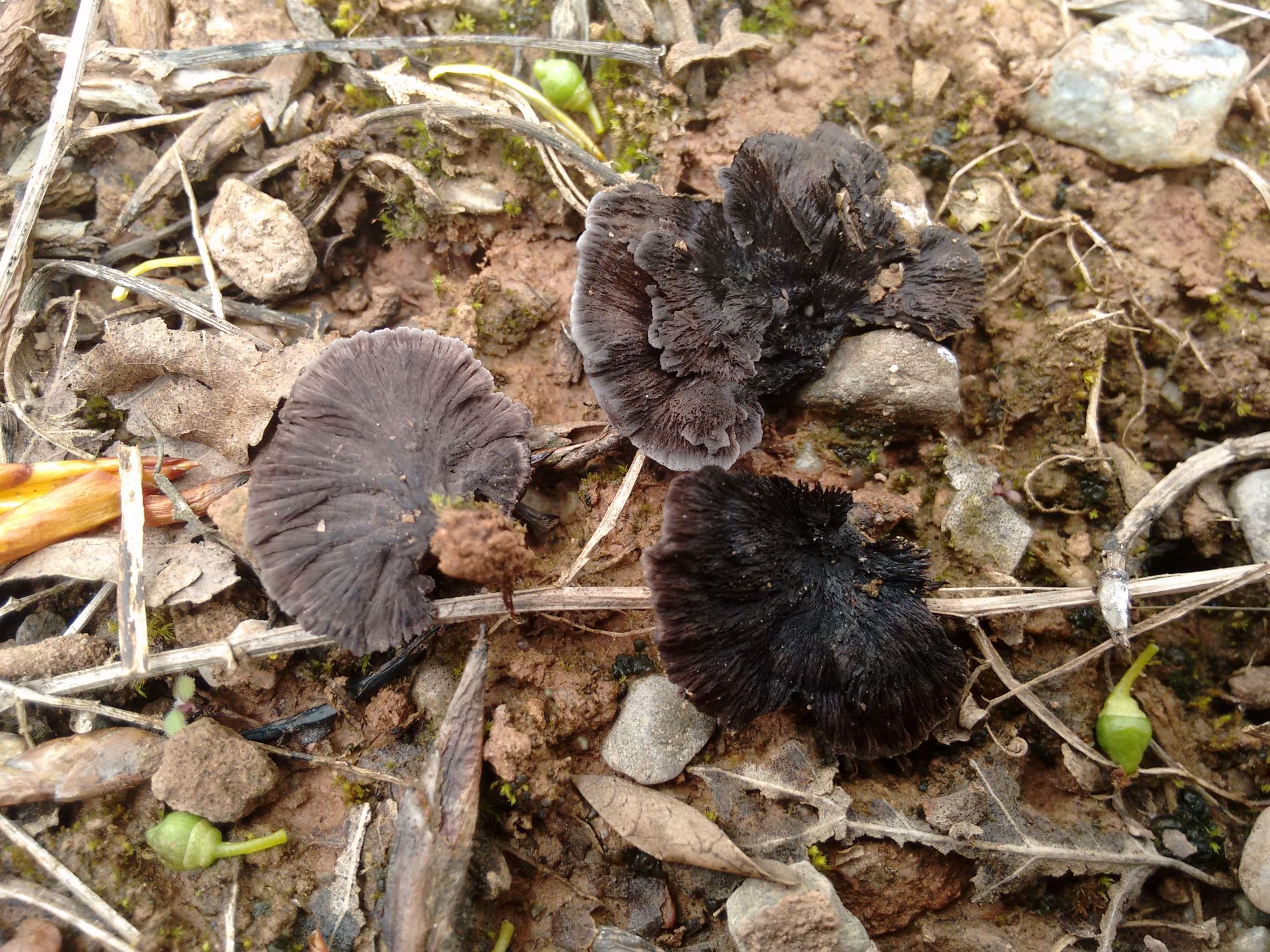 -5 Esta creo que es Thelephora terrestris, pero con dudas, pues según leo sale en pinares, y esta la localice en una chopera.
