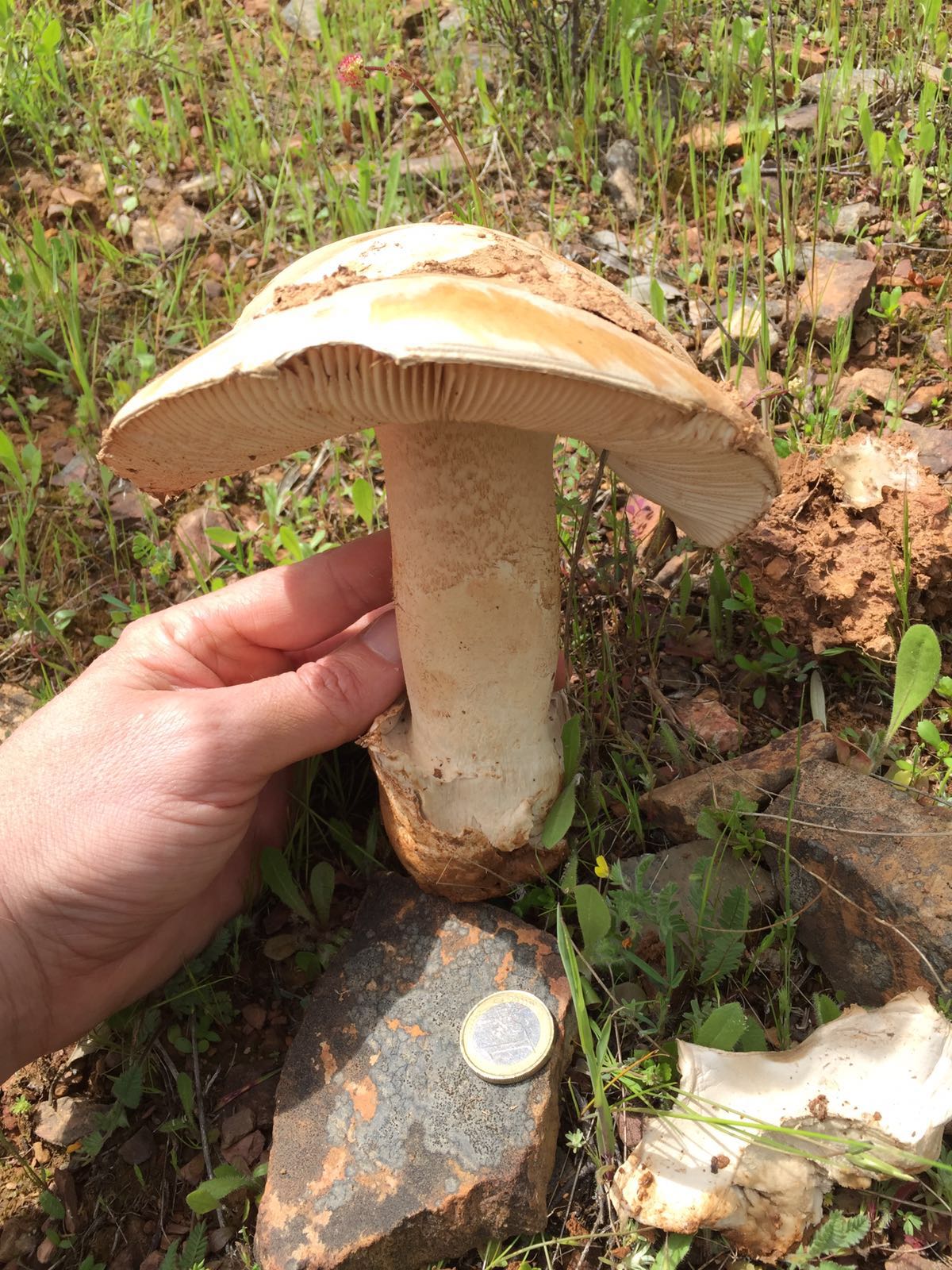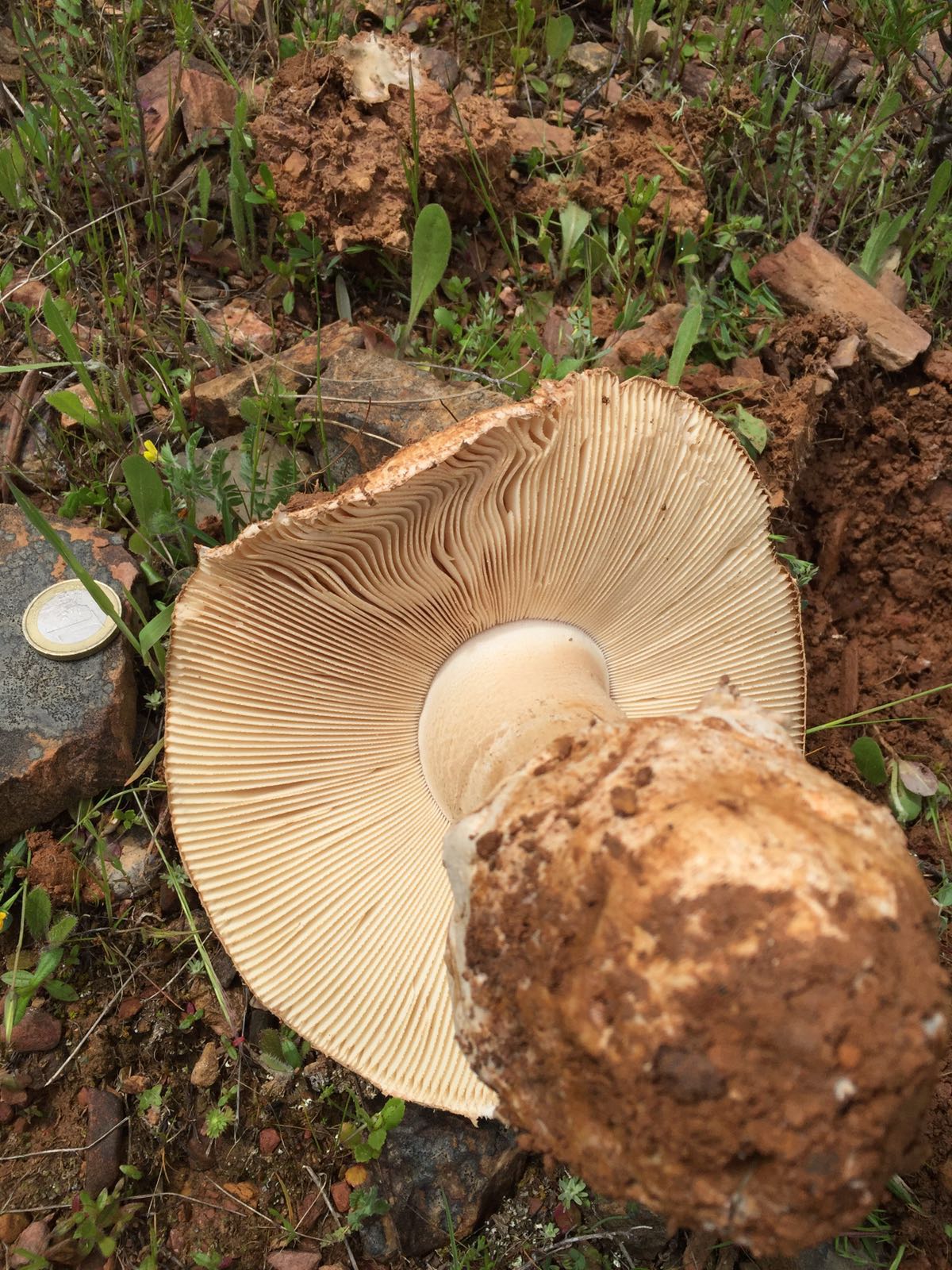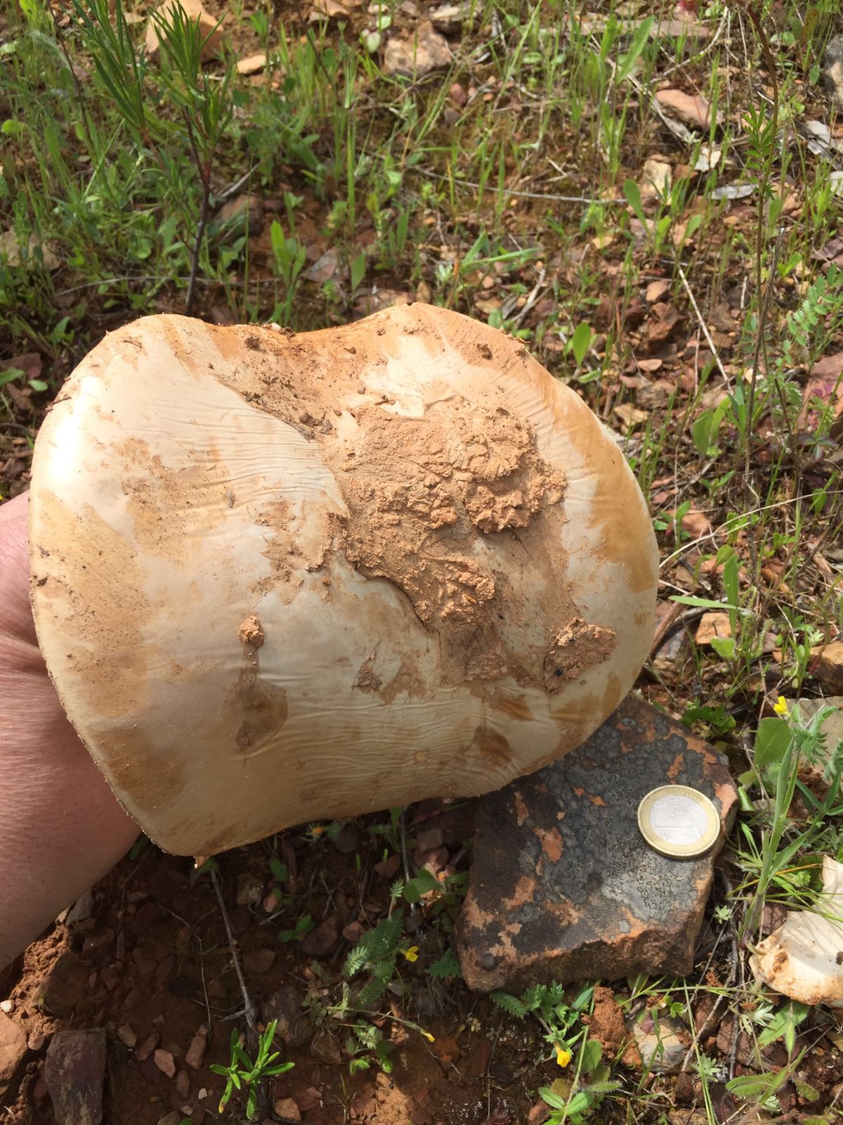 Una vez más os pido vuestra ayuda para que me ayudéis a conocer una especies que encontré en Cáceres a unos 650 msnm y en un prado de encinas y alcornoques. Las primeras imágenes no sé si tendrán algo que ver con el gurumelo.
