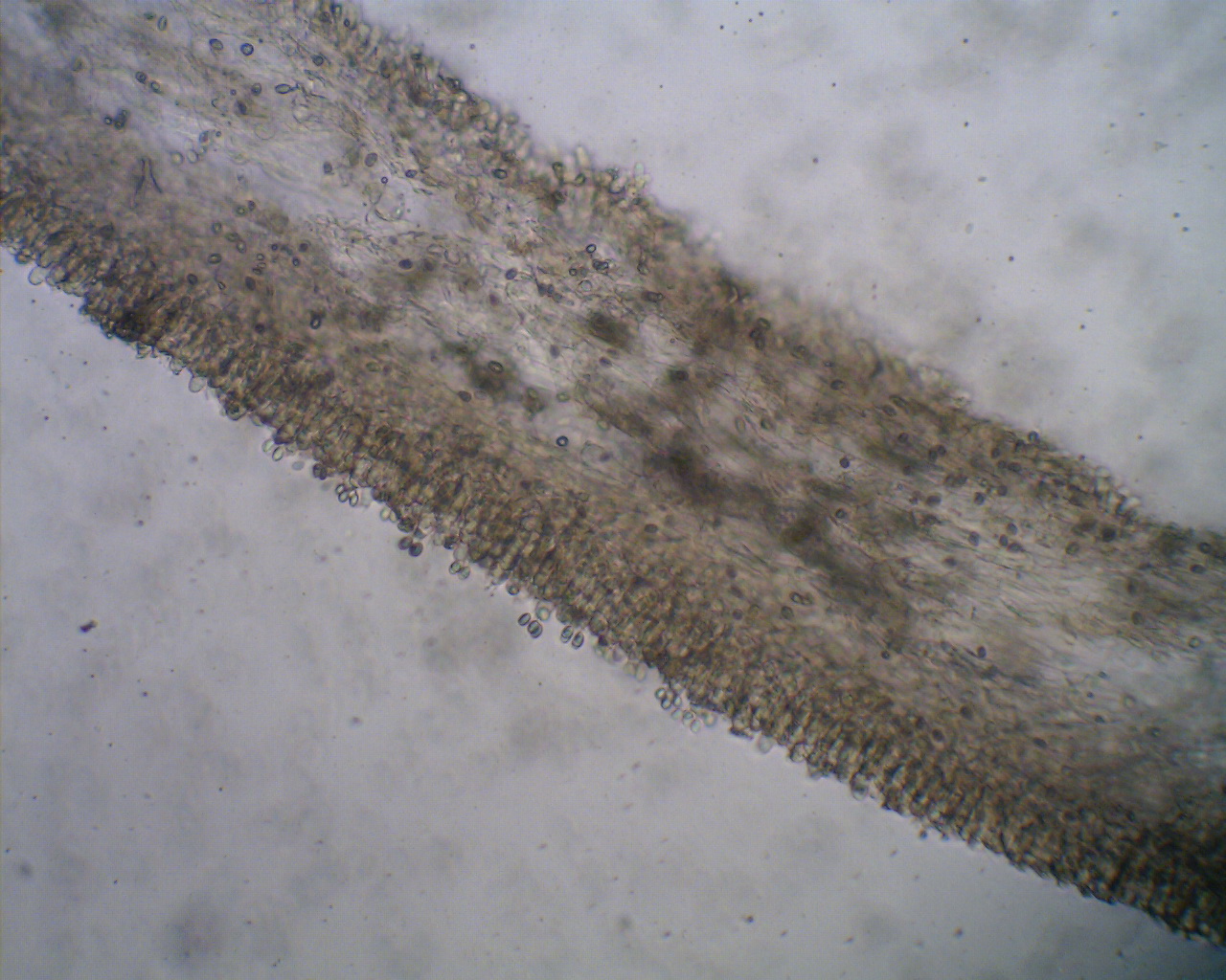 Hola a tod@s, tiene que ser Melanoleuca, por las esporas verrucosas. No veo los cistitidios en pelo de ortiga característicos del Género en el corte transversal (muy bueno por cierto), eso nos lleva a un grupo muy reducido y emparentado que necesita una revisión, Melanoleuca graminicola, Melanoleula stridula y Melanoleuca melaleuca.