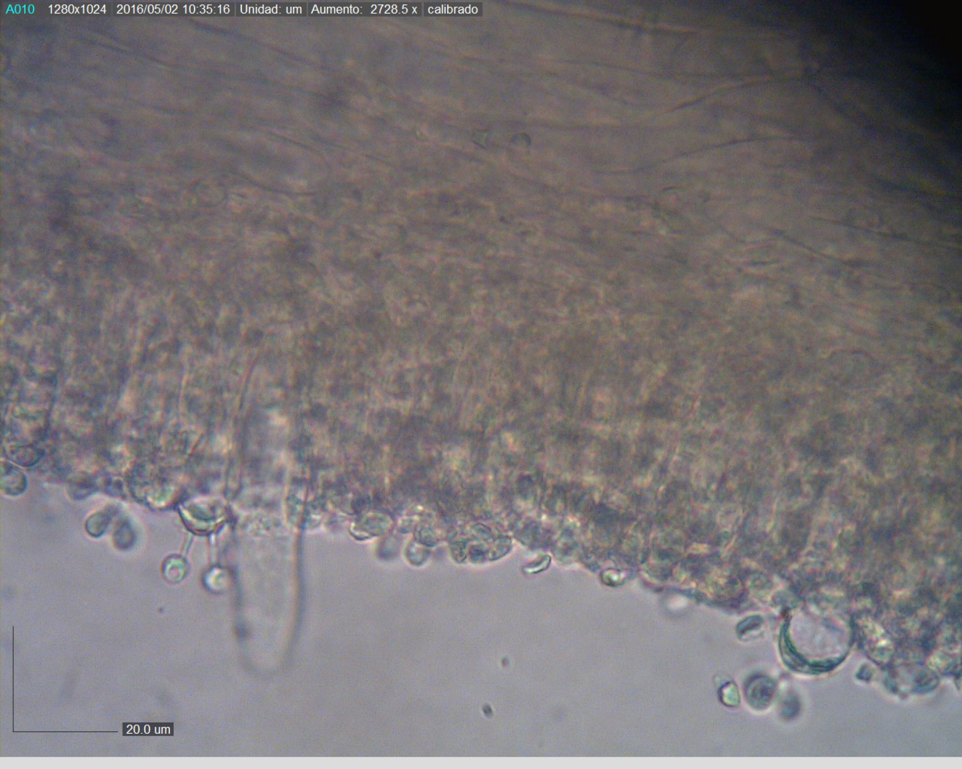 Hola Héctor, los Entolomas acostumbran a presentar unas esporas angulosas, he presentado uno hace poco donde se aprecia el detalle, en cuanto lo que denominas como queilocistidio, entiendo que se trata de un pleurocistidio ya que los queilocistidios hay que buscarlos en la arista laminar, y en la imagen se observan los basidios y la trama laminar por lo que no puede tratarse de la arista. La estructura de la sexta foto me parece un cistidio contaminado.