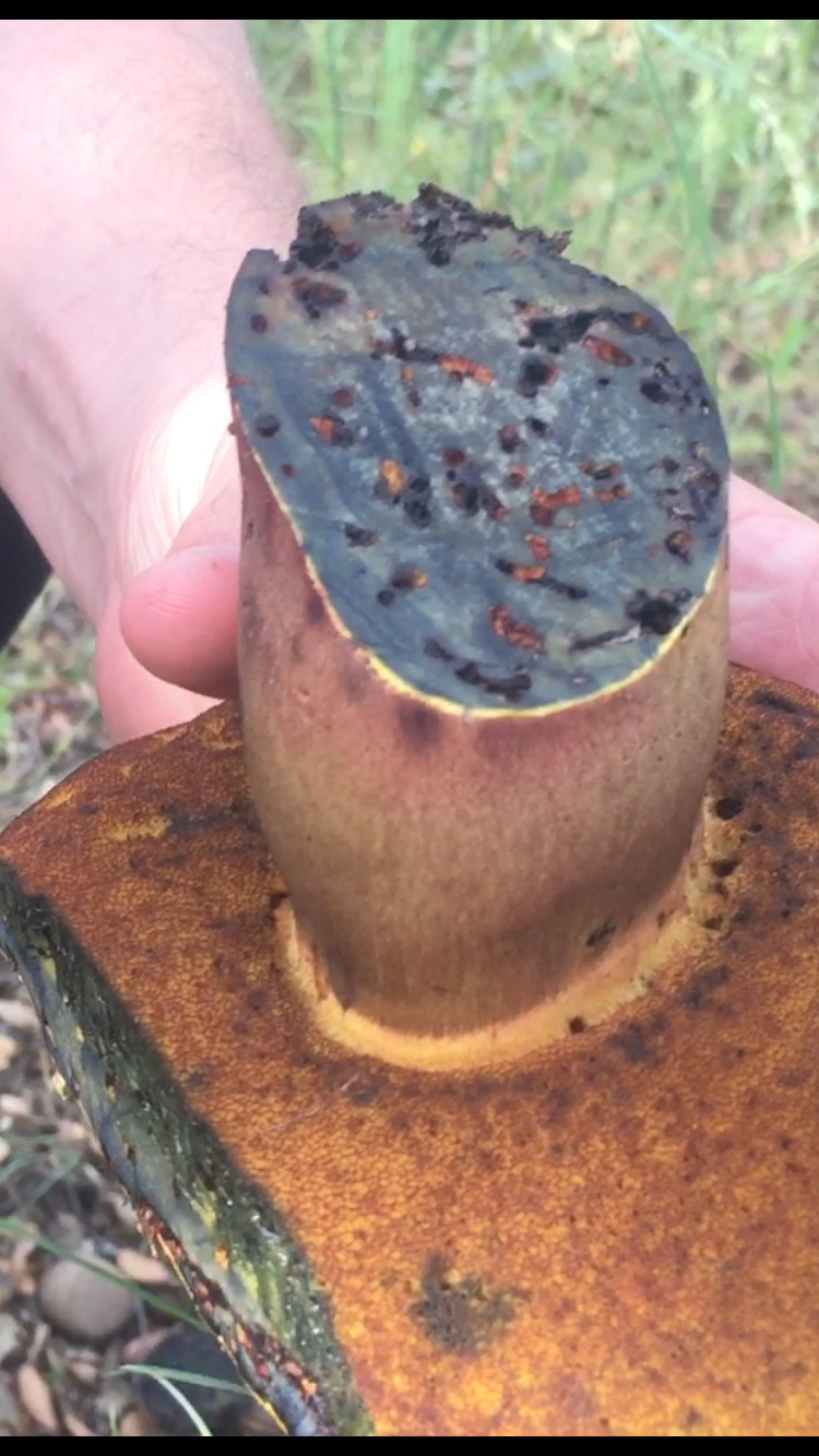 Sobre la pregunta de si hay boletus de más tipos, yo creo que de tres tipos, el que he puesto que es aterciopelado, otro que azulea de la misma manera pero es liso brillante ( marrón). Estos dos creo que pueden ser luridus y erytrhopus. Otro amarillo muy claro por todos los lados que no cambia su color al corte que yo creo que es la variedad impolitus. El de la foto si es naranja la carne al retirar los tubos.