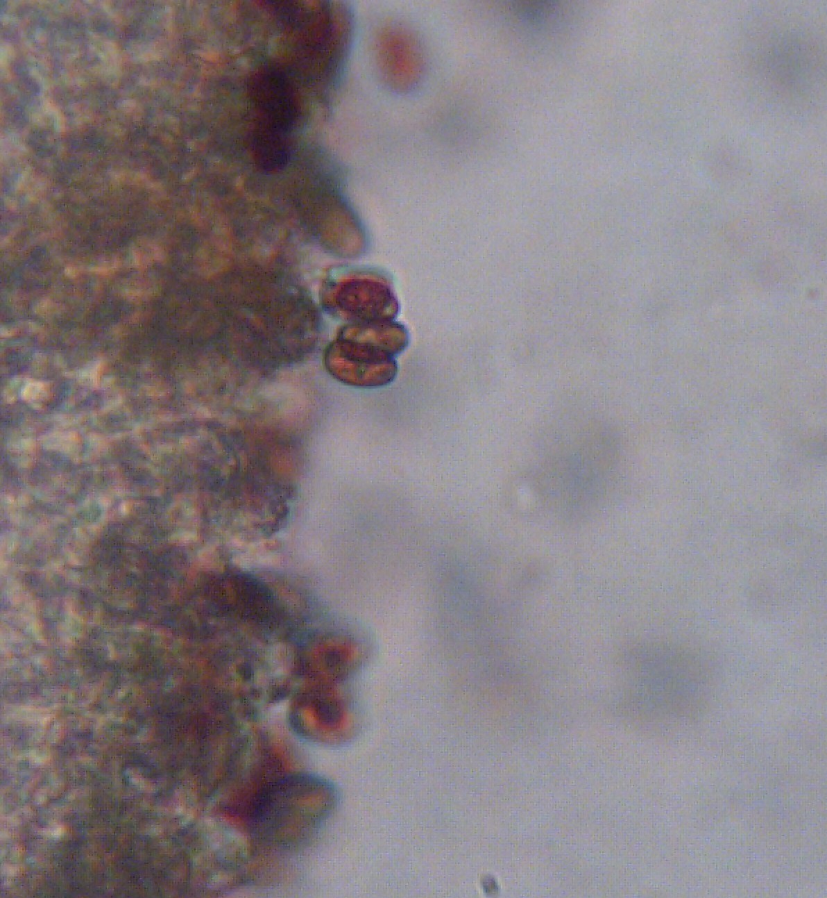 Hola Héctor, sin duda se trata de una Psathyrella, yo intentaria sacar imágenes de los queilocistidios (cistidios de la arista laminar) . La microscopía que nos muestras me recuerda la de la Psathyrella gossypina, aunque en este caso no me encaja el hábitat.