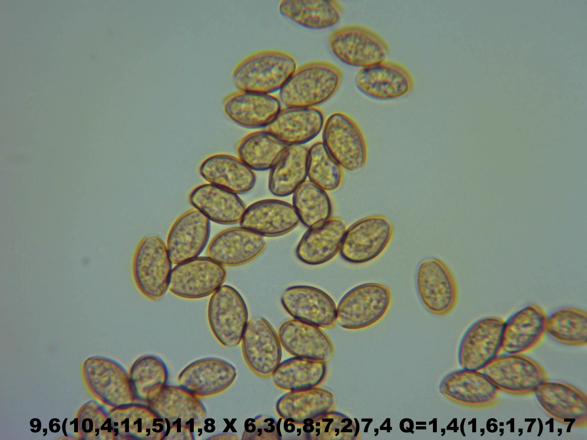 Hola Héctor, en cuanto a la segunda , lo más parecido que me he encontrado es el Conocybe tenera, te dejo la ficha que hice de ella, así como una imagen de las esporas y el resultado de mis mediciones. Las bolbitiaceas acostumbran a soltar una gran cantidad de esporas con el tiempo, cuando las tengas las pasas de nuevo por el micro y las mides para ver si coincidimos.
