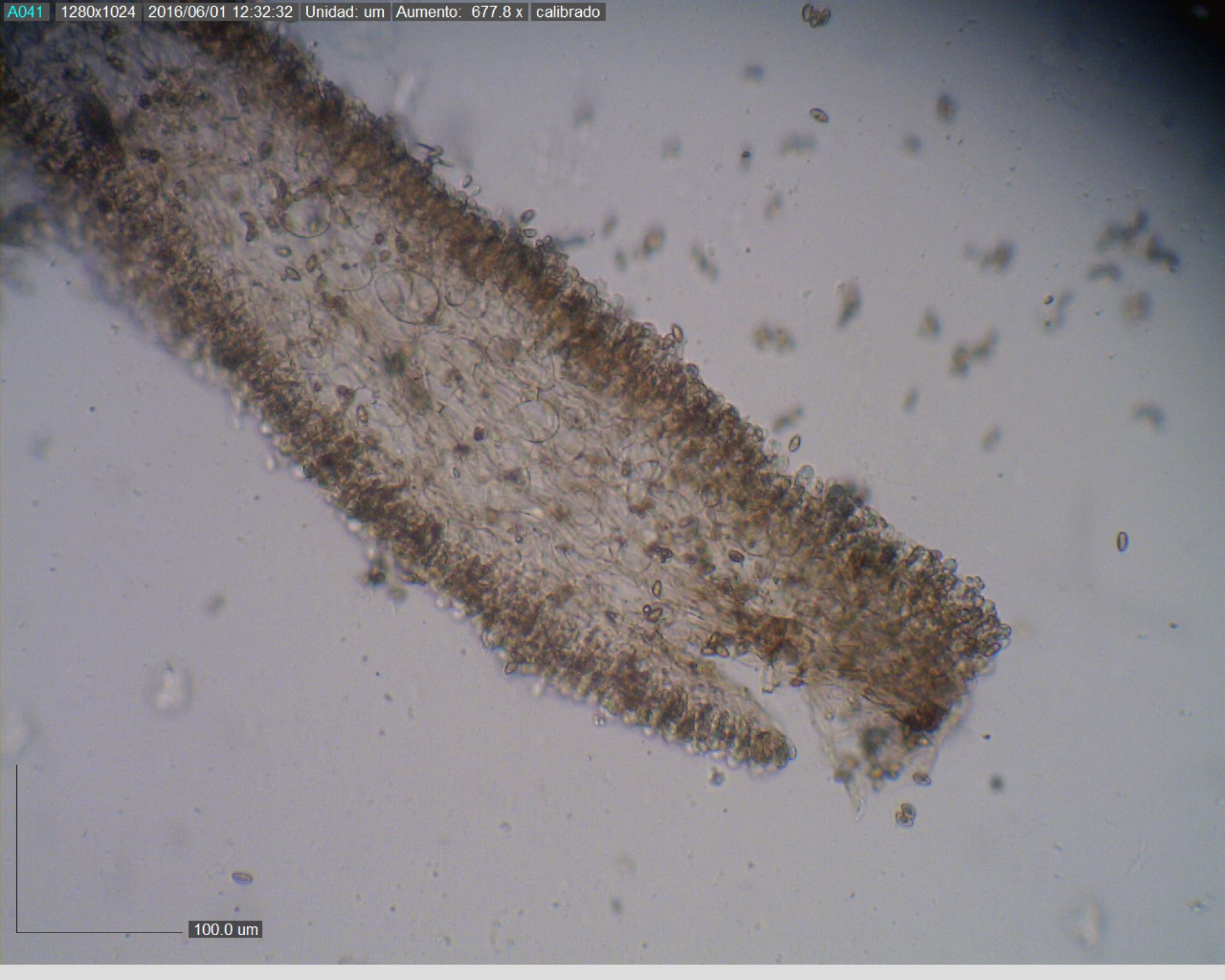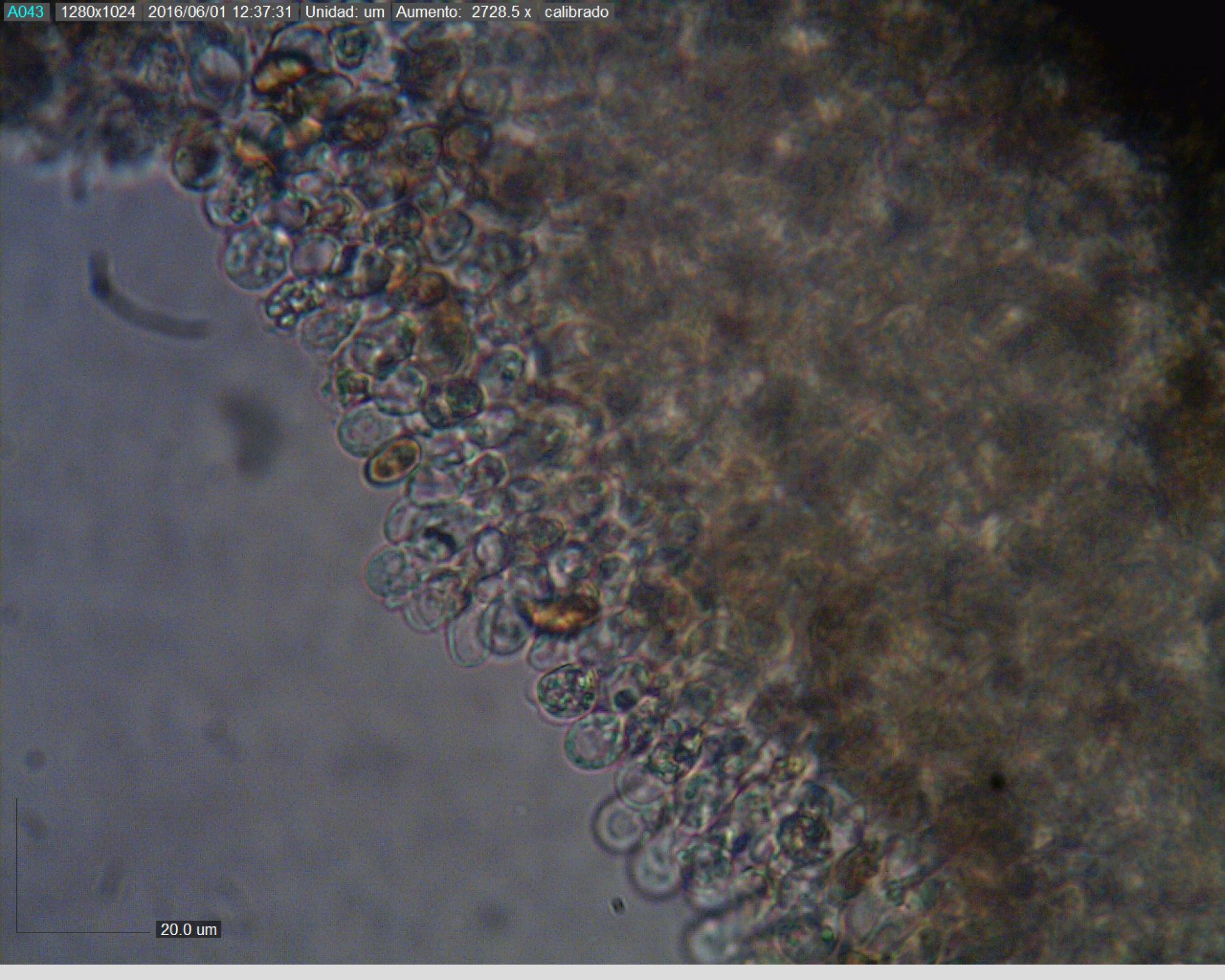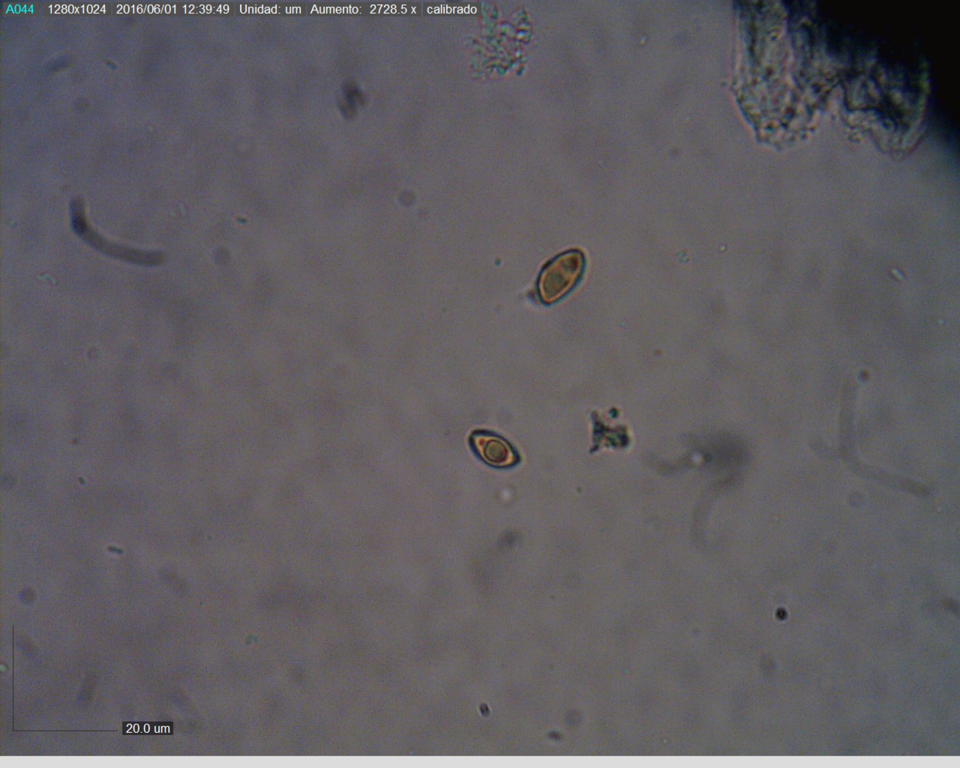 aquí os muestro unas esporas, a ver si mñn os puedo poner sus medidas.