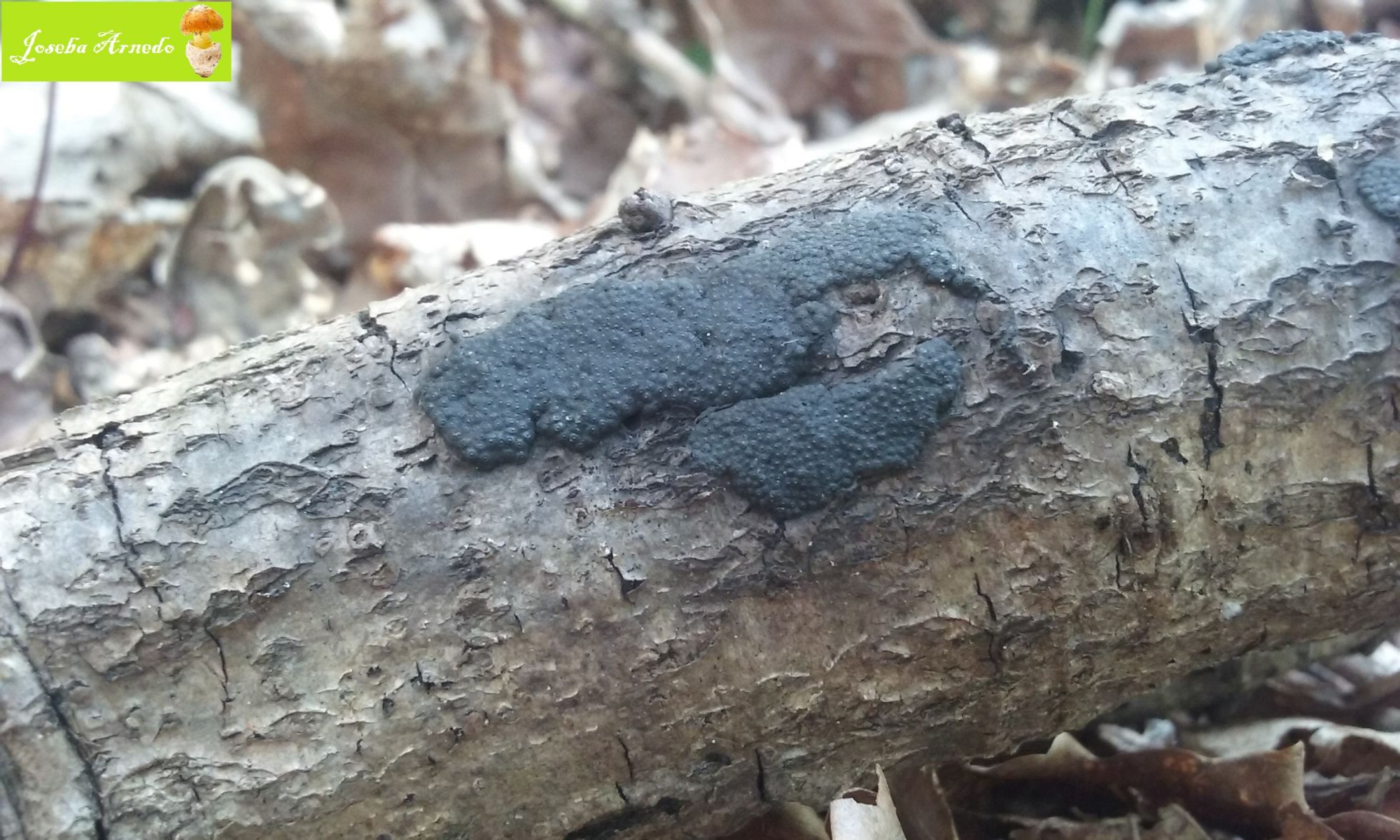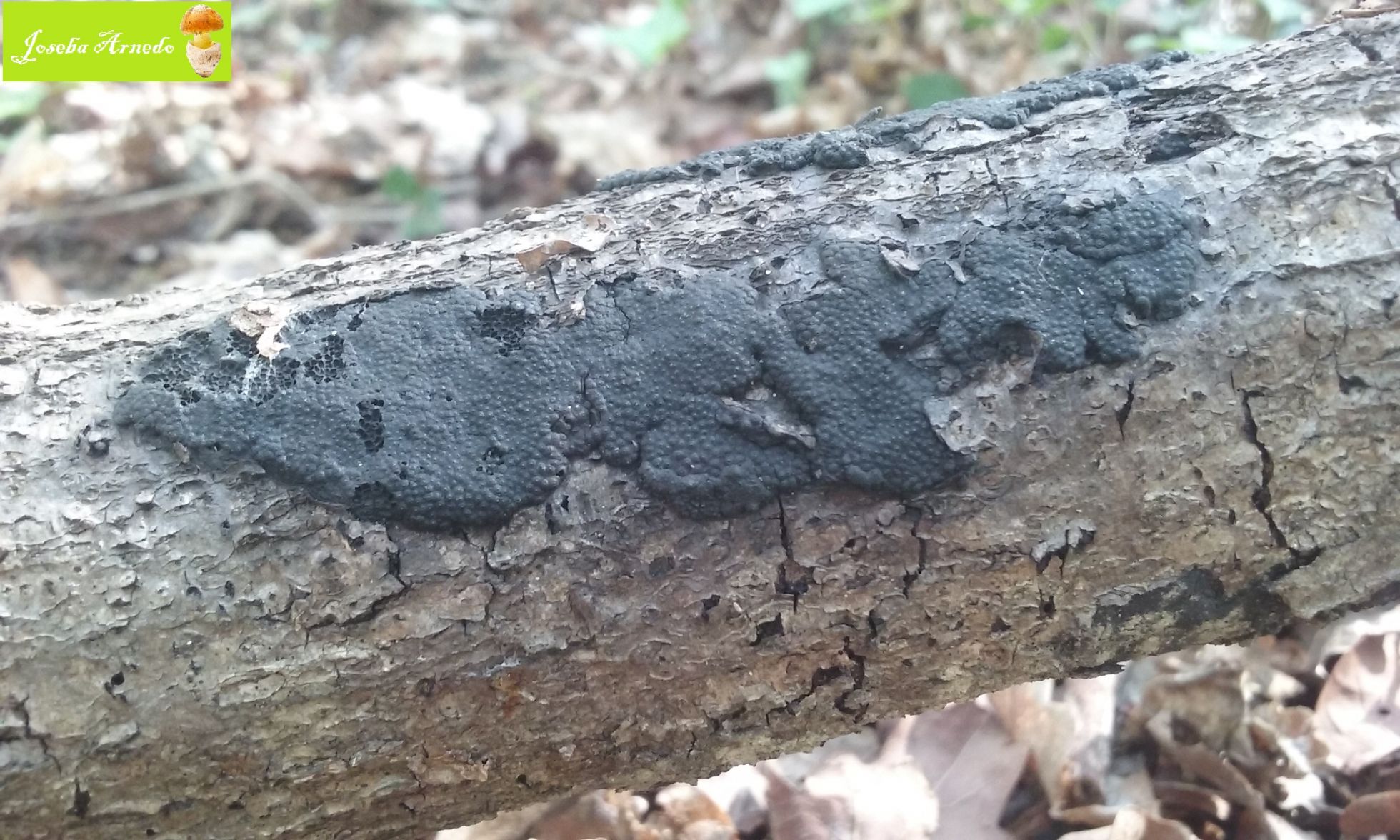 Diatrype stigma la he visto en muchas ocasiones en hayas y la veo muy distinta. Los ostiolos (creo que asi se llaman las protuberancias) son mucho menos marcados. Ocupan mucha mas superficie y suelen presentarse cuarteados. En este caso el mio, tengo claro que se trata de la familia Hypoxylon.