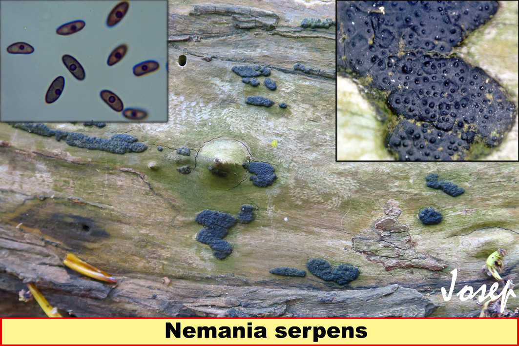 justo estaba pensando en dos de las especies que has mencionado. En un principio en multiforme y stygium pero viendo el habitat de cada una, me habia decantado por la segunda ya que multiforme es casi exclusiva de madera de abedules. Sin embargo ahora con la propuesta de Hypoxylon serpens=Nemania serpens me has vuelto a crear dudas ya que no barajaba mas posibilidades que Annulohypoxylon stygium