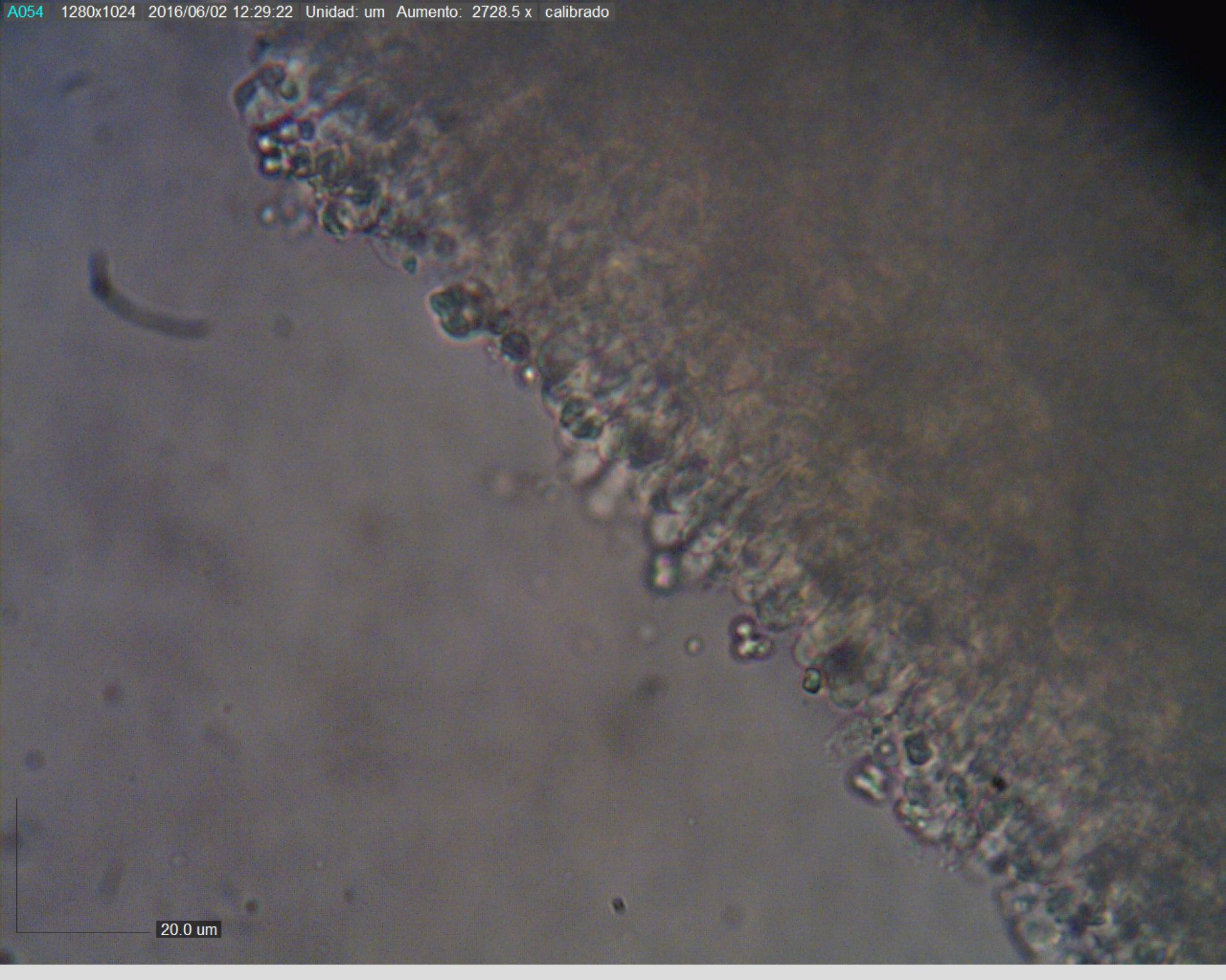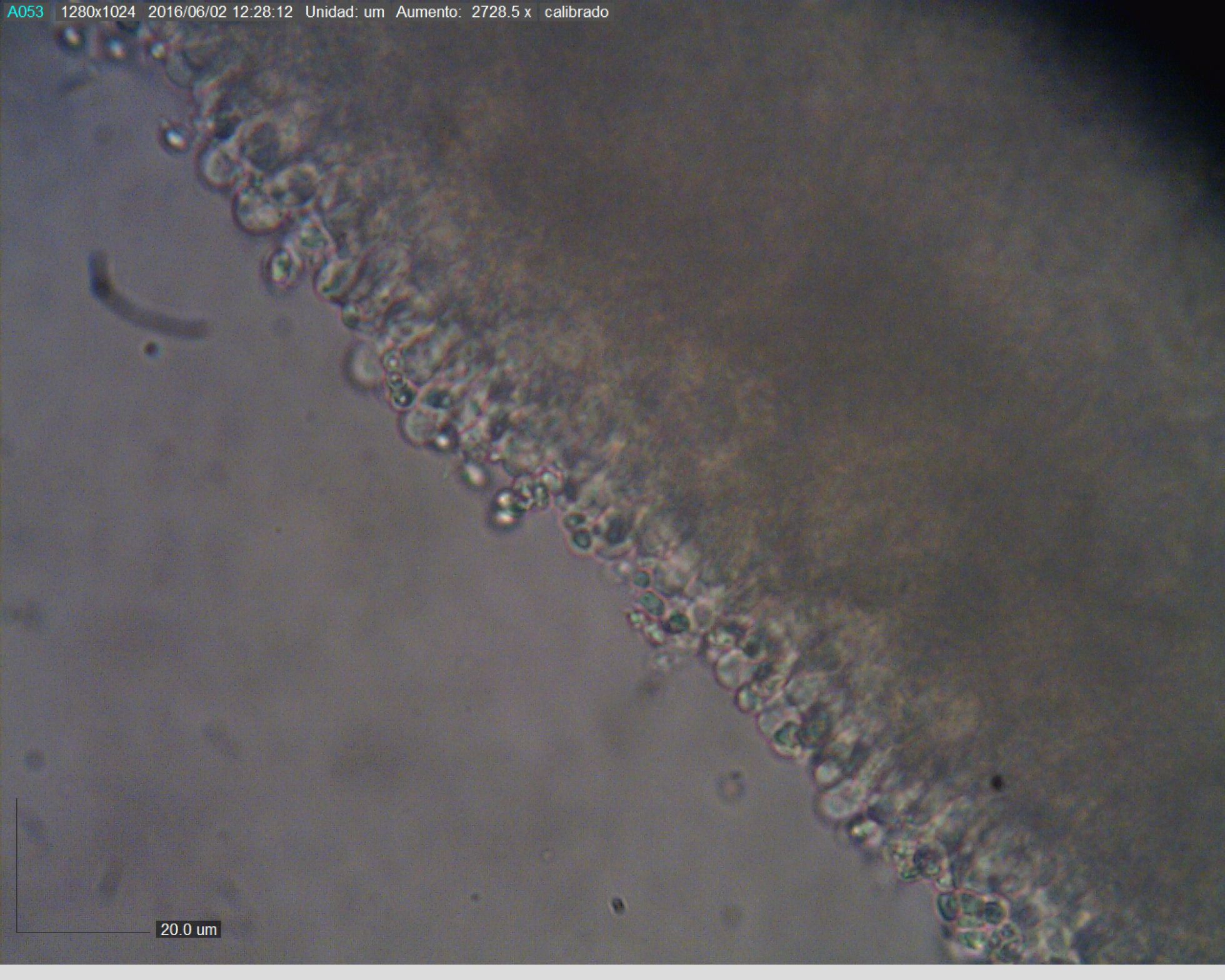 detalle de la arista laminar, en que pueden apreciarse los queilocistidios digitaliformes