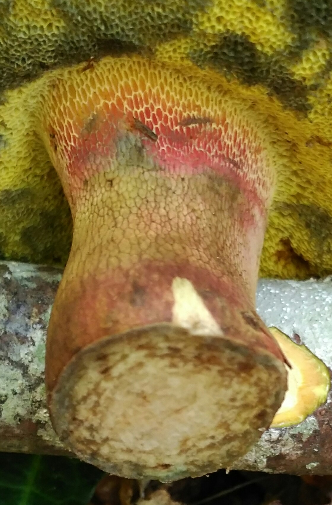 juan antonio aldama: tengo dudas, los poros no son anaranjados sino verde oliva tirando a amarillo, al cortar el pie no cambia de color y el pie es mas estrecho