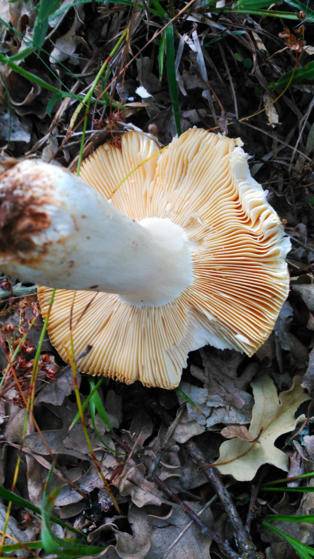 Hola Sergio, la Russula aurora creo que está totalmente descartada, su esporada es blanca y viendo las láminas de esta seta no es el caso, a mi me da más por Russula curtipes, por decir alguna posibilidad, otras que se me ocurren son picantes......