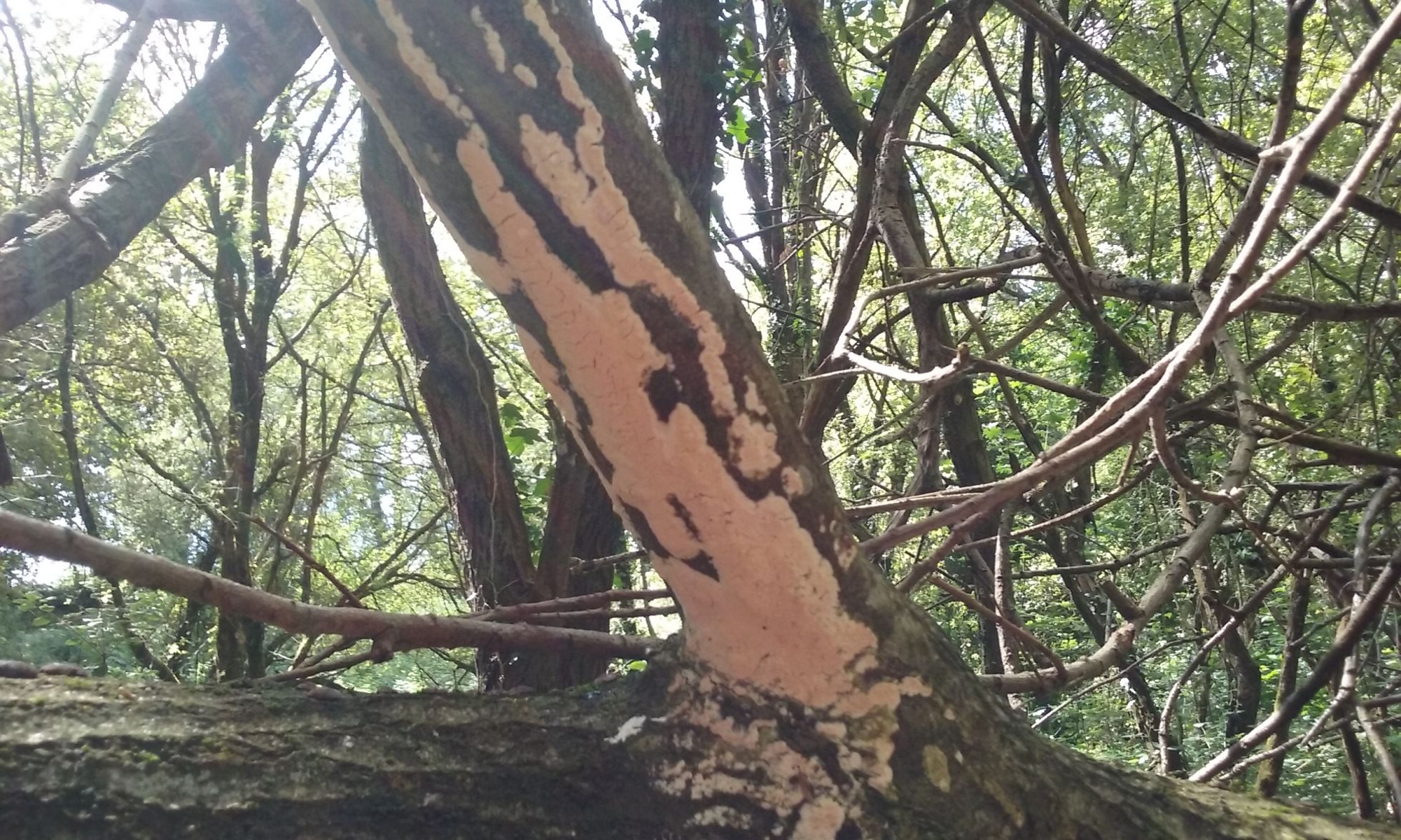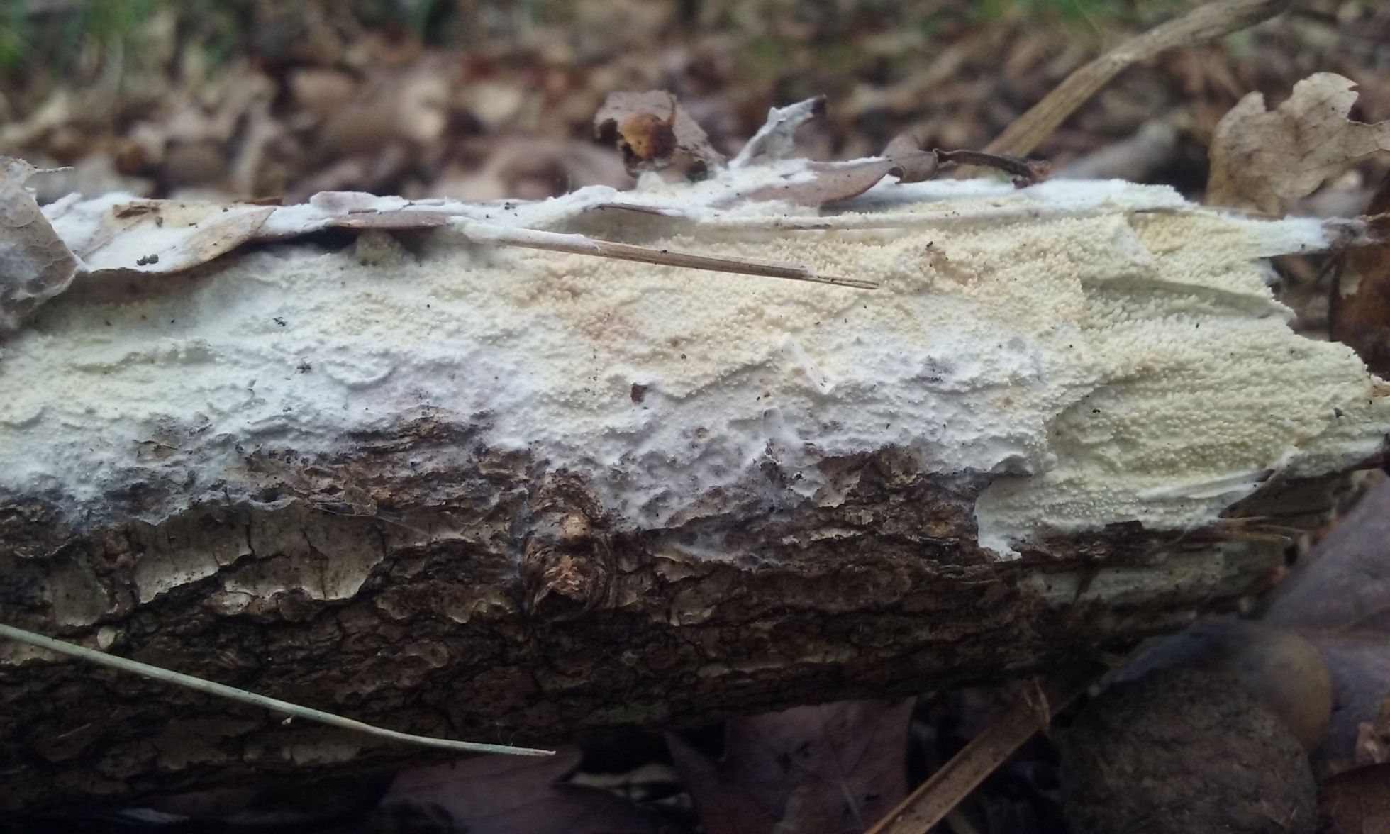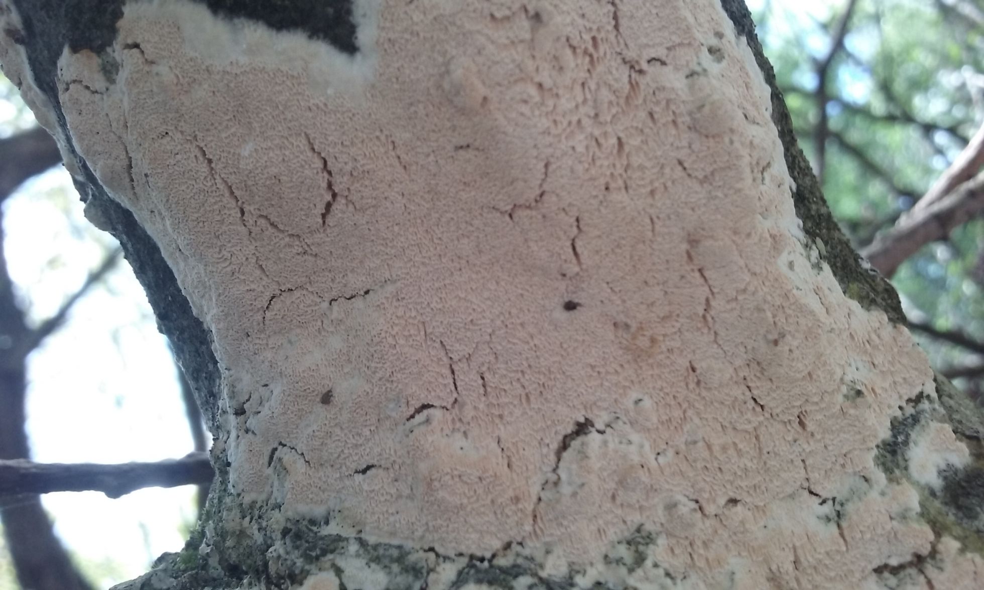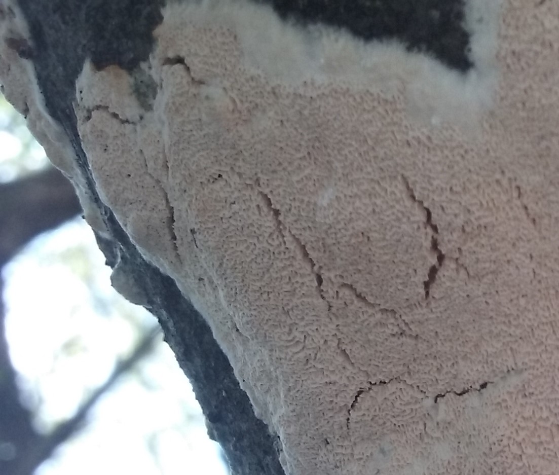 aparte de ser una especie comun sobre madera de planifolios las caracteristicas macroscopicas encajan a la perfeccion, los bordes son blancos mientras que el interior suele ser de un color ocre o salmon y esta formado por poros de tamaño variable.