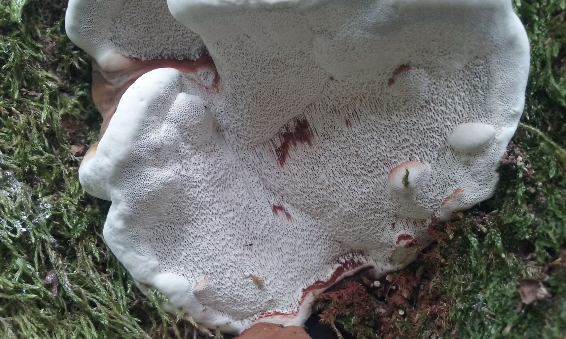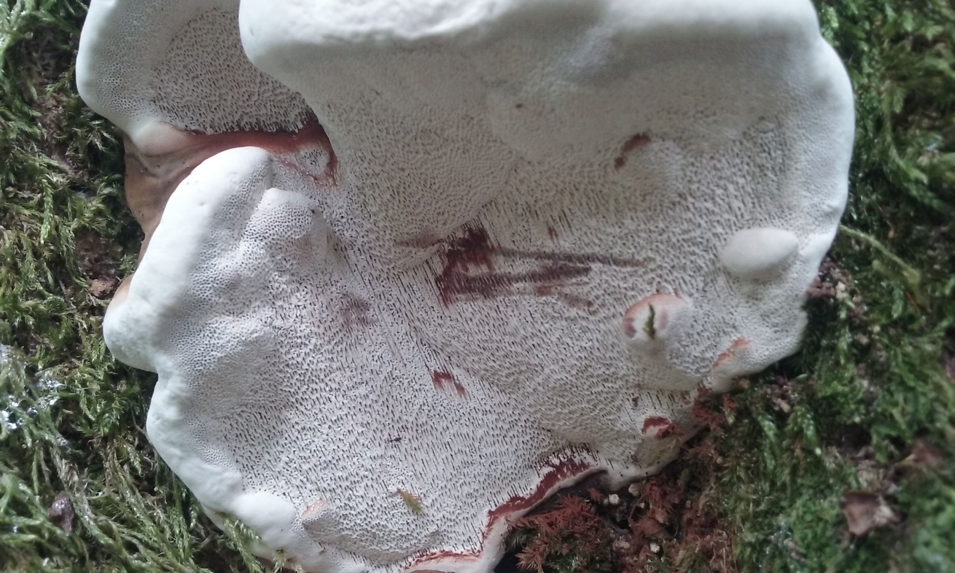 De esta especie crecian varios individuos cerca de la base de un roble muerto. Son de consistencia dura aunque ceden a la presion. Sus poros como podeis observar en las fotos se manchan al roce.