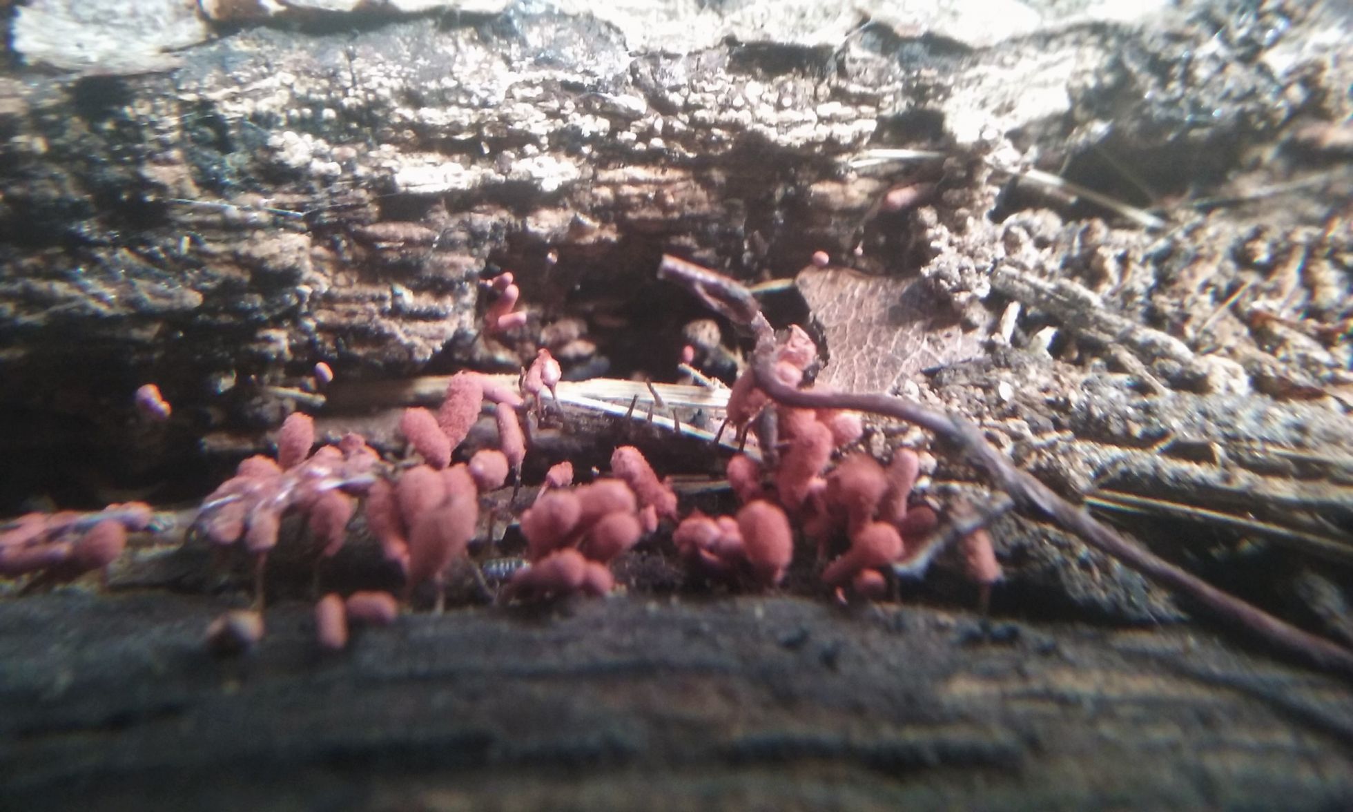 Esta es la primera vez que la veo, en madera de Quercus rubra, Arcyria denudata