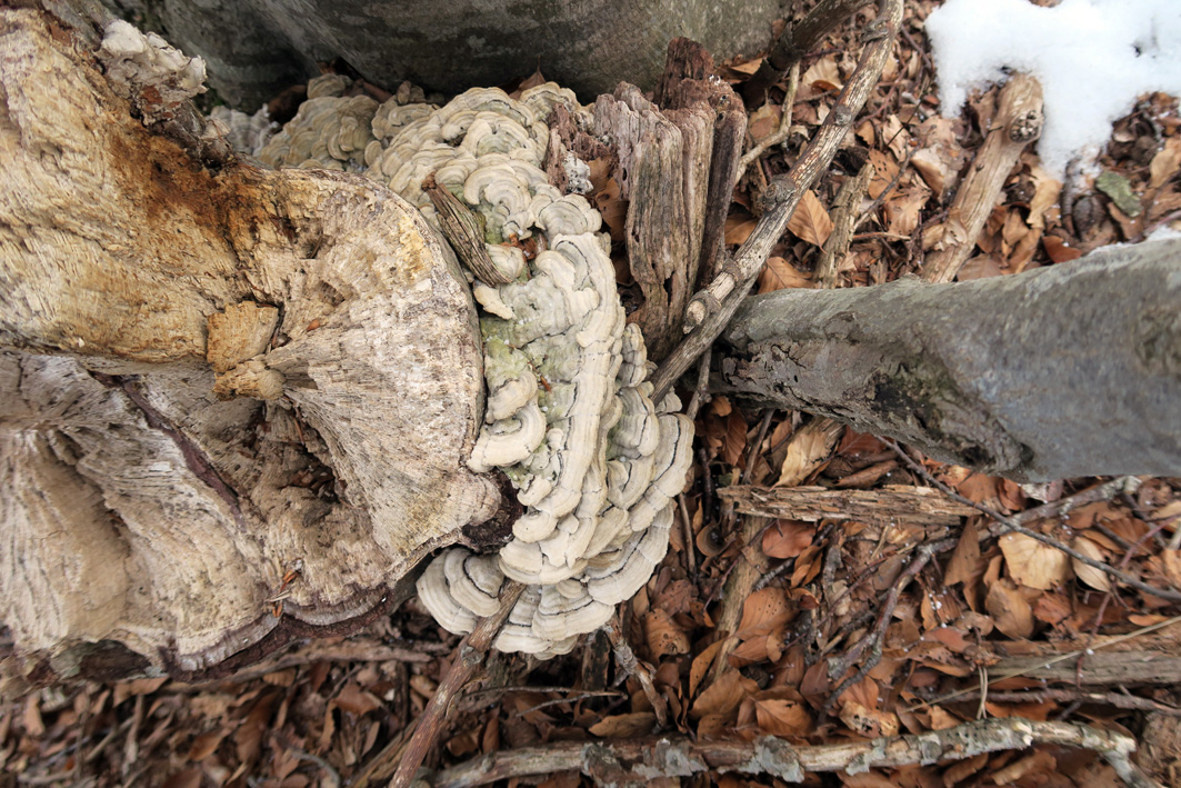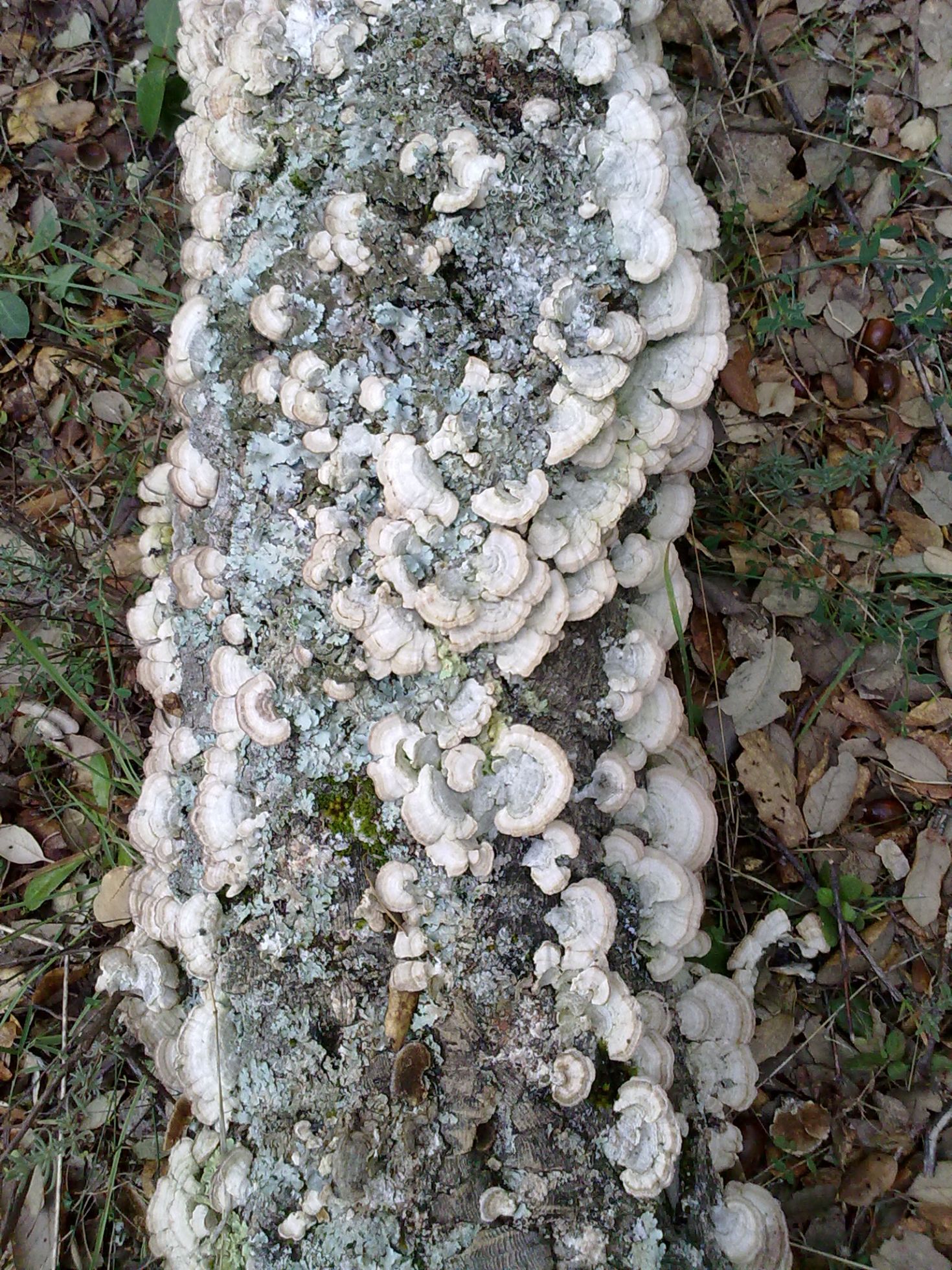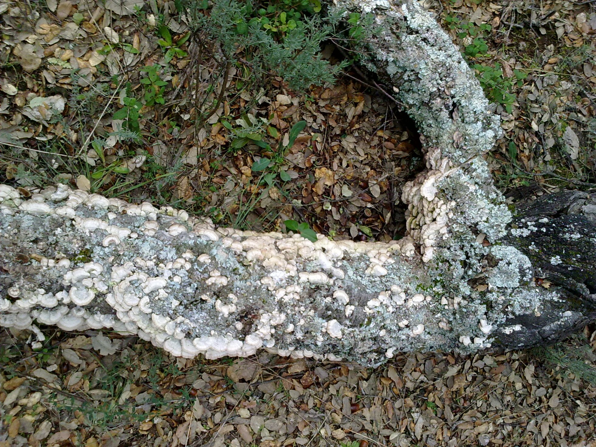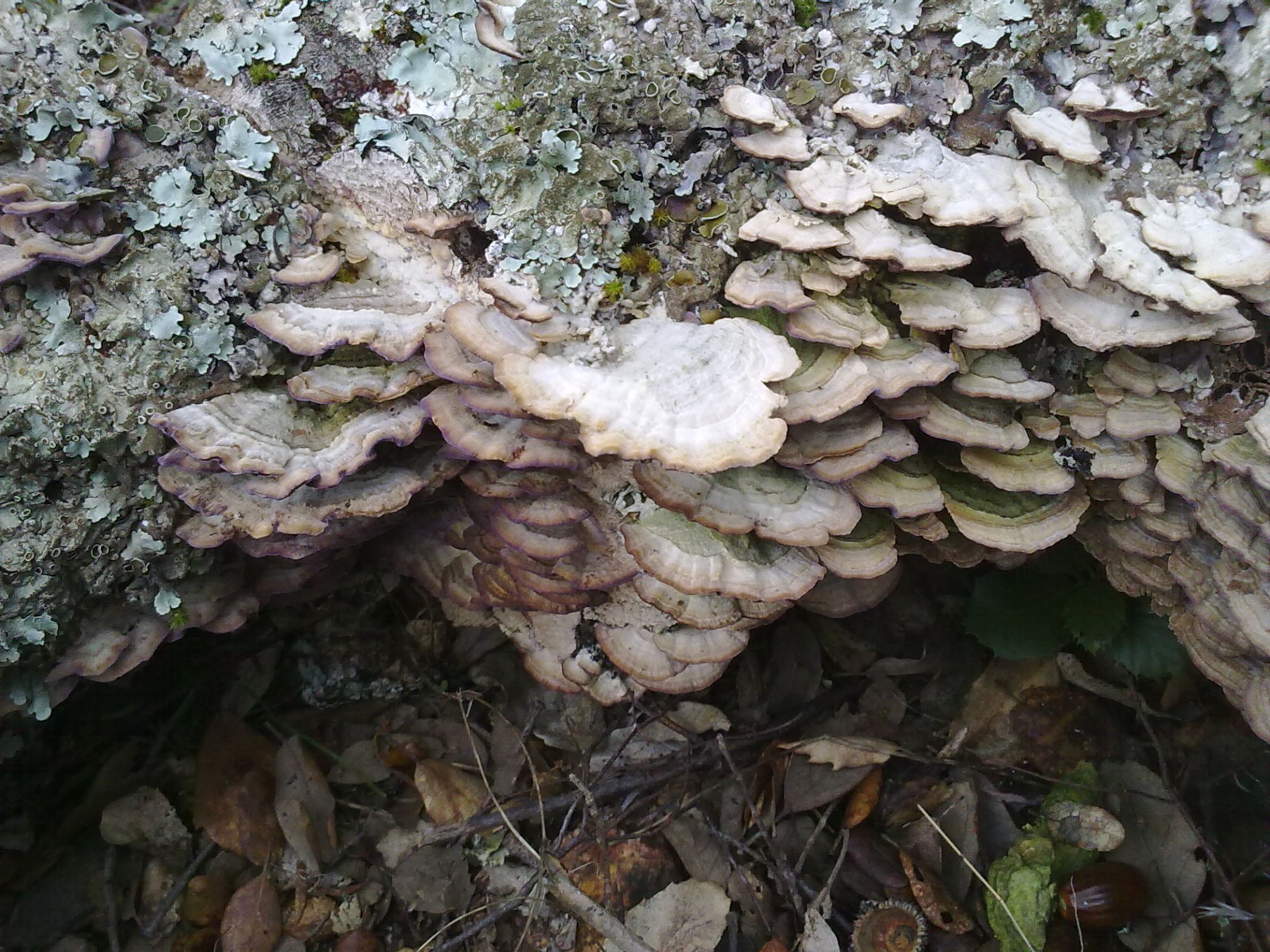 Desde hace algunos años en uno de los entornos que mas suelo frecuentar me encuentro con este mismo tronco caído de alcornoque plagado de Trichaptum biformes.