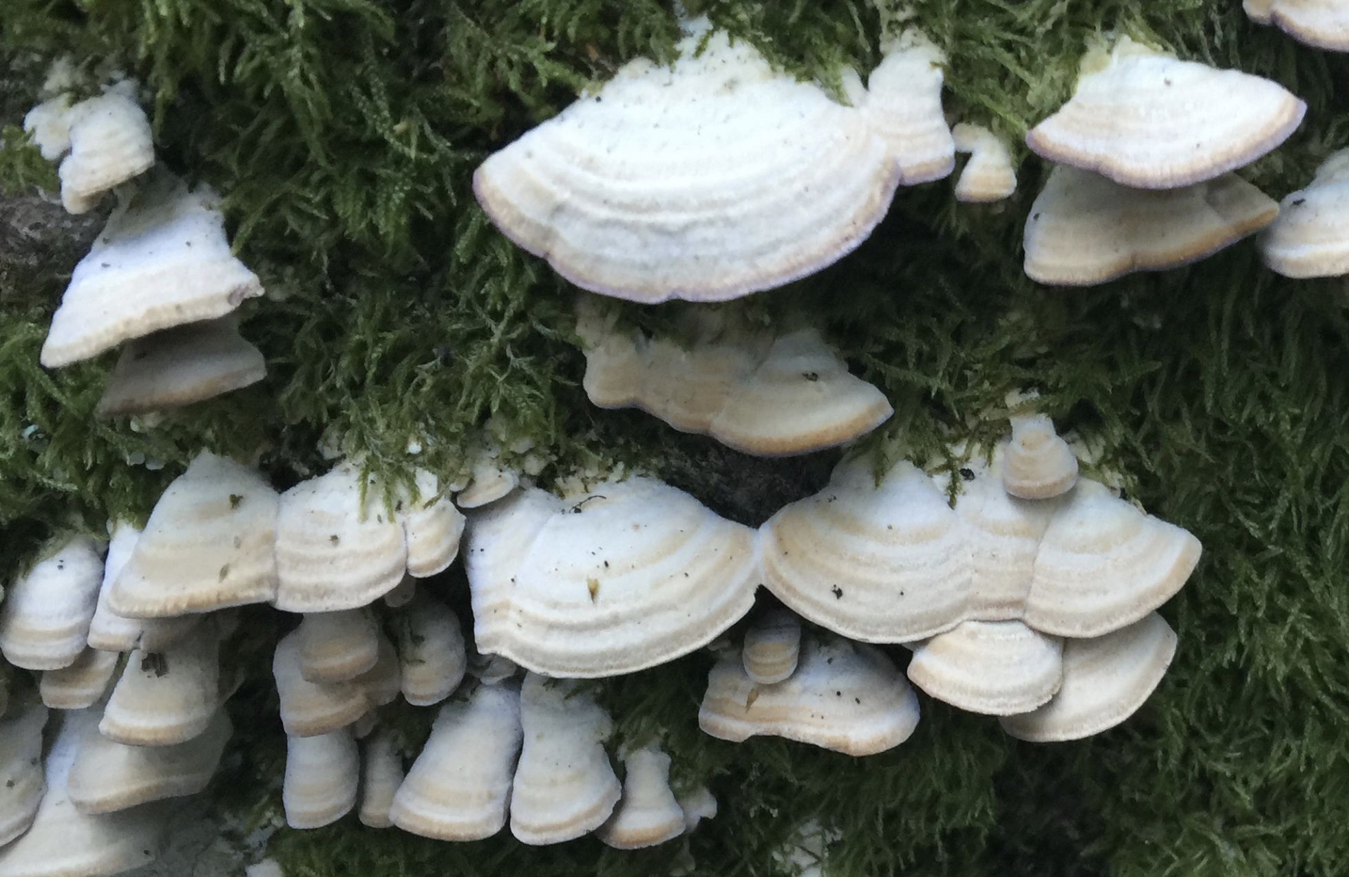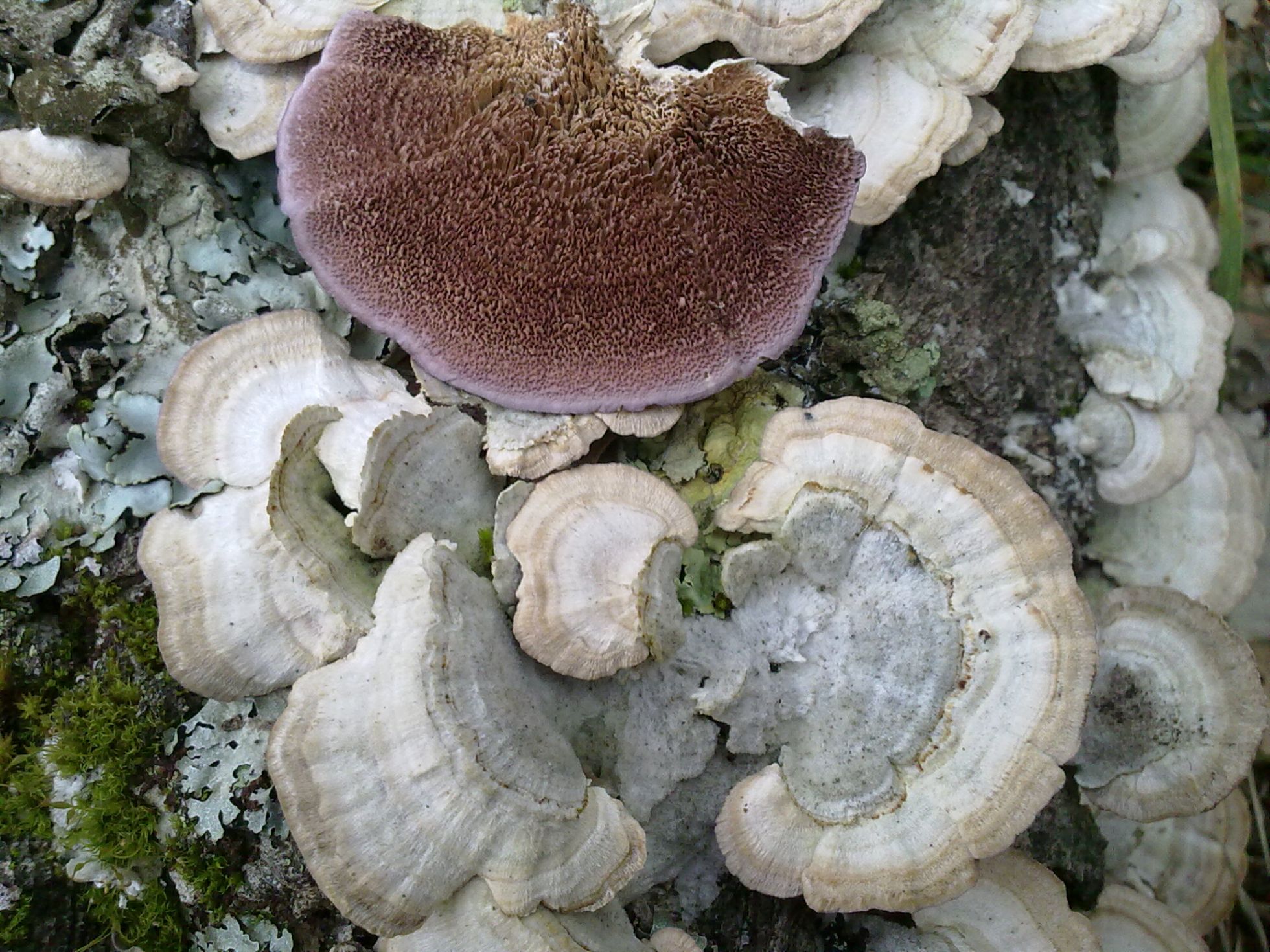 Gracias Juan Antonio, es posible que se trate de Trichaptum biforme tal y como propone Javier, he observado bien tus imágenes y los dos ejemplares de la parte superior de la primera imagen presentan el borde del sombrero de color violáceo (aunque solo estos dos), detalle característico de Trichaptum biforme, del género Trichaptum solo me he encontrado con el T. abietinum y el T. fuscoviolaceum, los dos sobre madera de coníferas.