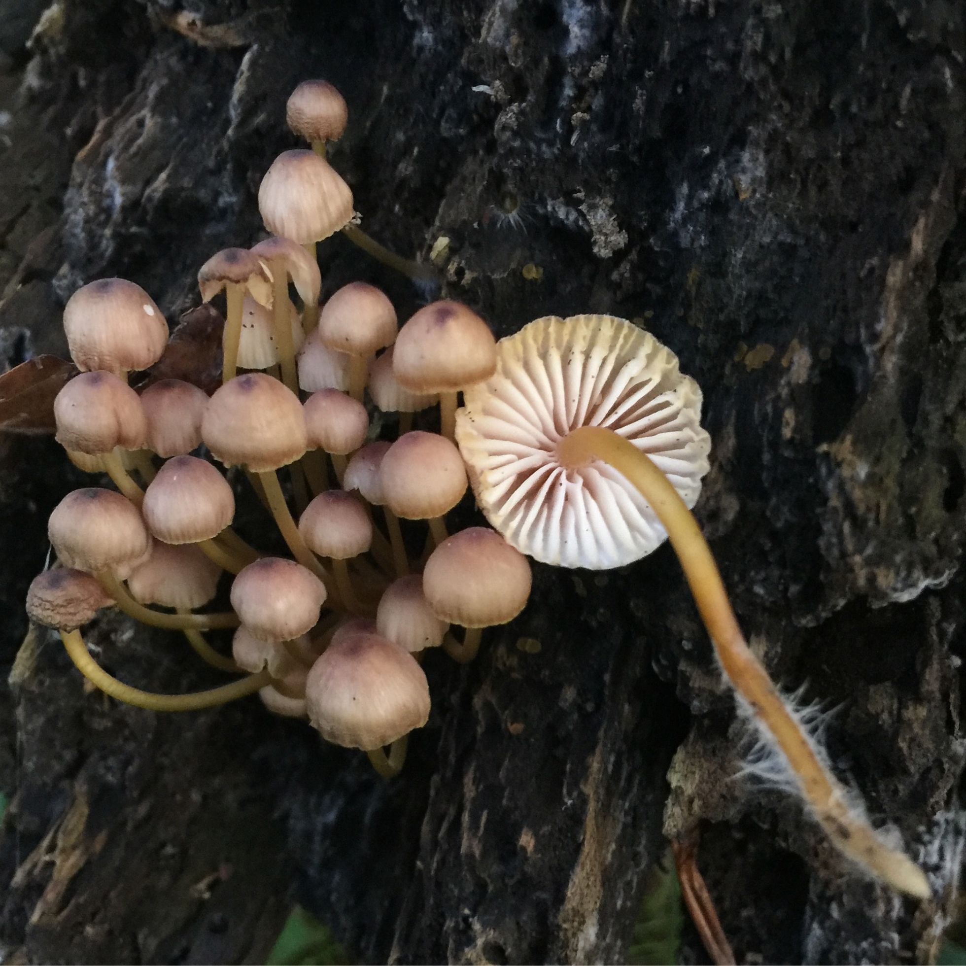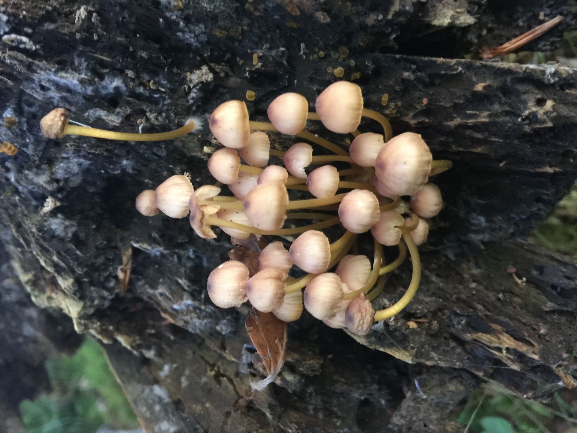 Esta en un tronco de haya muy podrido, tiene pinta de Marasmius? con olor y sabor agradables.