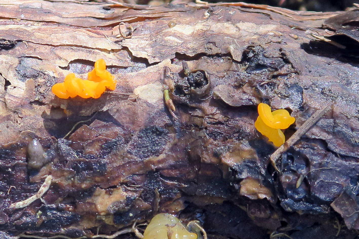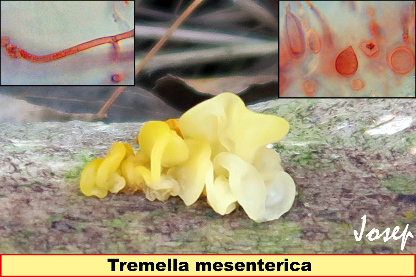 Gracias, Josep. Creo que tienes razón; me parece más Dacryopinax spathularia. Incluso en la primera vez que las subí en mi álbum, puse esa posibilidad, pero luego la descarté. Sí concuerda más con lo de la consistencia y su crecimiento en grietas.