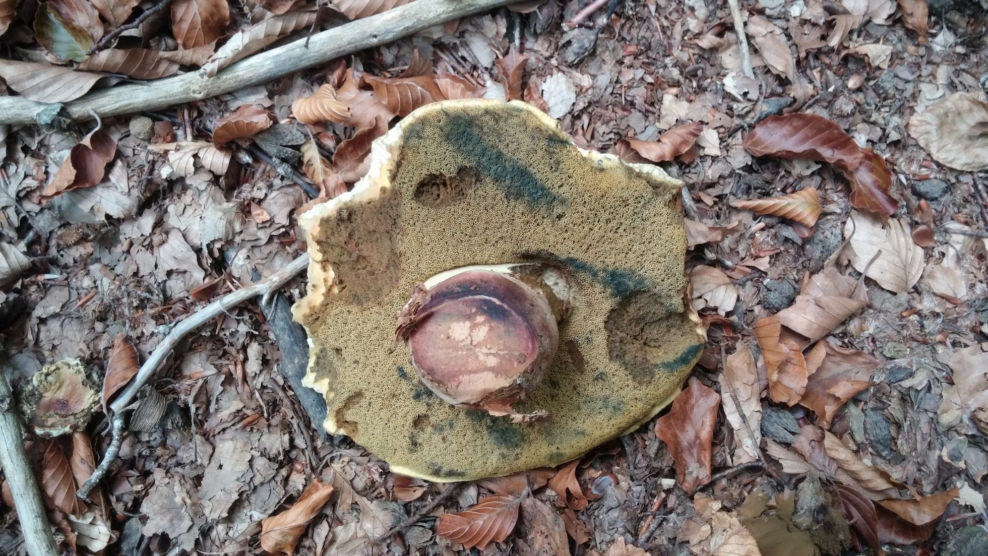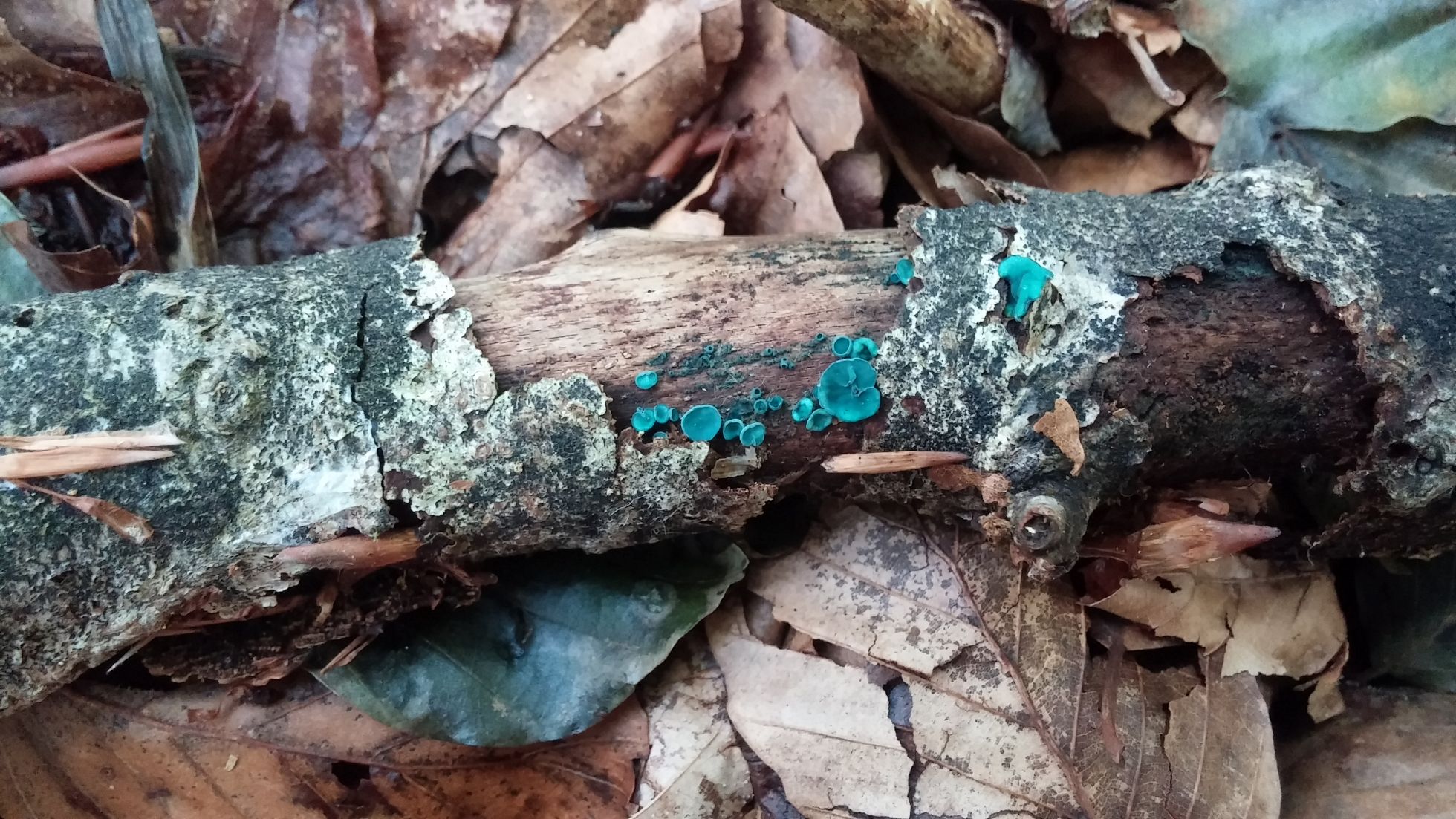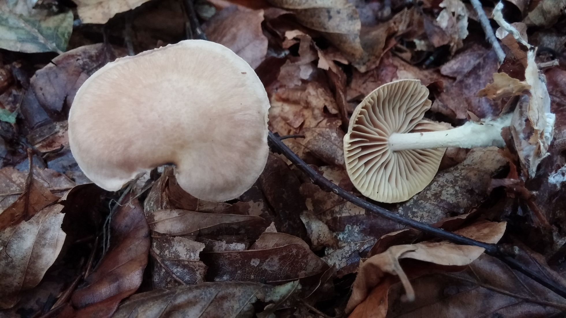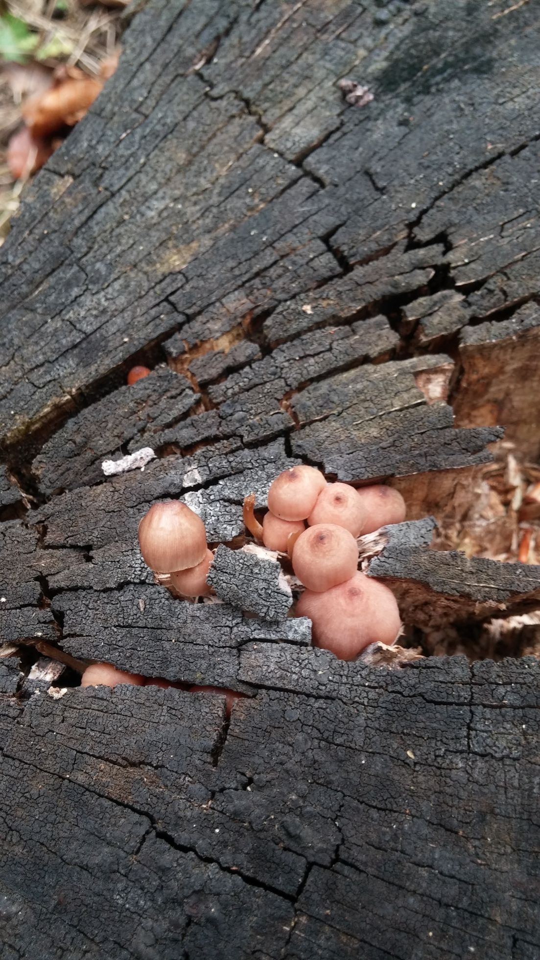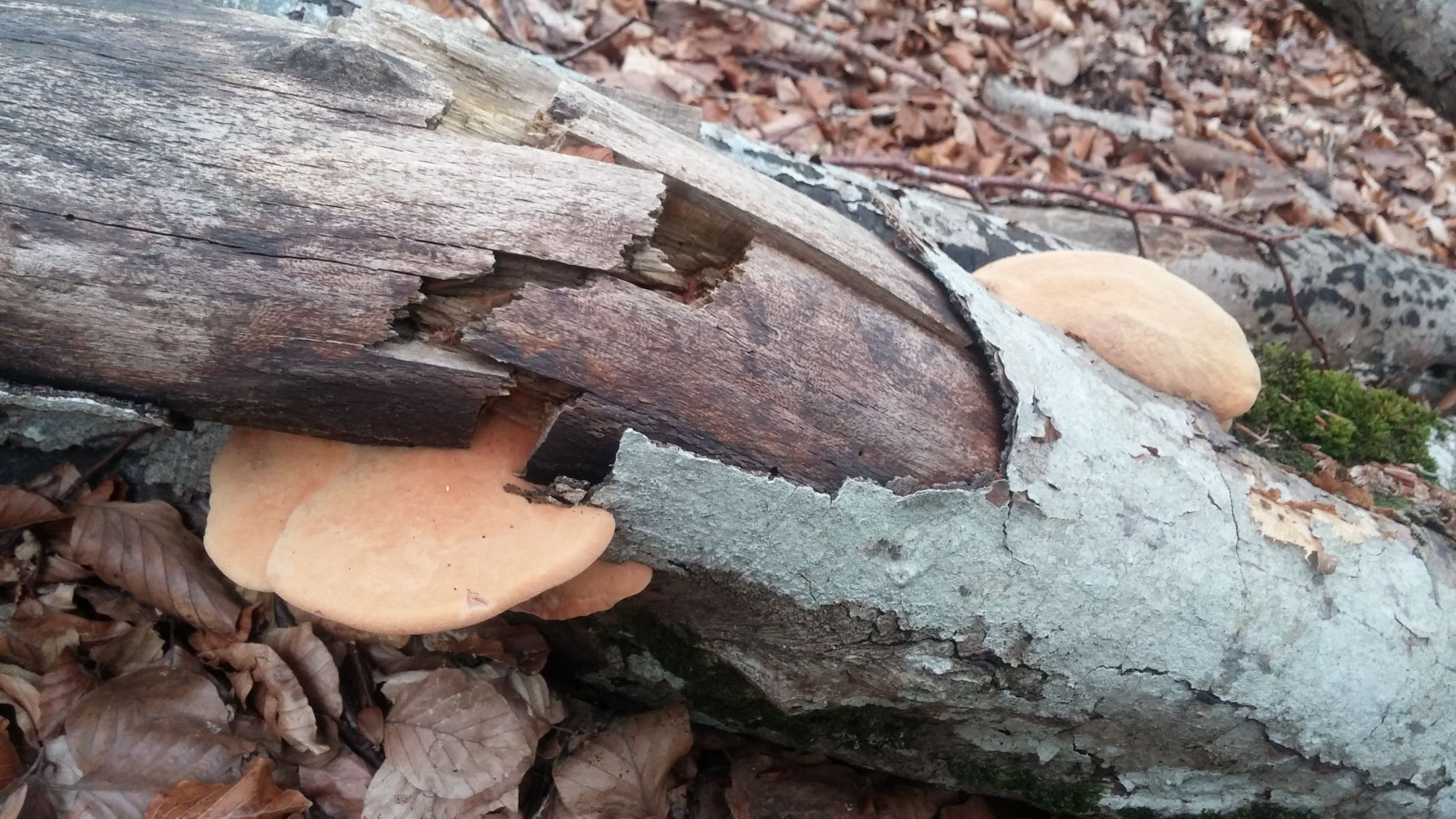 1- Pequeña, de 2-4 cm. Sobre un tronco de haya muy degradado. De joven con aspecto aterciopelado su cutícula, pasando luego a aclararse desde el centro hacia su periferia.