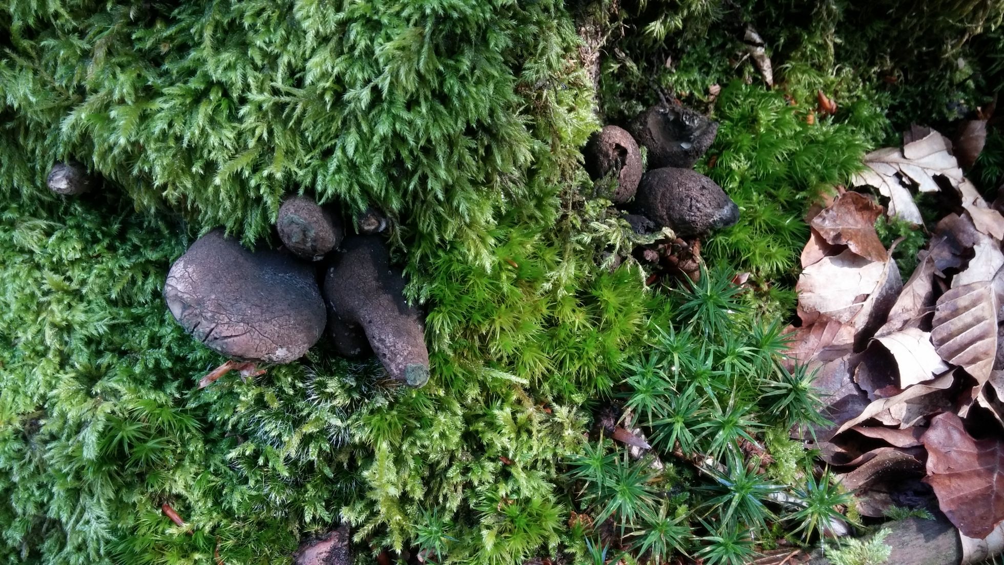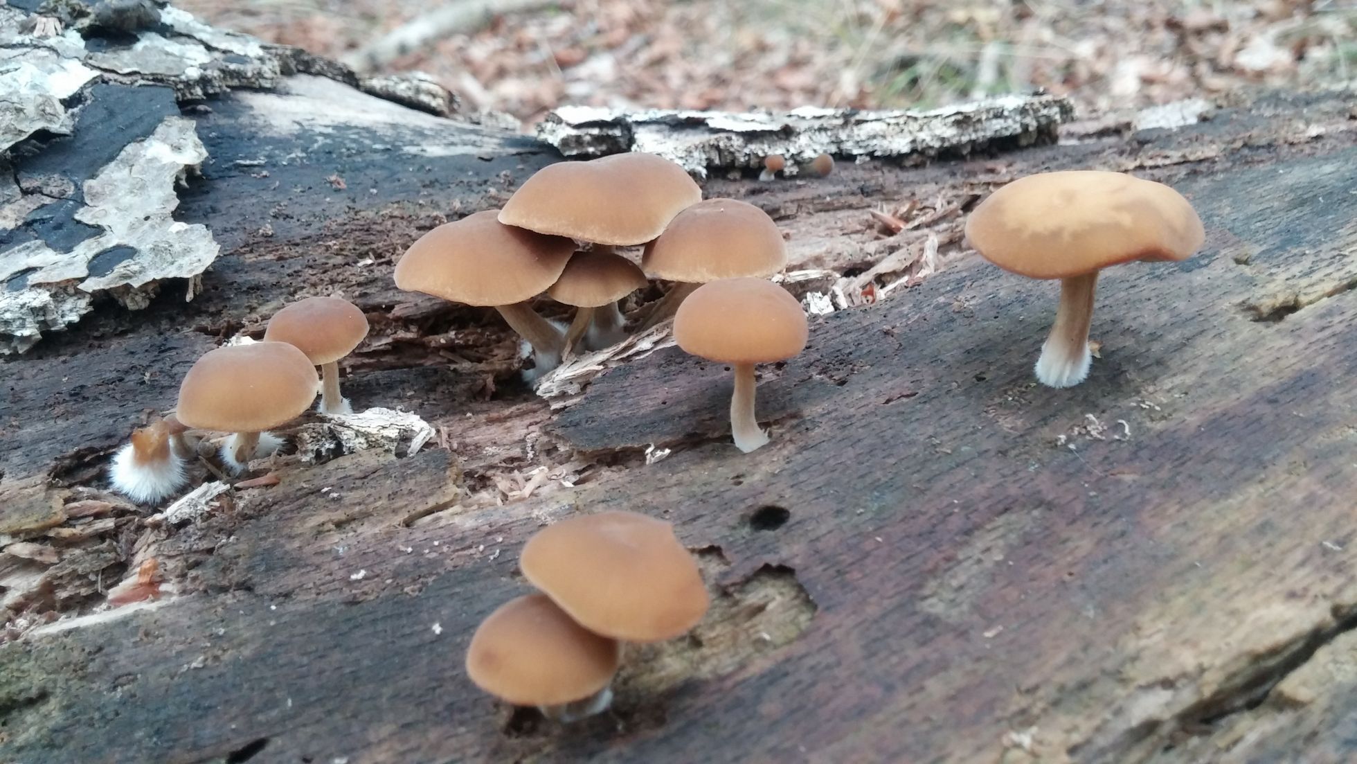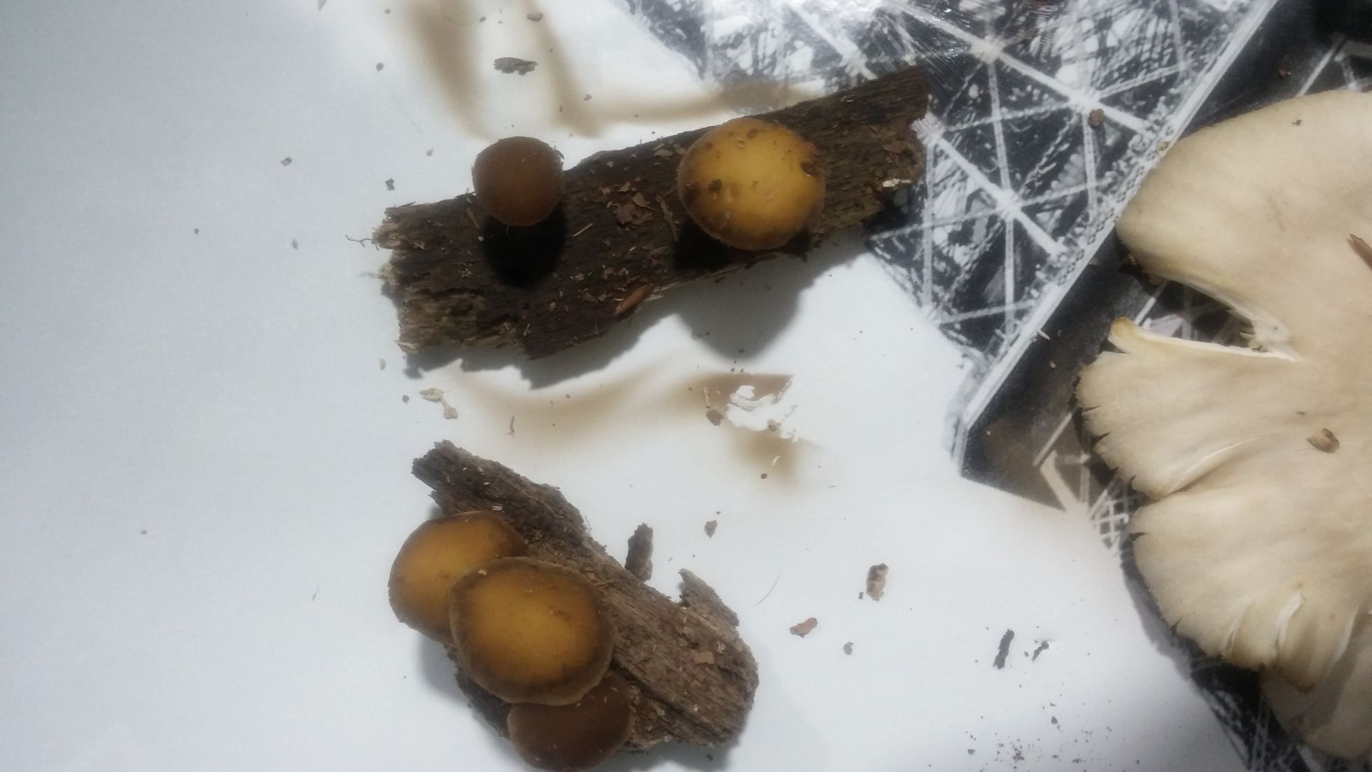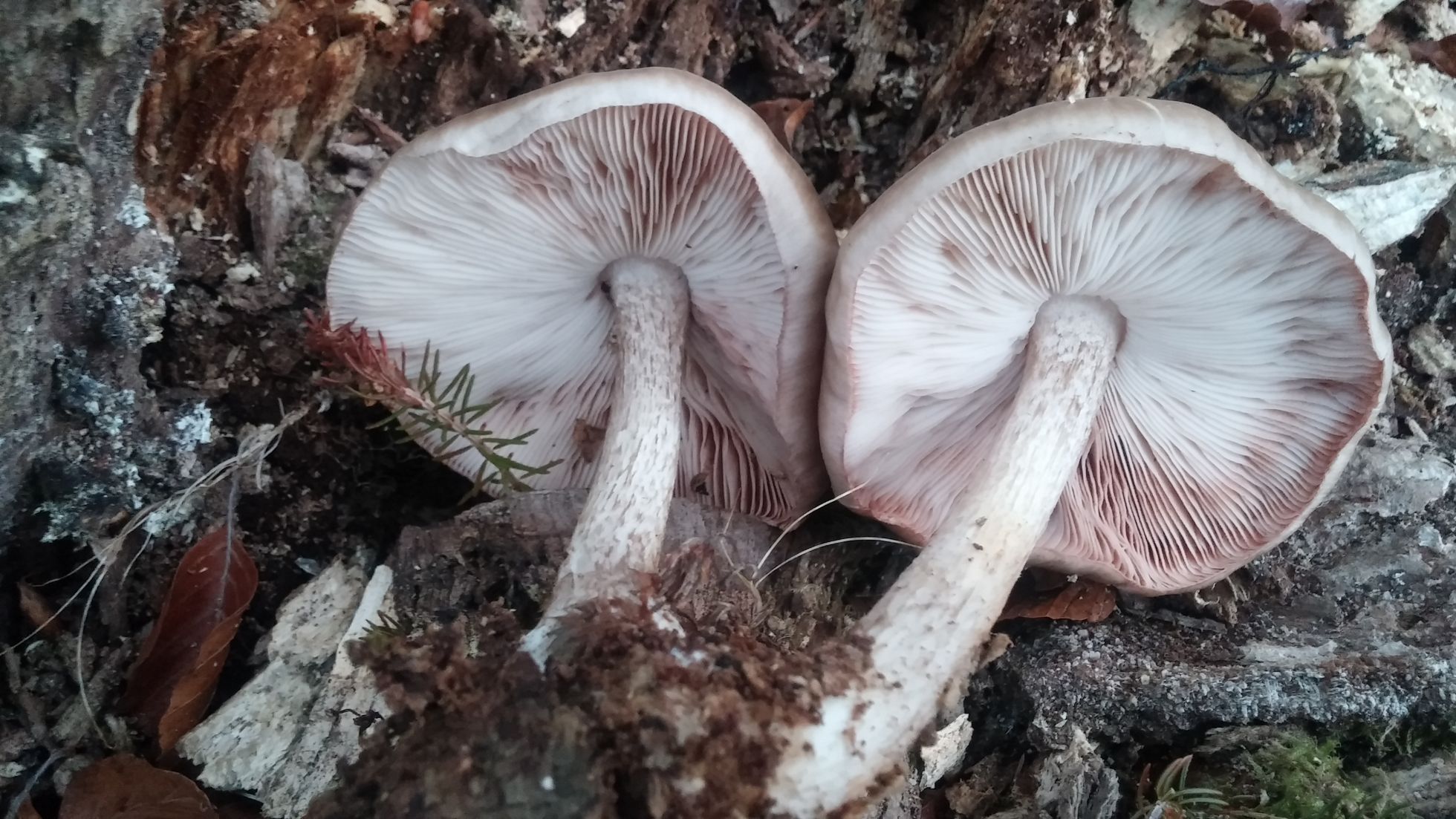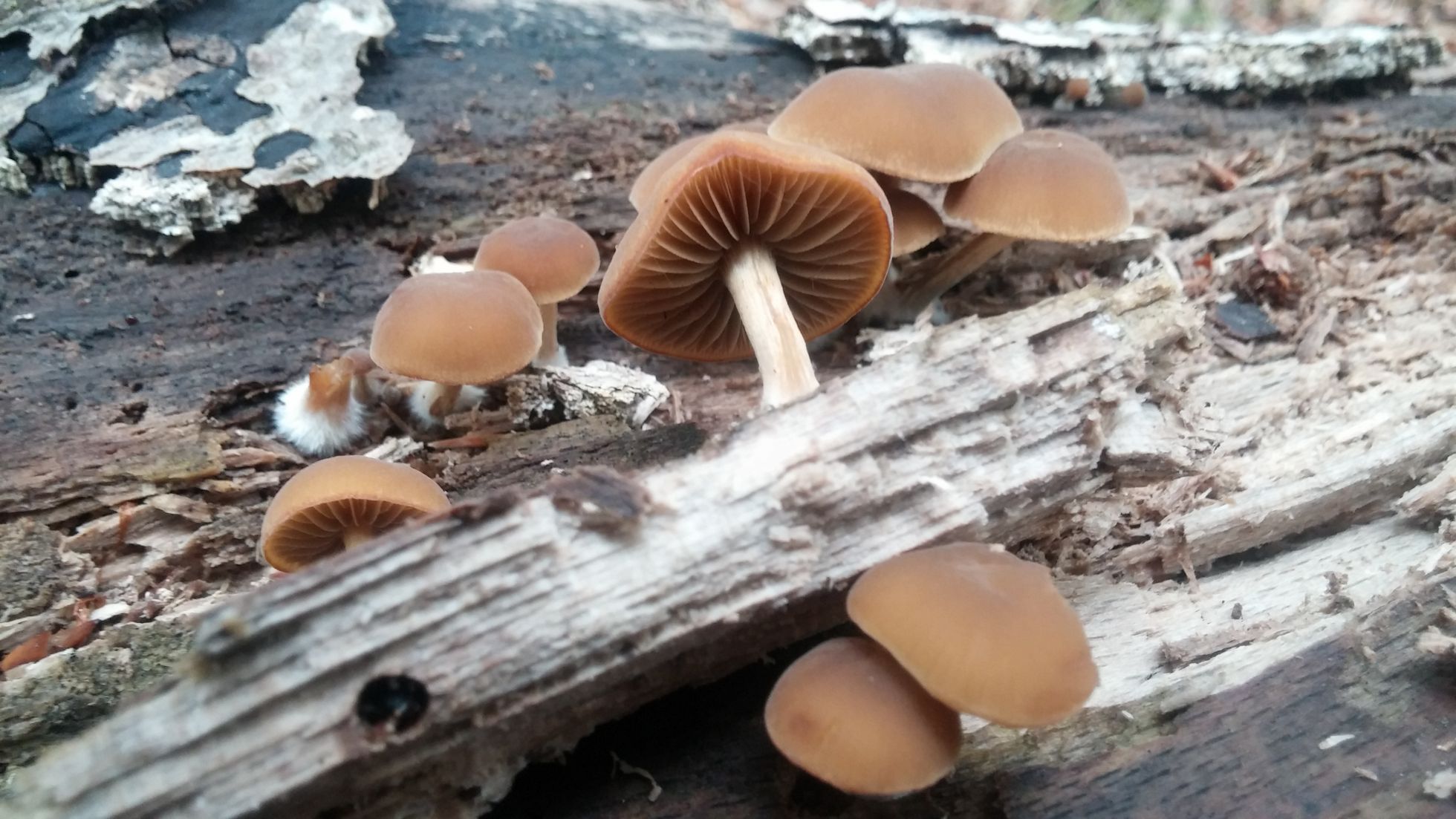1- Pequeña, de 2-4 cm. Sobre un tronco de haya muy degradado. De joven con aspecto aterciopelado su cutícula, pasando luego a aclararse desde el centro hacia su periferia.