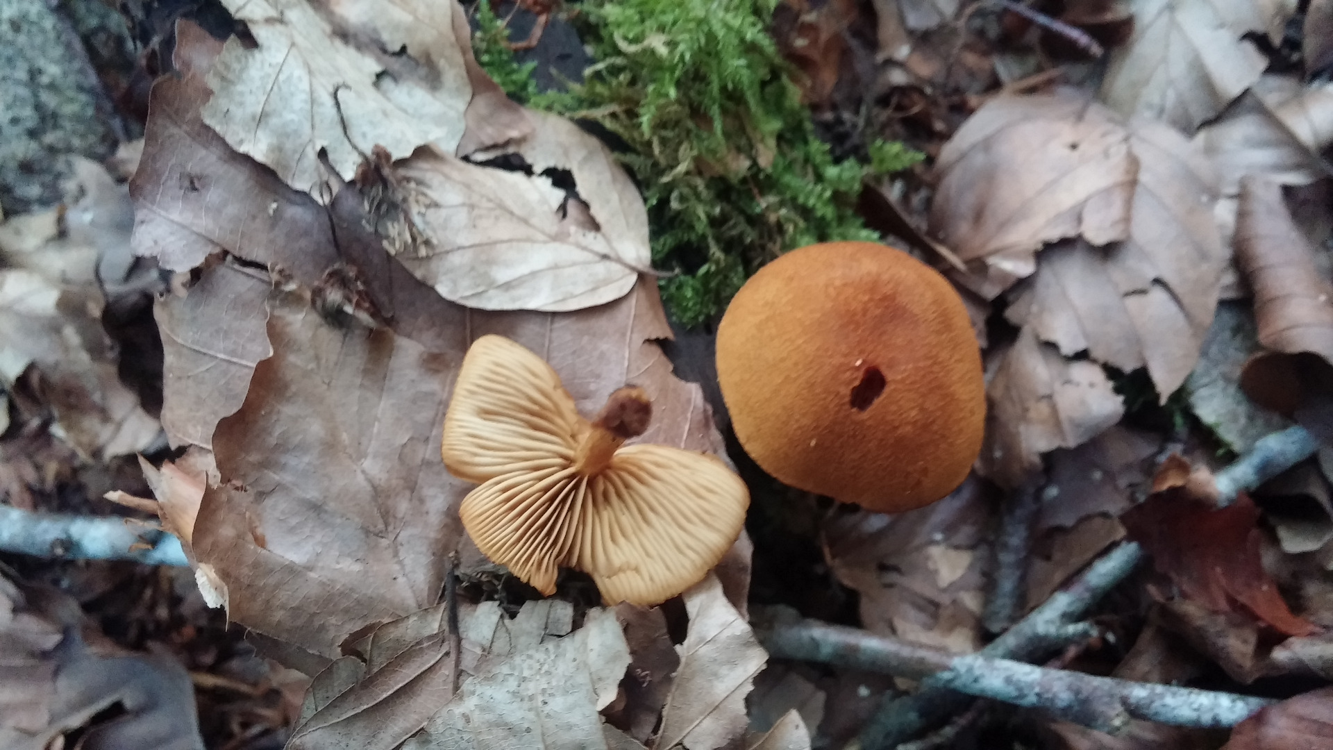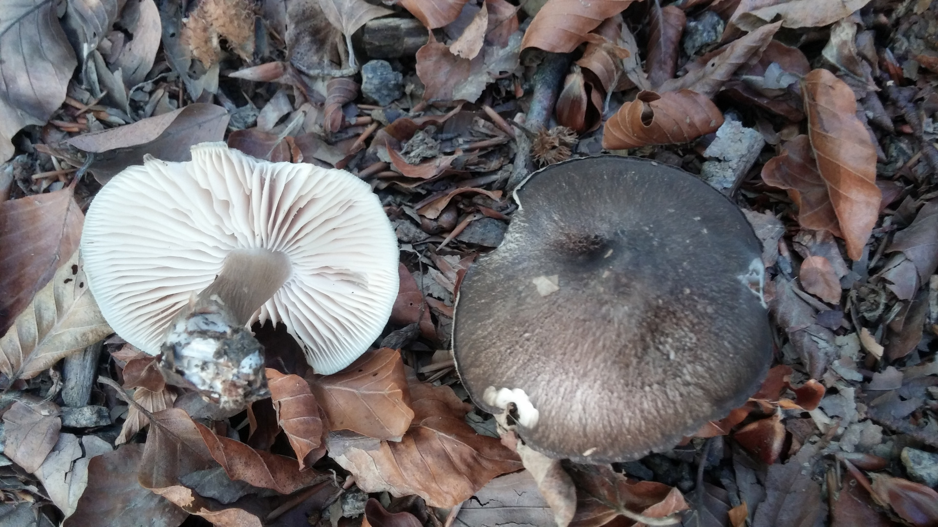 1- La primera aparecía en el suelo, cerca de un sendero dentro del hayedo. Sombrero de unos 7cm. Yo pienso que es un tricholoma, a ver si me decís vosotros.