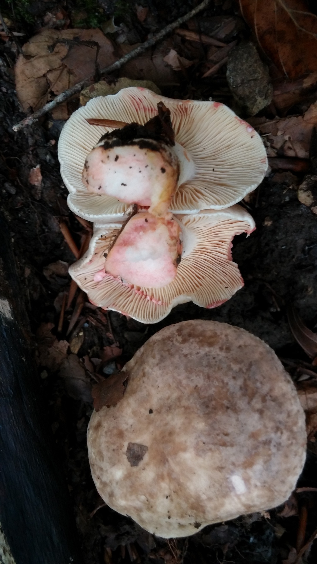 1- Lactarius de unos 6cm, en hayedo. Látex blanco al corte que vira a rosa chicle en segundos.
