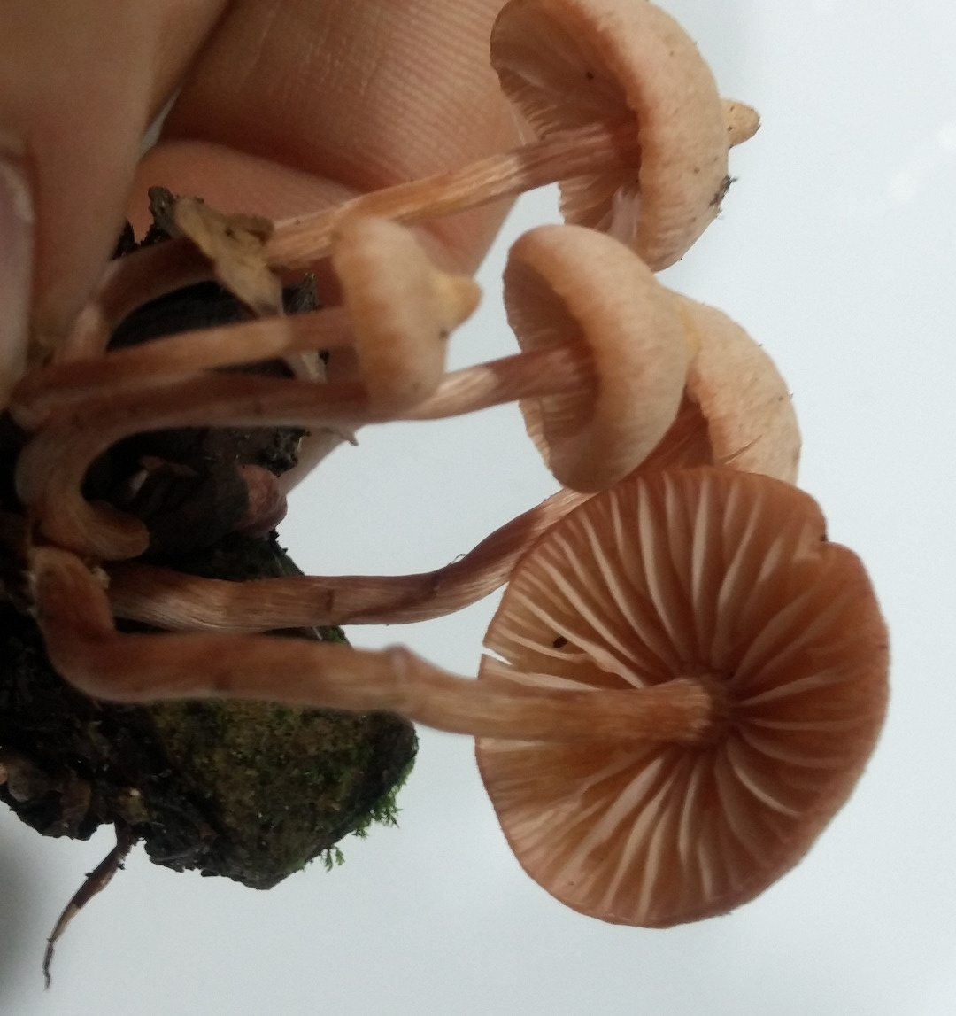 6- Éste ya era mayor más de 10cm, no enrojece al corte ni le noto un olor especial. Salían en un grupo de unos 7 en el musgo que quedaba sobre un tocón muy descompuesto.