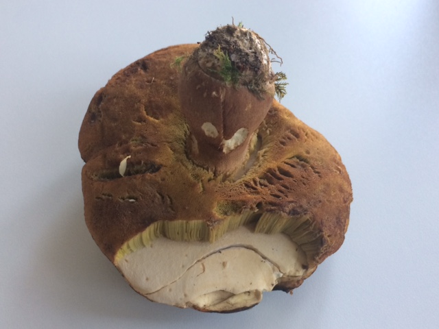 Tubos: amarillos, marrones por el avanzado estado del ejemplar; no azulean al tacto