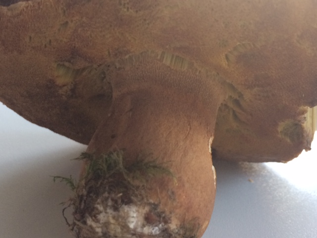 Pie: corto, robusto, marrón, reticulado breve en la zona de inserción (se puede apreciar en la tercera foto).